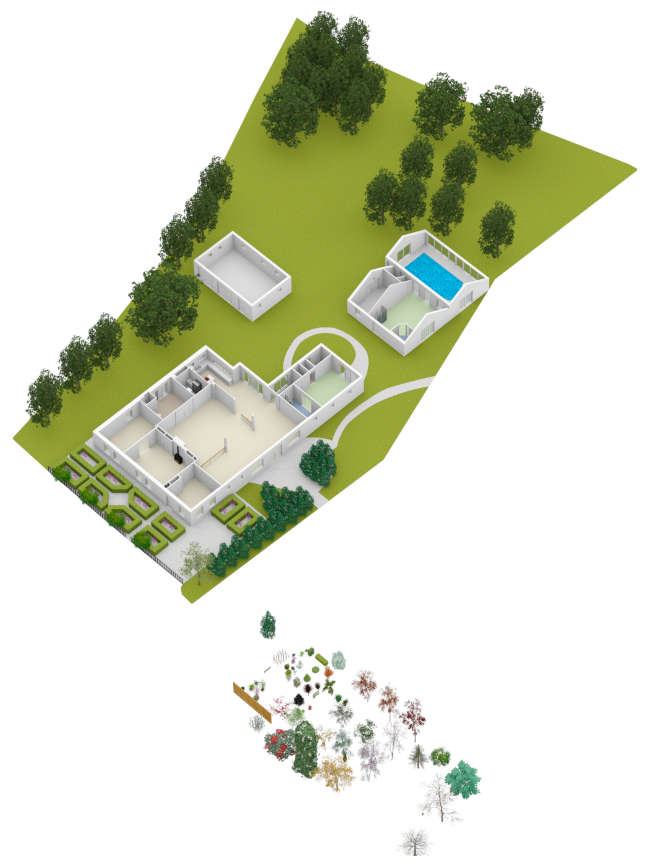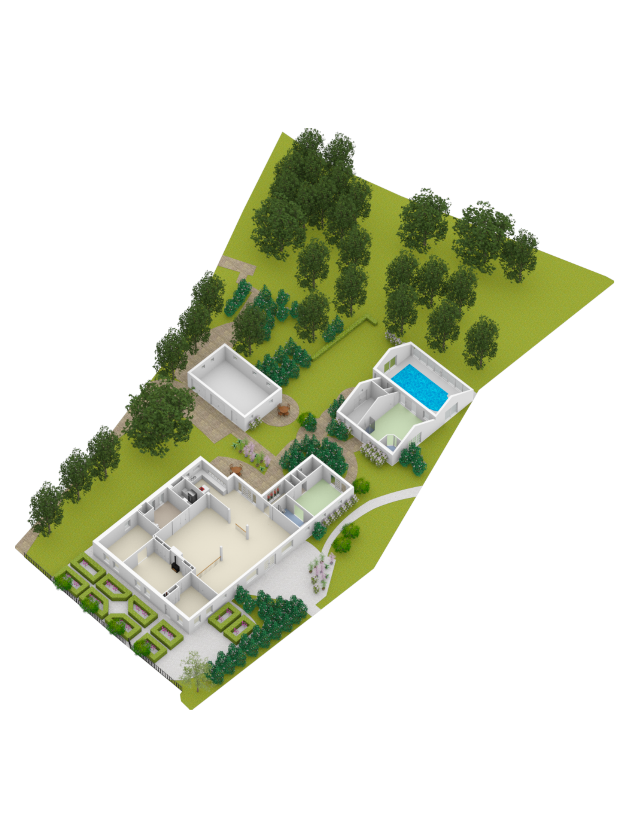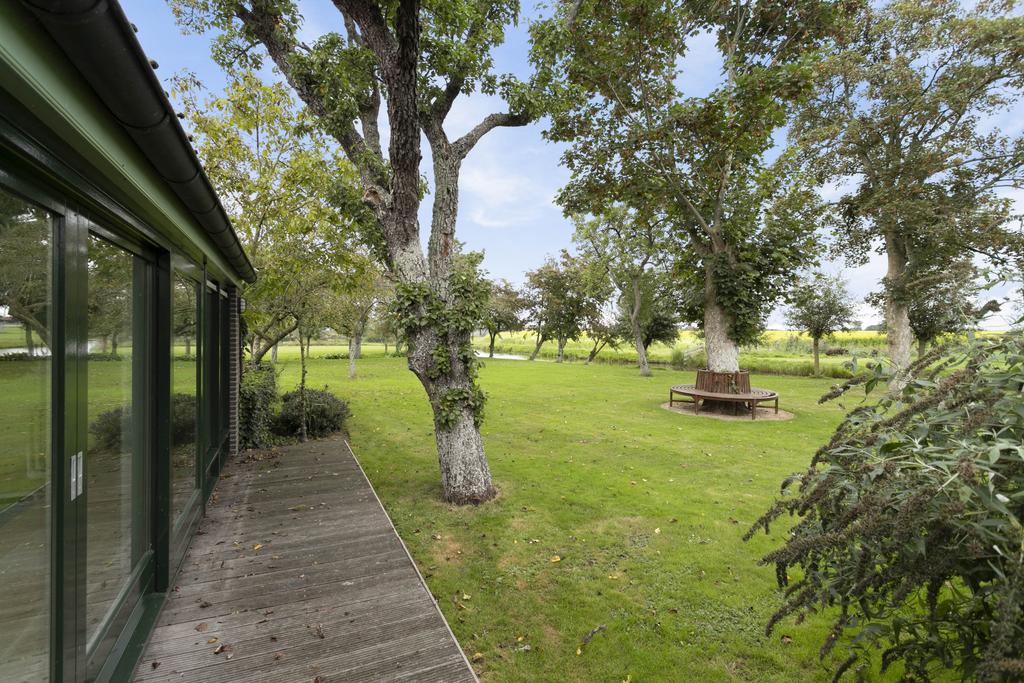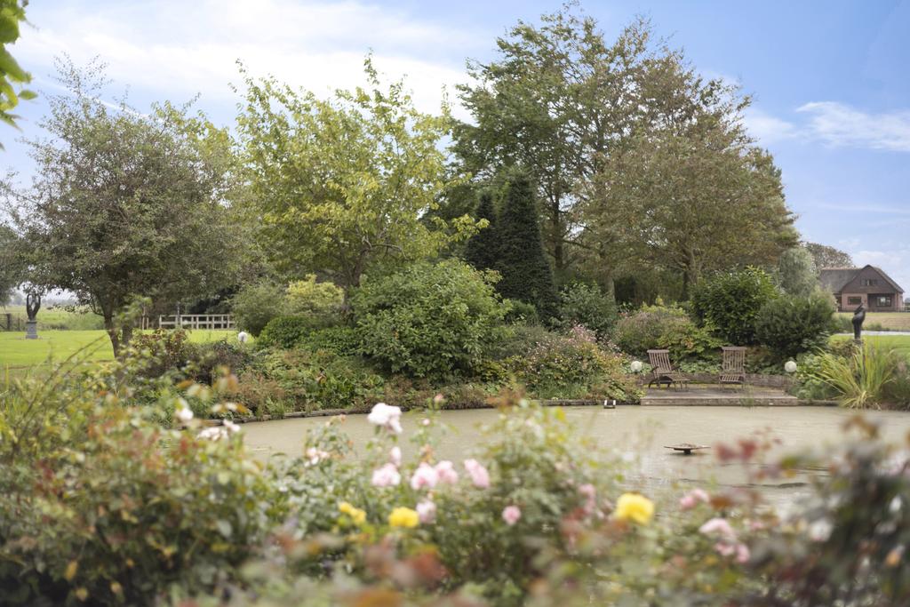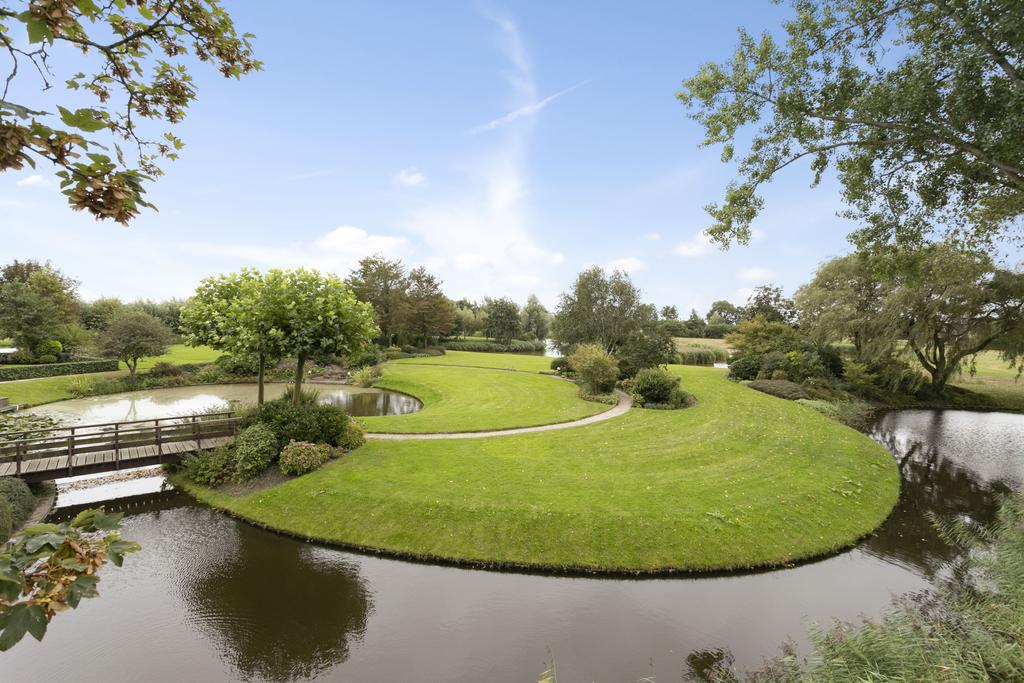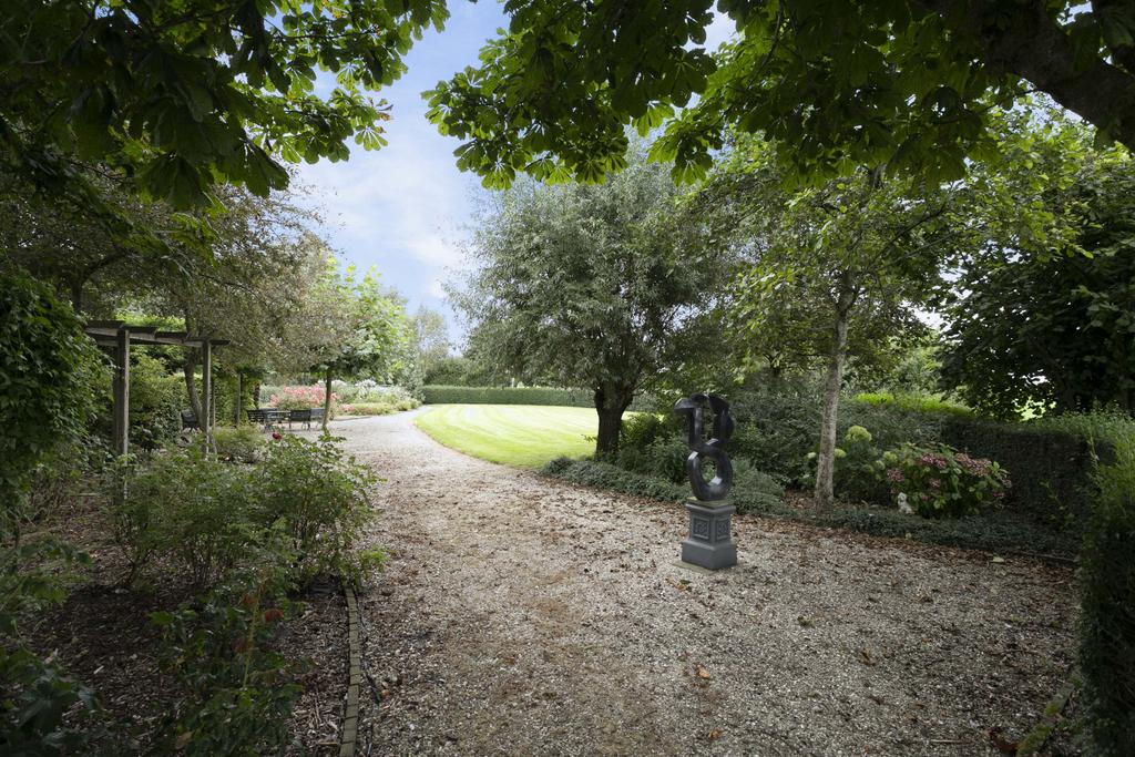The ornamental garden features a harmonious mix of planting, ponds, and lawns, creating a park-like atmosphere complete with winding paths and quaint bridges. A peaceful rosarium provides the perfect place to relax while listening to birdsong.