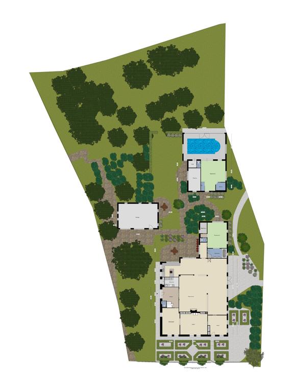 - Prachtig aangelegde tuin met waterpartijen en een rosarium