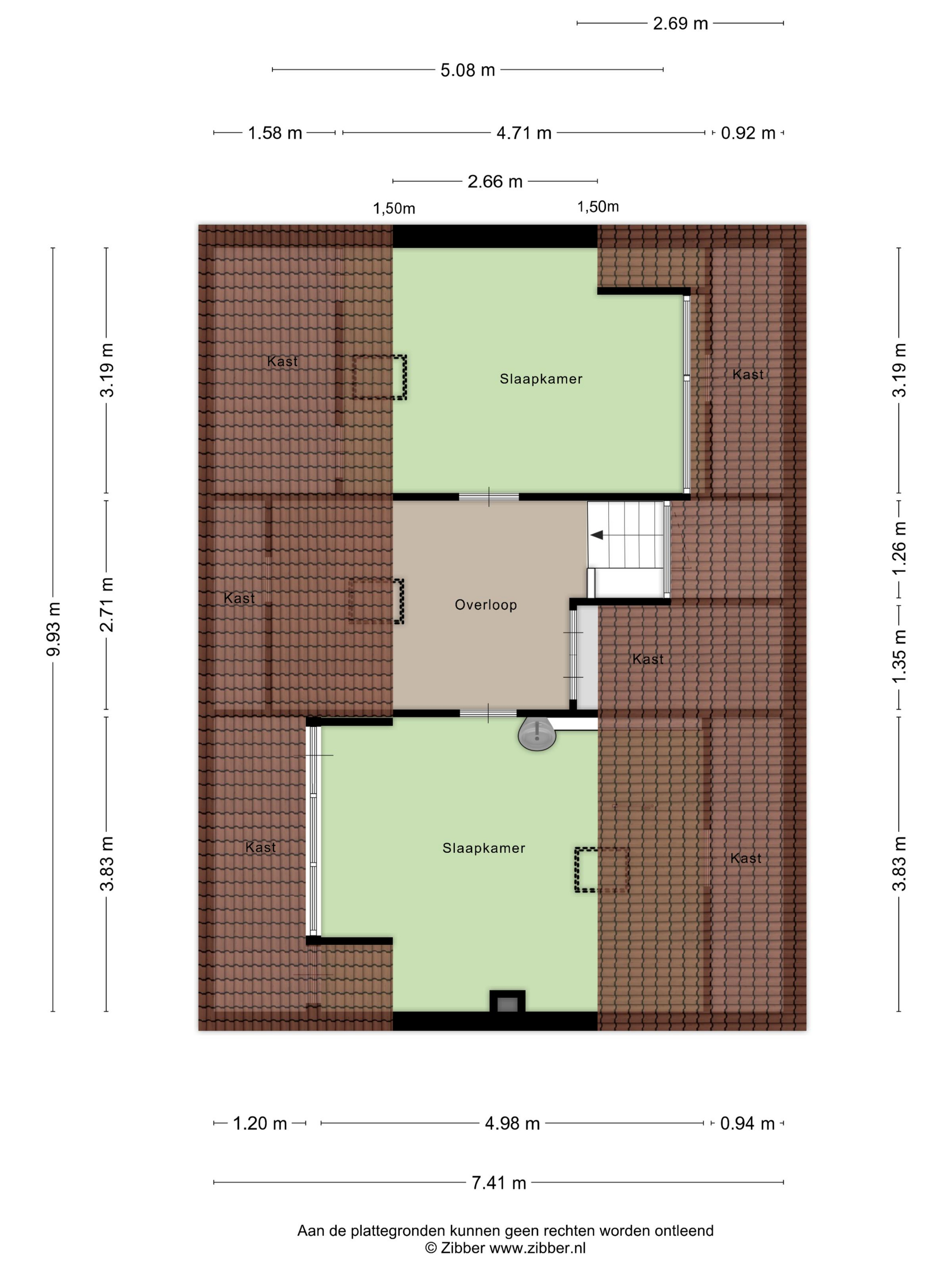 Ruime overloop met Veluxraam en bergkast (voorzieningen aangelegd voor creëren extra badkamer), plus twee goed bemeten slaapkamers met dakkapel en veel bergruimte achter de knieschotten. Ook deze kamers zijn voorzien van airconditioning.