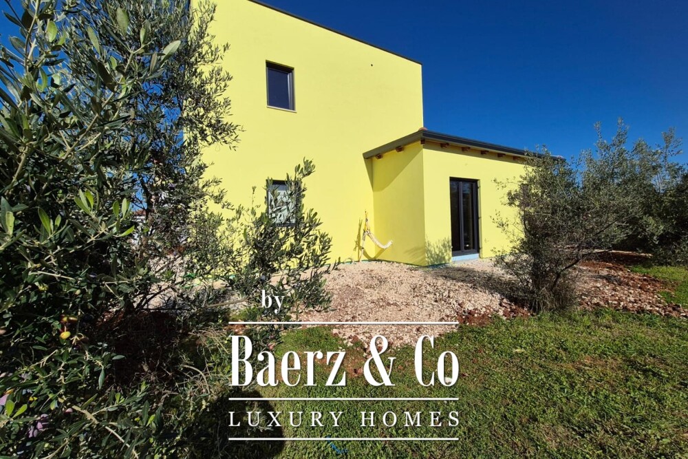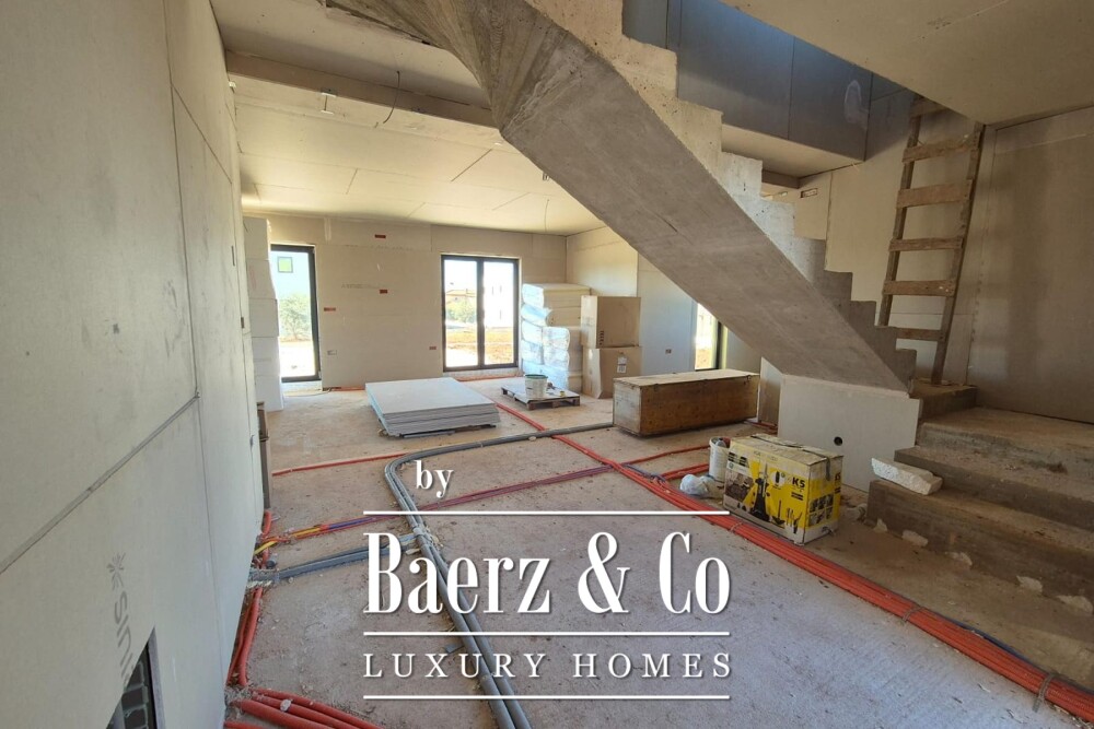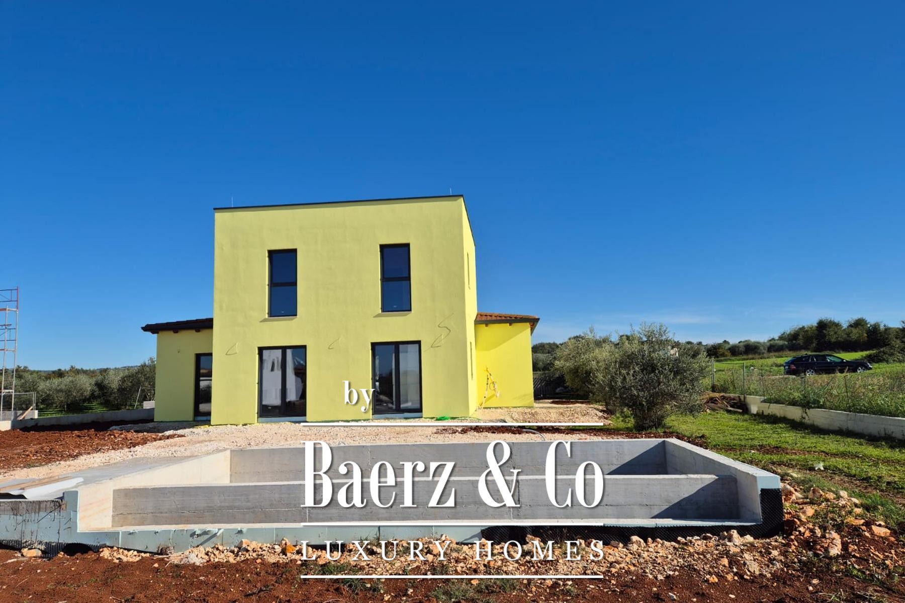 Dit herenhuis in Poreč combineert hedendaagse architectonische helderheid met een royale buitenruimte op een locatie net buiten de befaamde stad in Istrië. De woning biedt 147 m² verdeeld over twee doordacht ontworpen verdiepingen en komt uit op een indrukwekkende tuin van 1.036 m². Op de begane grond loopt de entree naadloos over in een open keuken, eetruimte en woonkamer, elk verbonden door natuurlijk licht en met toegang tot het terras met zonneterras en een infinity pool. Op deze verdieping bevindt zich ook een slaapkamer met eigen badkamer en directe toegang tot het terras, terwijl discrete functionele ruimtes—een gastentoilet, wasruimte en technische ruimte—het dagelijks comfort ondersteunen.
