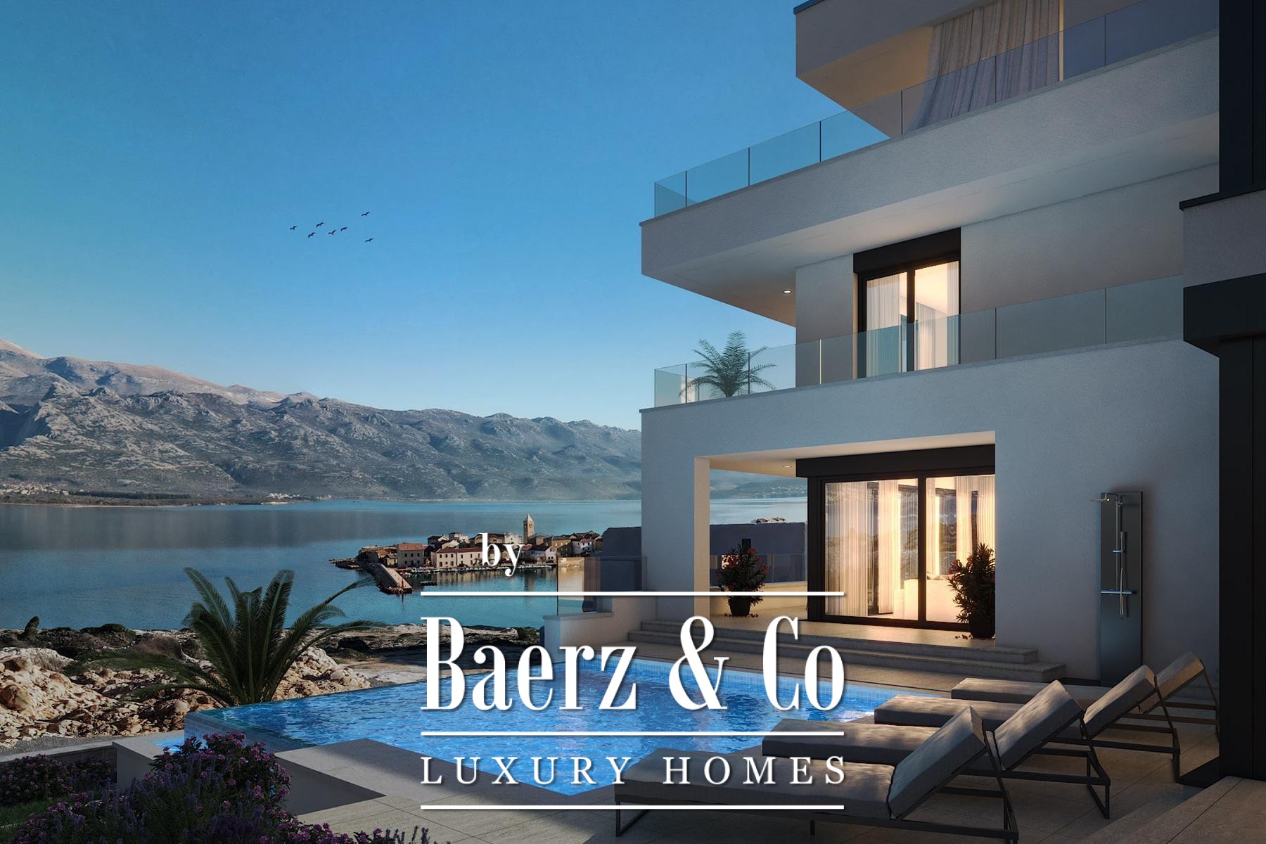 Villa Posedarje met indrukwekkend zee- en bergzicht biedt een zeldzame combinatie van architectonische helderheid en kustsereniteit in het gewilde Vinjerac bij Zadar. Deze moderne villa beslaat circa 440 m² en staat op een met zorg aangelegd perceel van 480 m², slechts één rij verwijderd van de zee. Vloerhoge ramen en elegante overgangen creëren een voortdurende verbinding met het panorama van de Adriatische Zee, het Velebit-gebergte en het Nationaal Park Paklenica.
