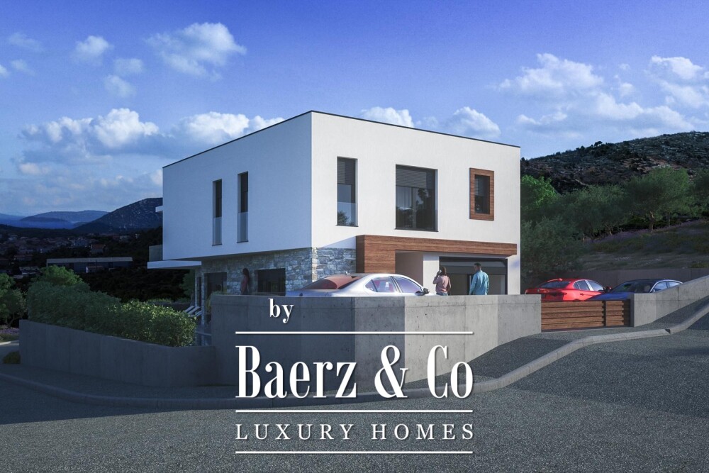 Villa Primošten introduceert een ingetogen standaard voor modern wonen aan de Kroatische kust. Deze villa in Primošten beslaat 250 m² over twee lichtovergoten verdiepingen en biedt direct een gevoel van rust, privacy en architectonische helderheid. Vanuit de overdekte entree ontvouwt de begane grond zich tot een wellnessruimte, keuken, eet- en woonkamer en een technische ruimte. De garage is uitgerust met een laadpunt voor elektrische auto's, wat het doordachte, toekomstgerichte ontwerp onderstreept. Ruime bergruimte, een strakke trap en een gastentoilet versterken de ruimtelijke beleving verder.