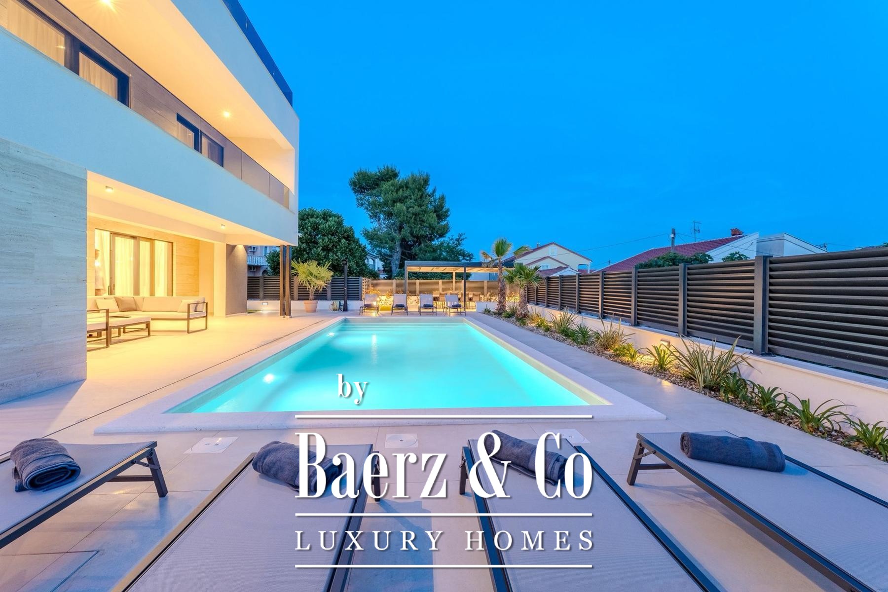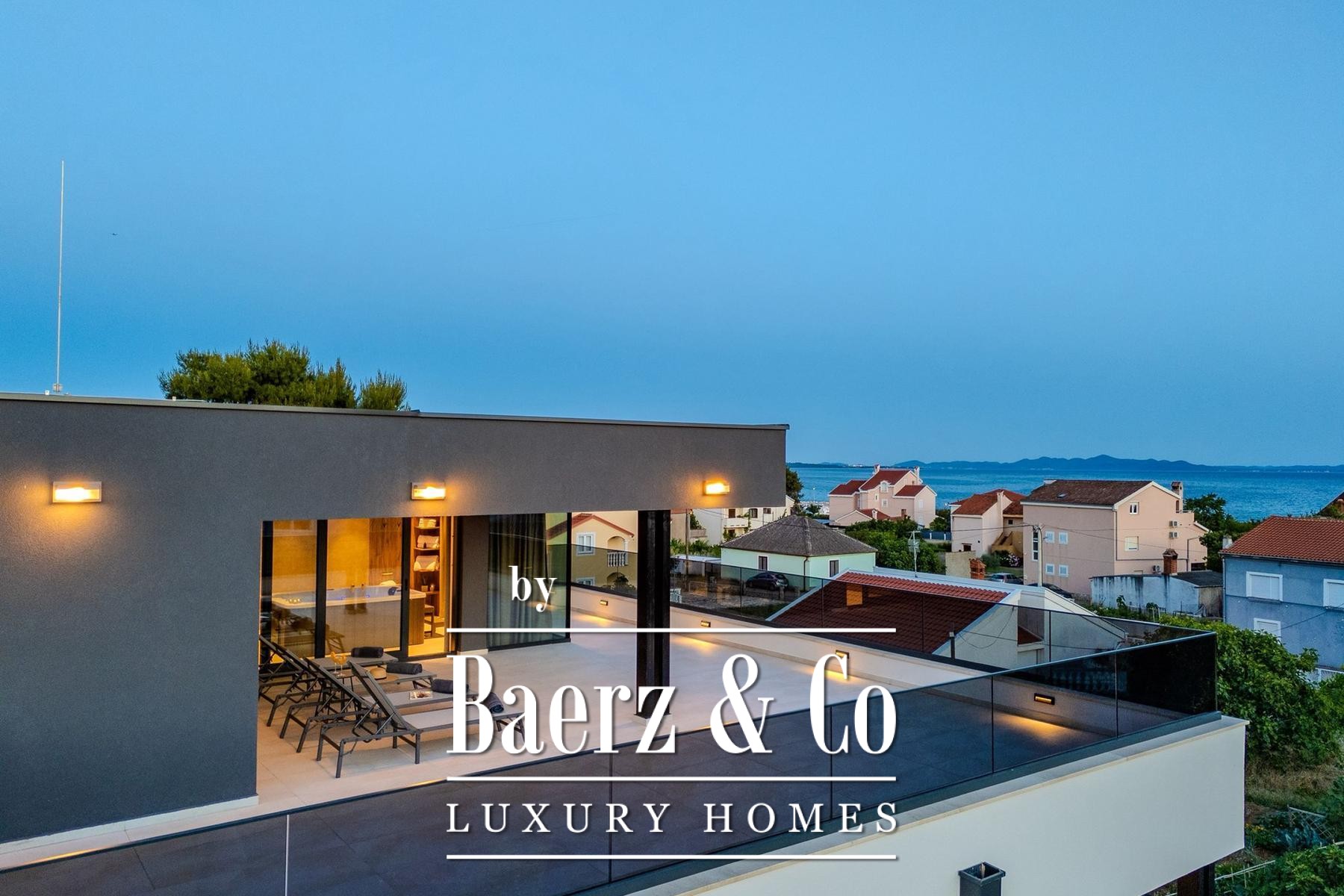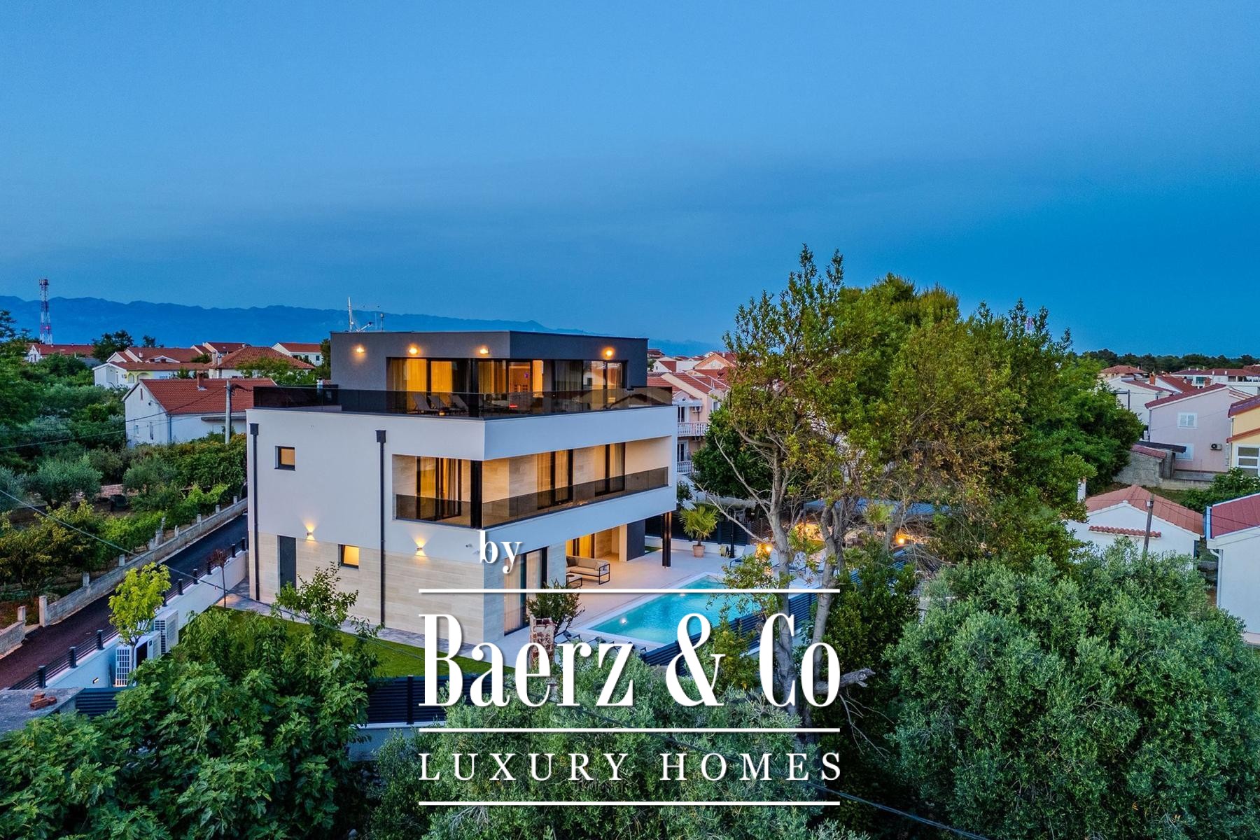 Overdekte en open terrassen vergroten de leefruimte, waar zon en schaduw harmonieus samenkomen. De fraai aangelegde tuin en zonneweide geven privacy, terwijl beveiligde parkeergelegenheid met cameratoezicht extra zekerheid biedt. Op slechts enkele passen van uitstekend onderhouden stranden combineert deze villa te koop in Privlaka architectonische elegantie met mediterrane ontspanning, geschikt als discrete gezinswoning of luxe vakantiewoning. Elk architectonisch detail staat garant voor functionaliteit en duurzame kwaliteit en creëert een sfeer van rust, comfort en licht.