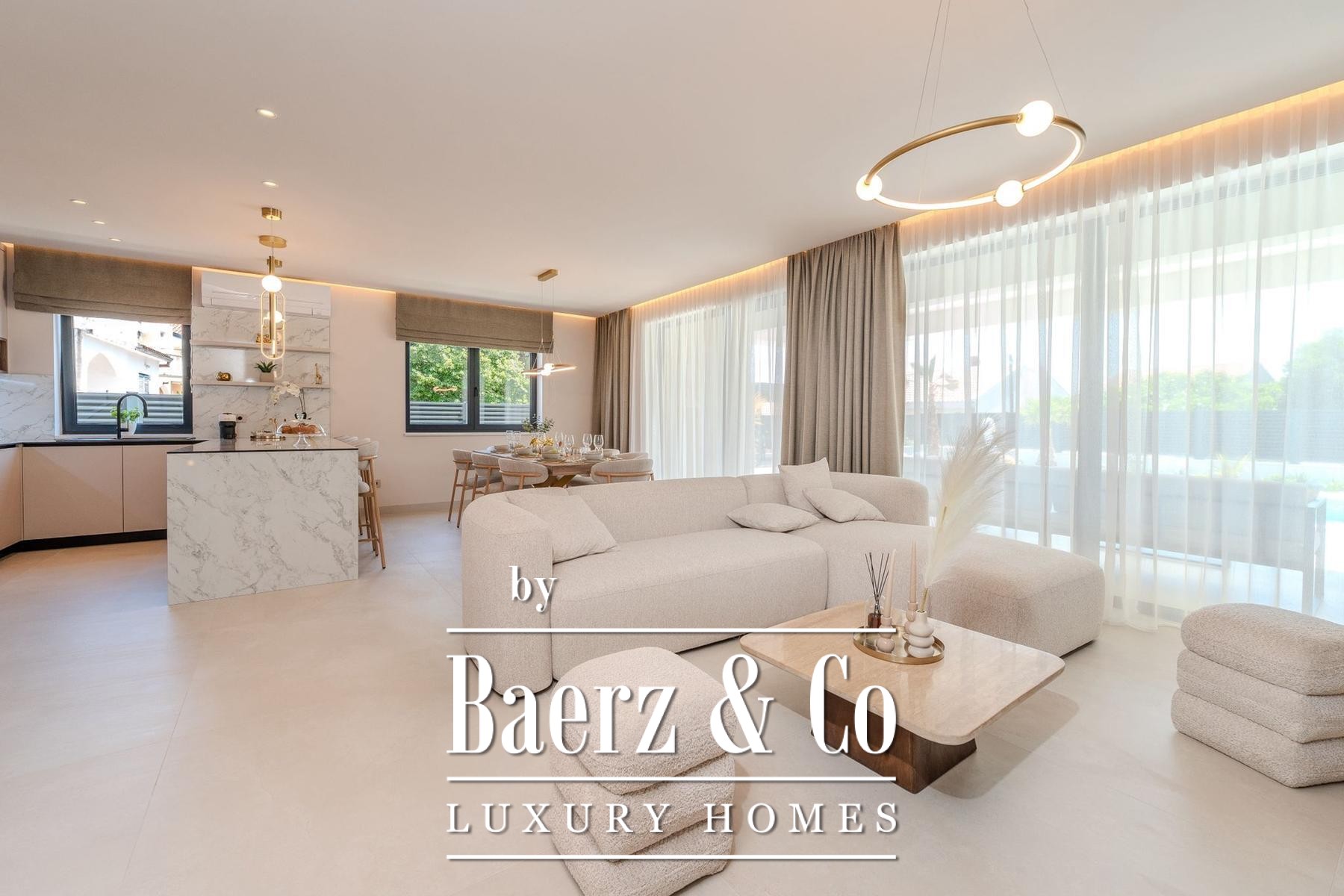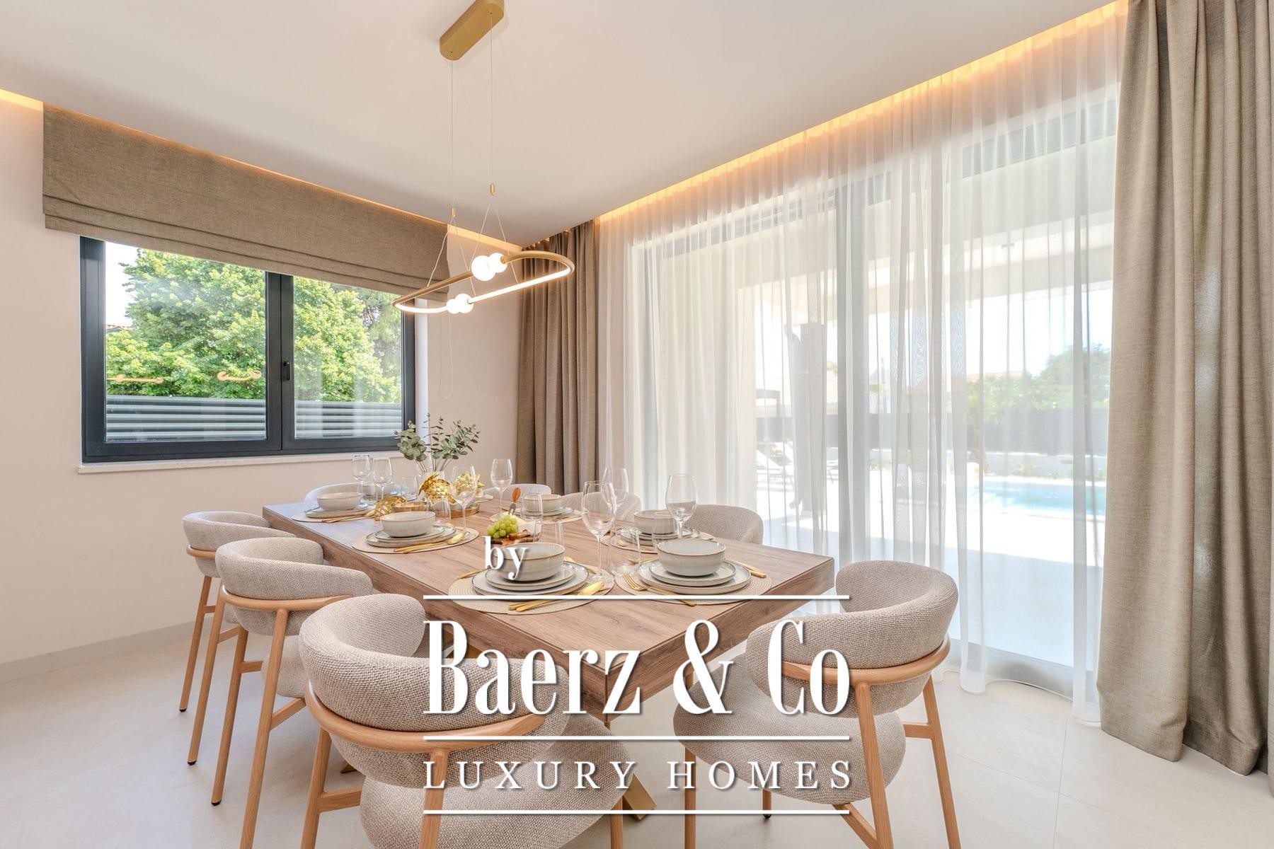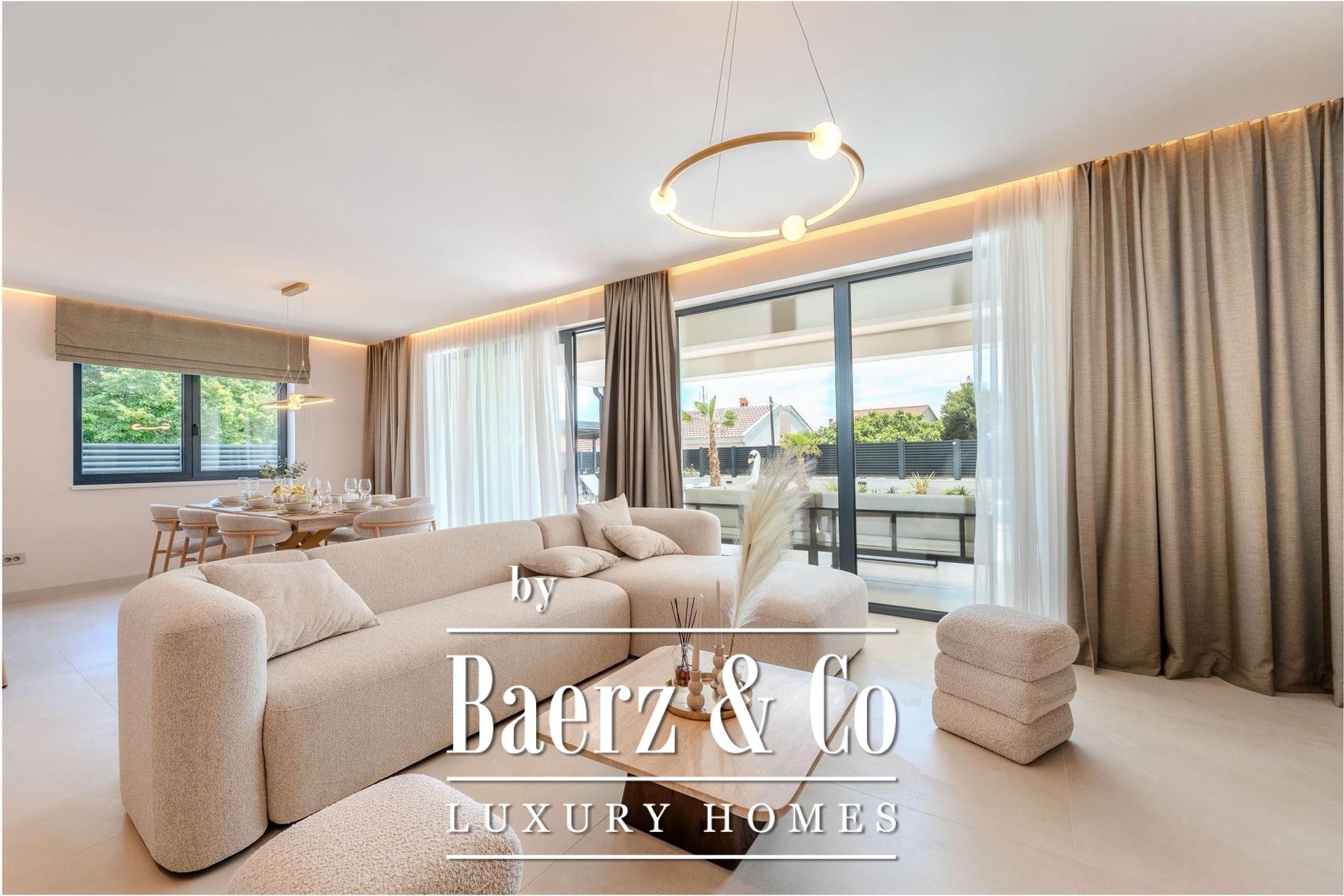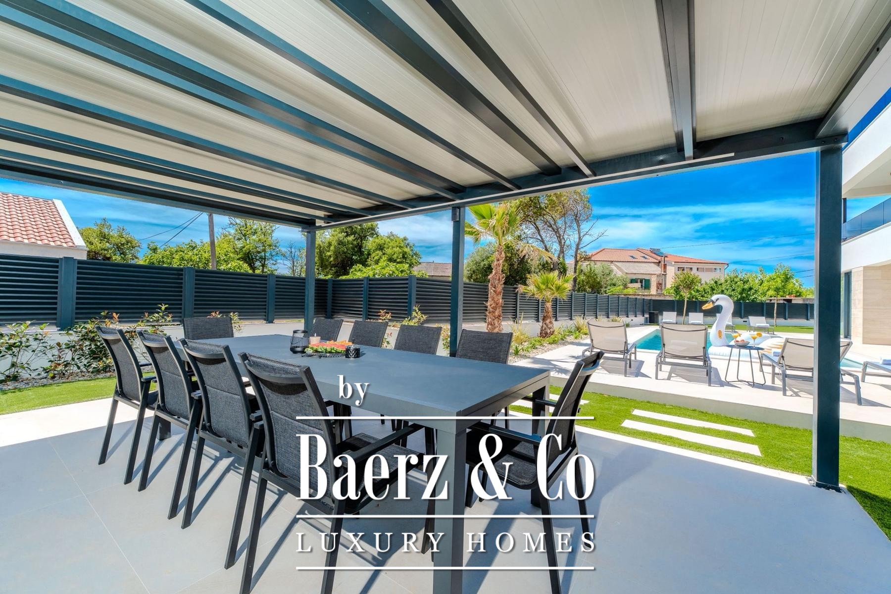 Overdekte en open terrassen vergroten de leefruimte, waar zon en schaduw harmonieus samenkomen. De fraai aangelegde tuin en zonneweide geven privacy, terwijl beveiligde parkeergelegenheid met cameratoezicht extra zekerheid biedt. Op slechts enkele passen van uitstekend onderhouden stranden combineert deze villa te koop in Privlaka architectonische elegantie met mediterrane ontspanning, geschikt als discrete gezinswoning of luxe vakantiewoning. Elk architectonisch detail staat garant voor functionaliteit en duurzame kwaliteit en creëert een sfeer van rust, comfort en licht.