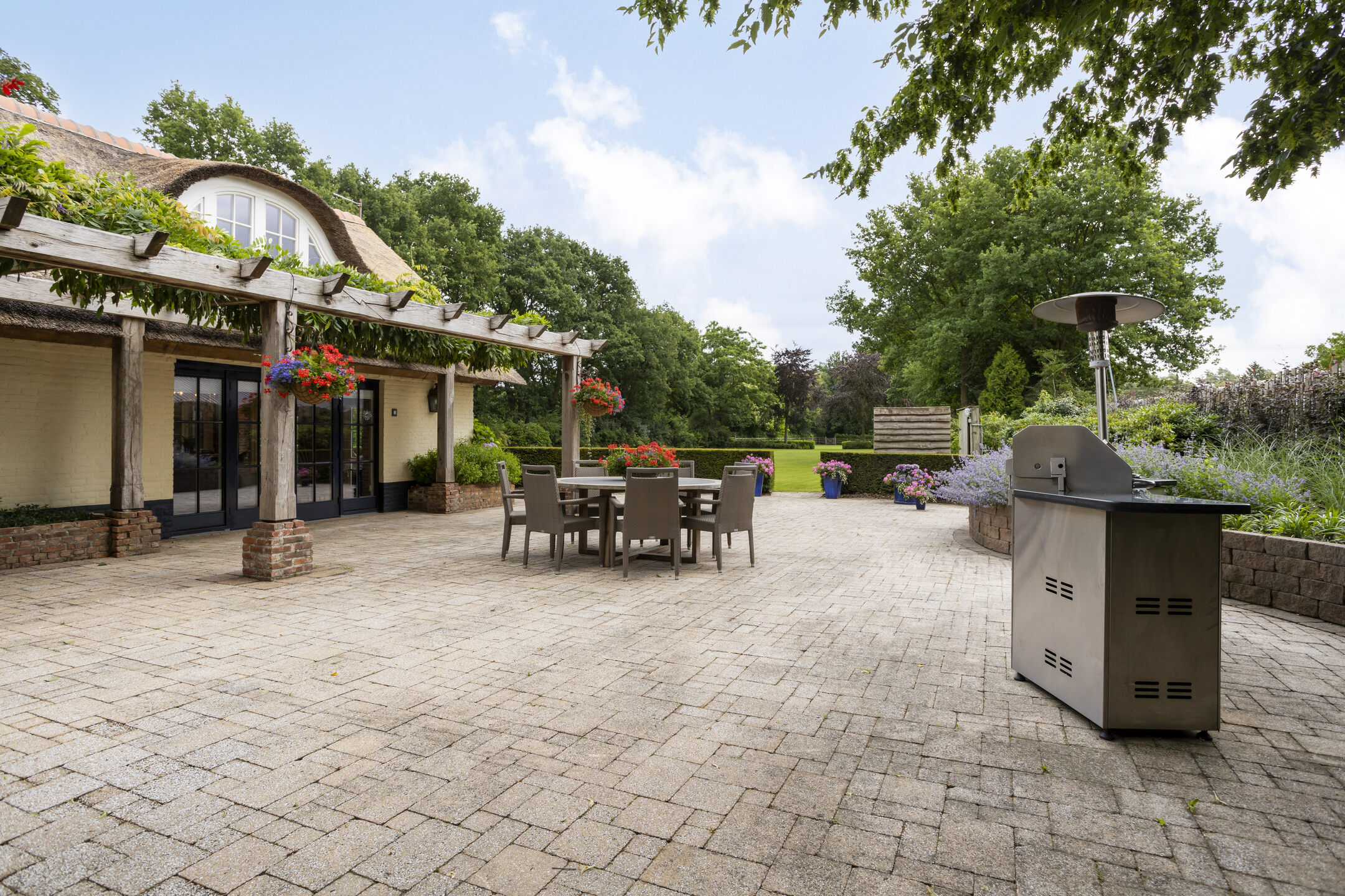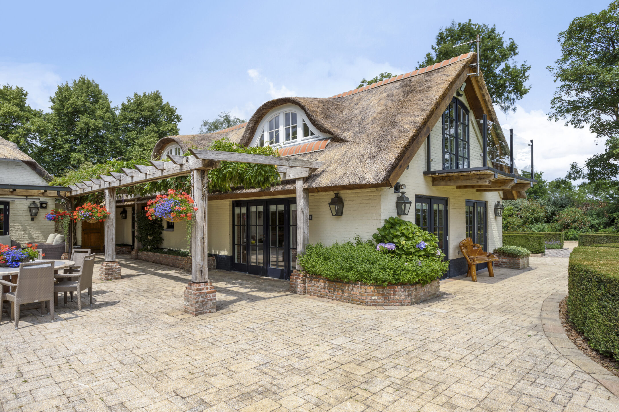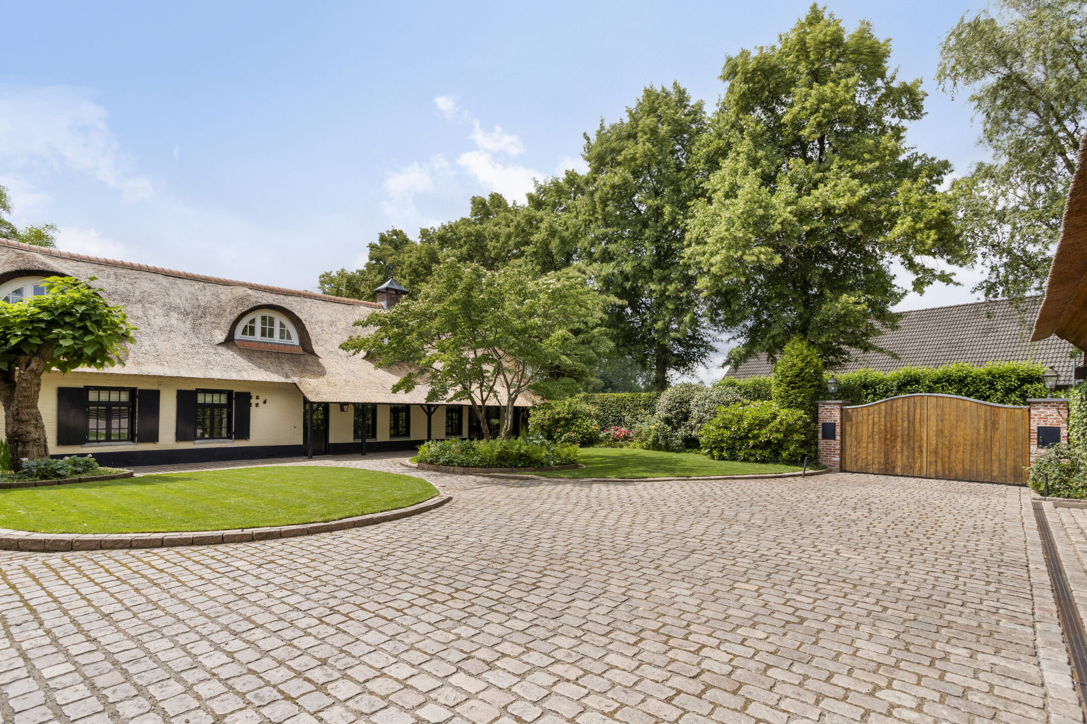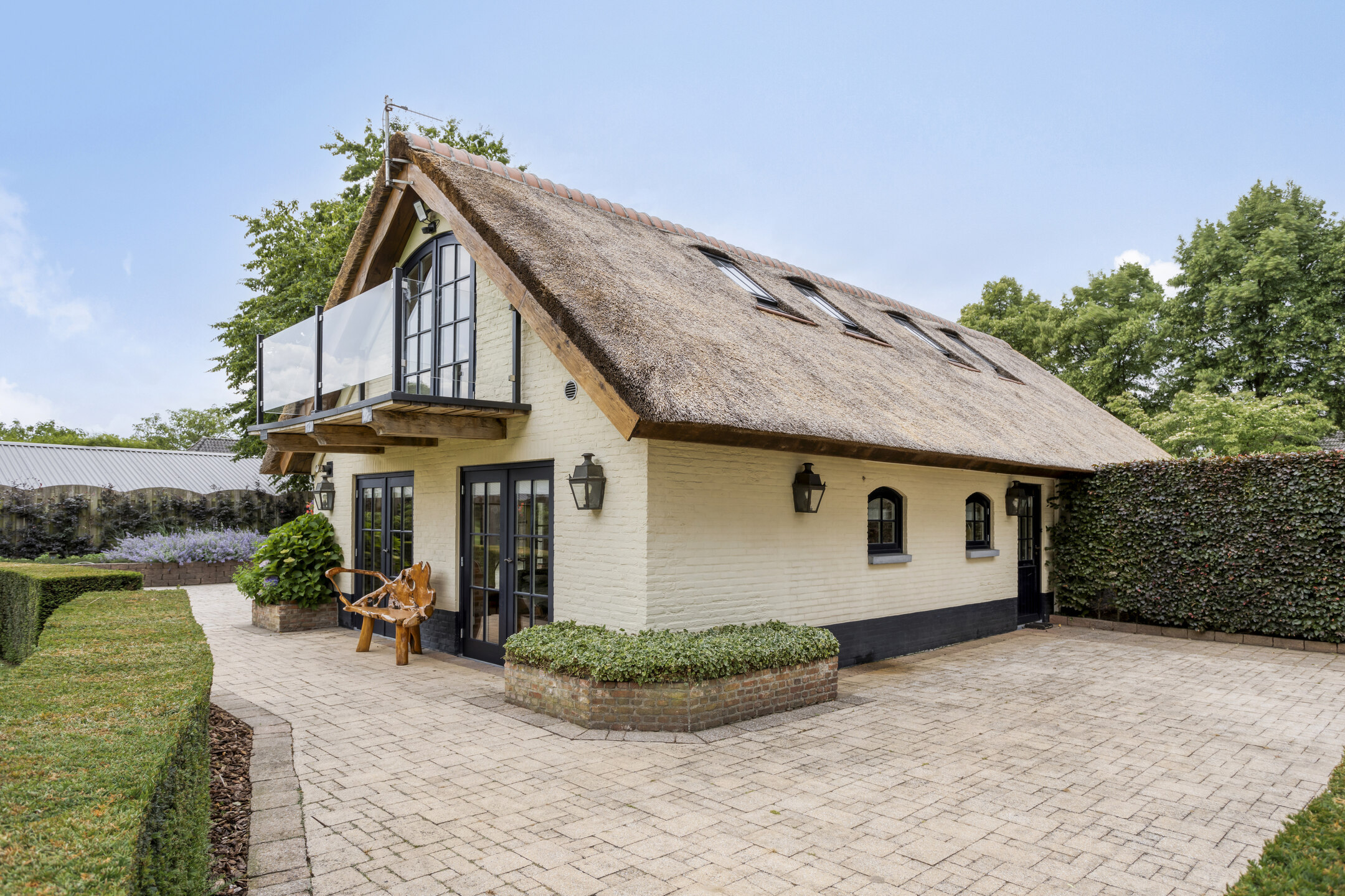In een rustige straat aan de rand van Riethoven op een magnifiek perceel van 6.755 m² gelegen prachtige in oude stijl gerenoveerde woonboerderij met rieten kap. De woning is smaakvol verbouwd en beschikt over een groot, vrijstaand gastenverblijf, een royaal bijgebouw met ontspanningsruimte en fitnessruimte/gym, een ruime carport voor meerdere auto's en een prachtig aangelegde parkachtige tuin op het westen.