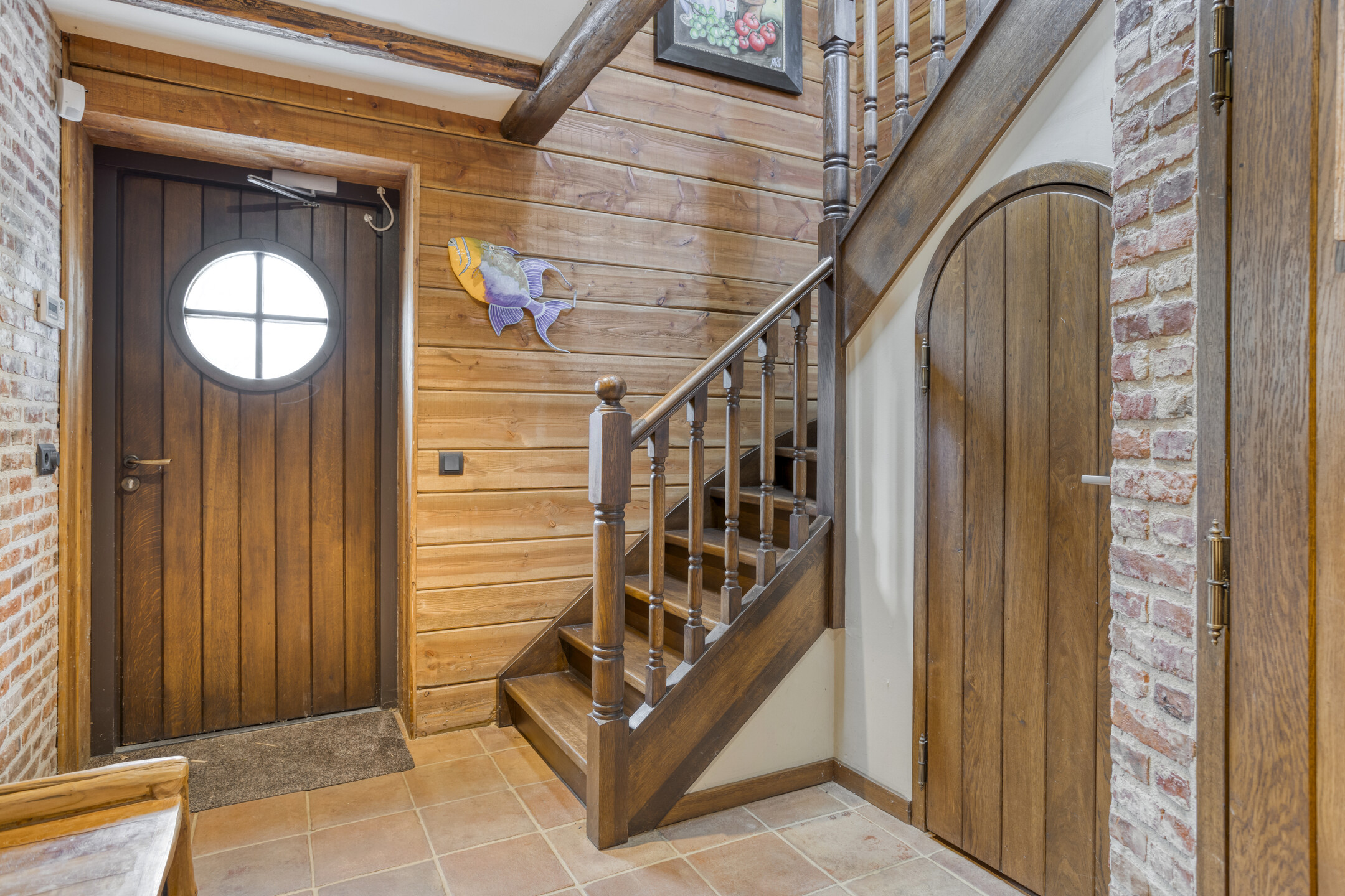 - De woonboerderij en bijgebouw beschikken over hoge plafonds met prachtige balkenconstructie en karakteristieke
