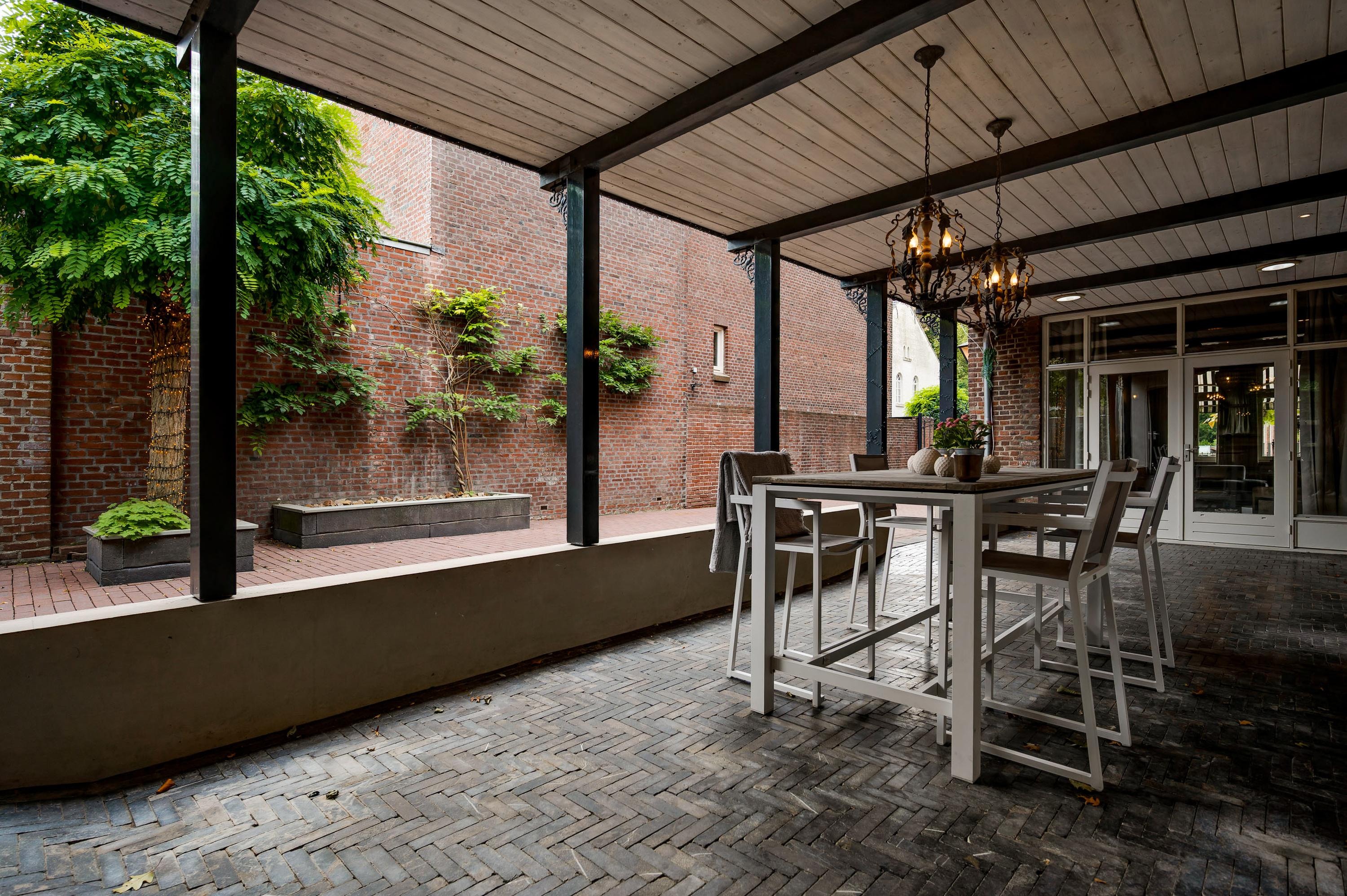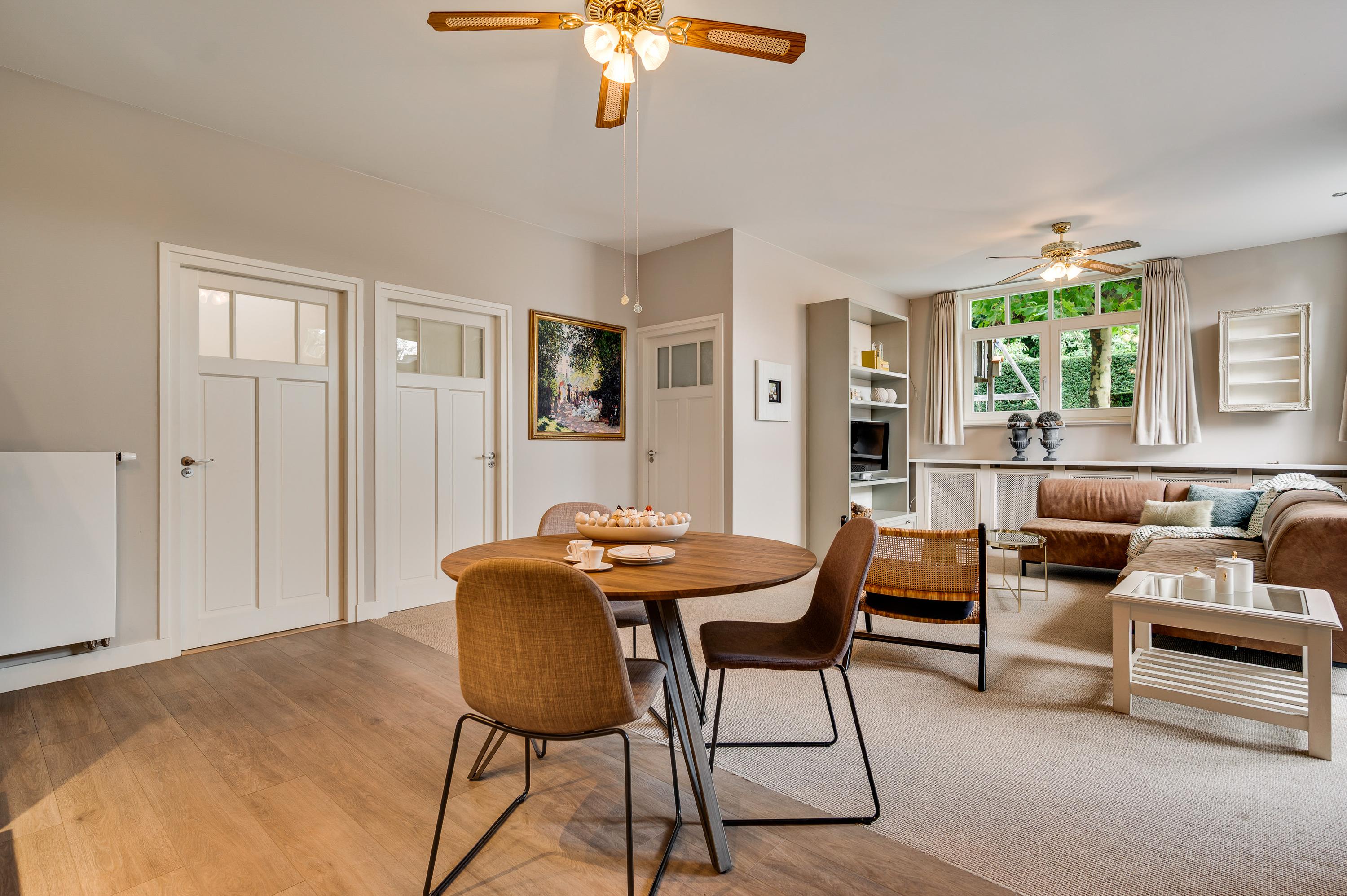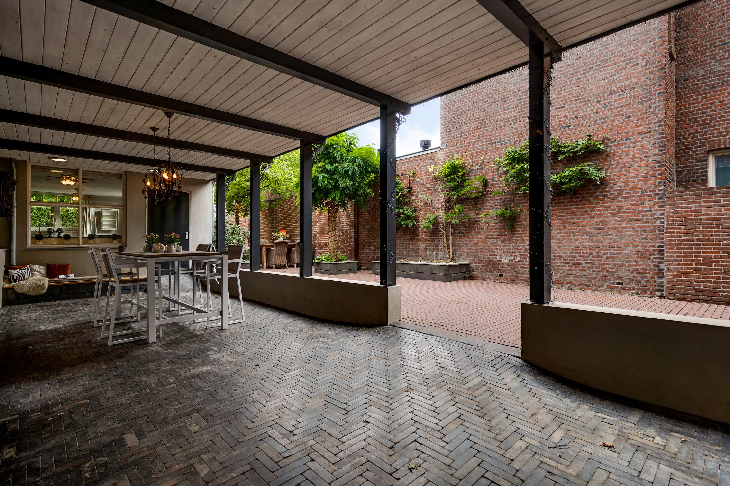 Bij binnenkomst wordt u direct omarmd door de warme sfeer en verfijnde afwerking. De imposante woonkamer van bijna tien meter lengte vormt het hart van het huis. Hier ligt een prachtige Versailles-parketvloer, die in combinatie met de design gashaard en de hoge raampartijen zorgt voor een ambiance van exclusieve rust. Via de openslaande tuindeuren loopt de ruimte naadloos over in het overkapte terras en de stijlvolle stadstuin – een privé-oase midden in de stad.