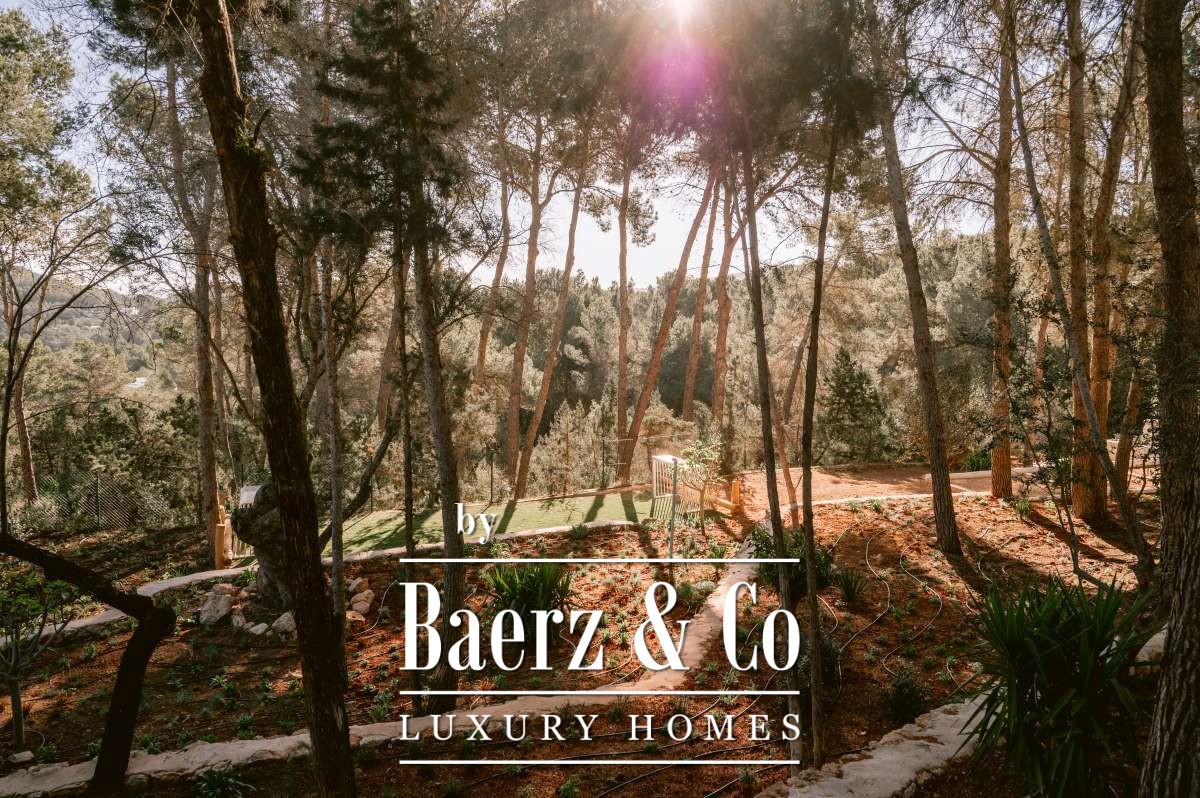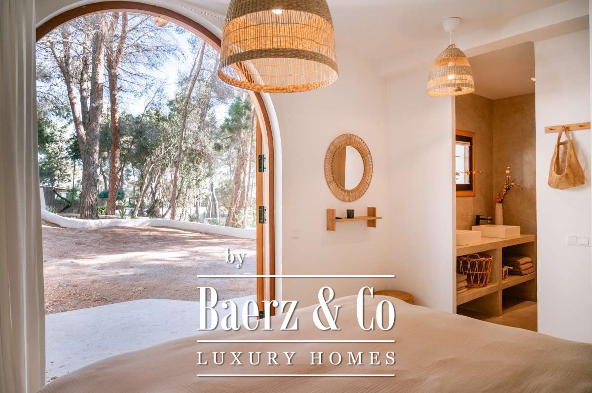 De omgevingGelegen in het prachtige en groene San Agustín ligt deze villa in een bosrijke omgeving waar privacy en natuur samenkomen. Hier is het authentieke Ibiza-gevoel nog duidelijk aanwezig, ver weg van de drukte maar toch centraal gelegen. Verscholen op een volledig omheind perceel ontstaat een oase van rust, terwijl gezellige restaurants, lokale hotspots en enkele van de mooiste stranden van de westkust zich op korte afstand bevinden. Een plek waar het buitenleven centraal staat, met lange lunches, zonsopkomsten, zonsondergangen en een ontspannen sfeer die kenmerkend is voor Ibiza.De villaDeze volledig gerenoveerde villa beschikt over een bebouwde oppervlakte van circa 175 m² en is gelegen op een royaal perceel van 1.783 m². De woning telt vier slaapkamers en twee badkamers en wordt volledig gemeubileerd aangeboden, waardoor deze direct instapklaar is. De sfeer in huis is warm, stijlvol en ontspannen, met een uitgesproken binnen-buitengevoel dat perfect aansluit bij de natuurlijke omgeving.De indeling is overzichtelijk en comfortabel, met lichte leefruimtes en een natuurlijke verbinding tussen binnen en buiten. Grote raampartijen zorgen voor veel daglicht en versterken het gevoel van ruimte en rust. De villa is met zorg gerenoveerd en combineert comfort met een eigentijdse, zachte afwerking. Daarnaast beschikt de woning over een kelder, die een waardevolle aanvulling vormt op het geheel. Ook het dakterras vormt een mooie aanvulling en biedt een extra plek om in alle rust van de omgeving te genieten.De buitenruimtesDe buitenruimtes geven deze woning een uitgesproken ontspannen en luxe karakter. Op het royale perceel bevindt zich een grote tuin met meerdere outdoor-loungeplekken, waardoor er op elk moment van de dag een fijne plek is om te ontspannen, te dineren of gasten te ontvangen. Het verwarmde zoutwaterzwembad vormt het centrale punt van de tuin en maakt het mogelijk om het hele jaar door van het buitenleven te genieten.Daarnaast beschikt het perceel over een eigen voetbalveld, een kabelbaan en volop ruimte voor zowel ontspanning als activiteit, wat deze villa ook zeer geschikt maakt voor families. Er is een overdekte parkeerplaats voor twee auto’s en in totaal zijn er vier parkeerplekken aanwezig. Dankzij de bosrijke setting, het volledig omheinde perceel en de vele beschutte zithoeken ontstaat een uitzonderlijk gevoel van vrijheid en rust. Deze villa in San Agustín is daarmee een ideale woning voor eigen gebruik, als luxe vakantieverblijf of als investering op een bijzondere plek op Ibiza.