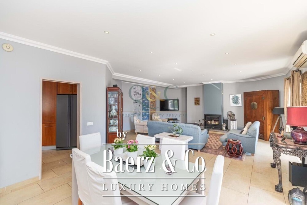 Er zijn drie slaapkamers en drie badkamers, die comfortabele woonruimte bieden. De master suite beschikt over vloerverwarming en directe toegang tot het terras. De ruime keuken is uitgerust met hoogwaardige houten kasten, granieten werkbladen en luxe inbouwapparatuur. De voormalige garage is zorgvuldig verbouwd tot een extra slaapkamer met eigen badkamer en een zelfstandige entree vanaf buiten.