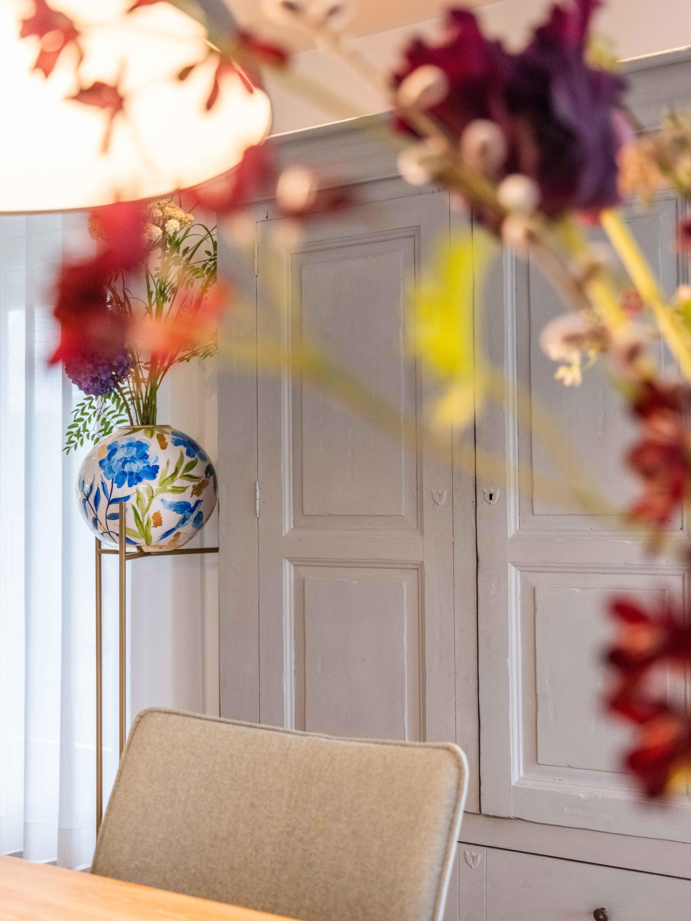 De open keuken is sfeervol ingericht en voorzien van een gezellige bar met zitplaatsen. Vanuit de keuken geniet je van een prachtig uitzicht over de tuin en is er directe verbinding met de woonkamer. Dankzij de open indeling en het overvloedige licht voelt alles ruim, fris en uitnodigend aan.