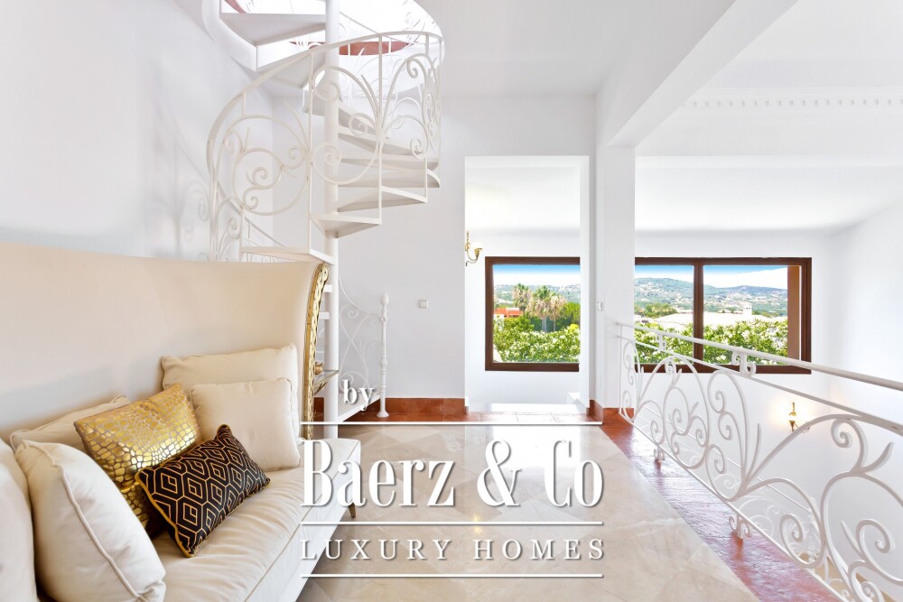 Het gastenappartement boven de privégarage biedt een slaapkamer, een en-suite badkamer en een woonkamer, en biedt volledige onafhankelijkheid aan bezoekers. Drie slaapkamers met eigen badkamer op de begane grond en een privé master suite op de bovenverdieping hebben allemaal uitzicht op de bergen of de zee. Een wenteltrap leidt naar een extra balkon, perfect om te reflecteren op het wisselende licht. Veiligheid en comfort zijn verzekerd met 24-uurs service, airconditioning, radiatoren voor centrale verwarming en nabijheid van top scholen en voorzieningen. Deze luxe villa te koop in Sotogrande biedt een perfecte balans tussen elegantie, privacy en authentiek mediterraan wonen.