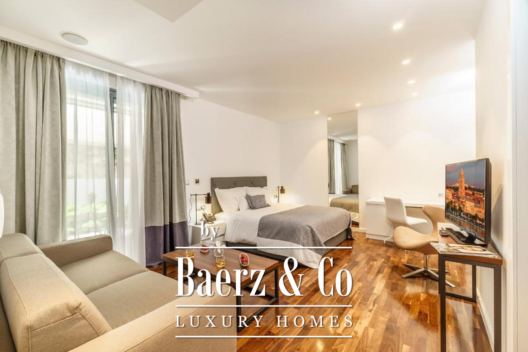 Hotel Split met 11 slaapkamers ligt discreet op slechts enkele momenten van het beroemde Žnjan-strand en combineert privacy met directe toegang tot de Adriatische kustlijn. Elk van de 11 slaapkamers is volledig gemeubileerd en beschikt over een eigen, goed uitgeruste badkamer. Negen kamers hebben een terras en directe toegang tot het buitenzwembad. Het eigendom beslaat een woonoppervlakte van 524 m² op een perceel van 1.600 m², met ruime interieurs en een royale tuin als besloten toevluchtsoord.