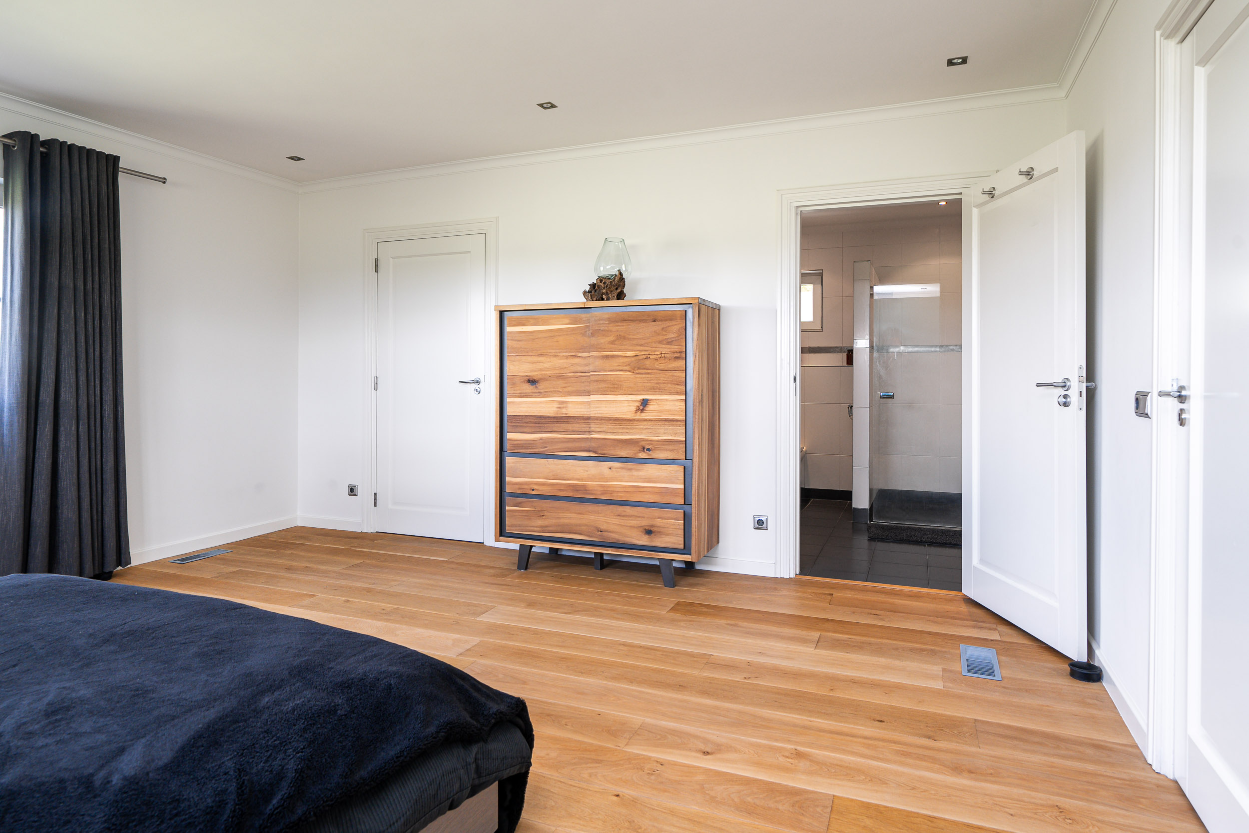 Door de riante ouderslaapkamer met ensuite badkamer voorzien van vloerverwarming en inloopkleedkast op de begane grond is de woning levensloopbestendig gemaakt.