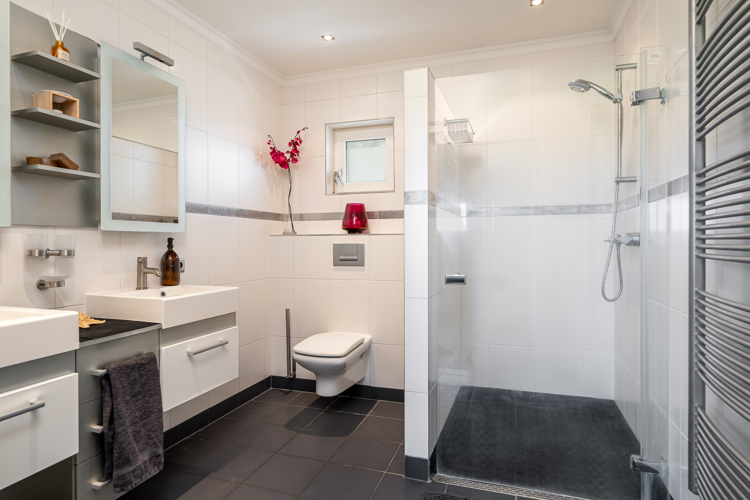 Er zijn 3 royale slaapkamers op deze verdieping en een ruime tweede badkamer voorzien van vloerverwarming, dubbel wastafelmeubel, inloopdouche en toilet.