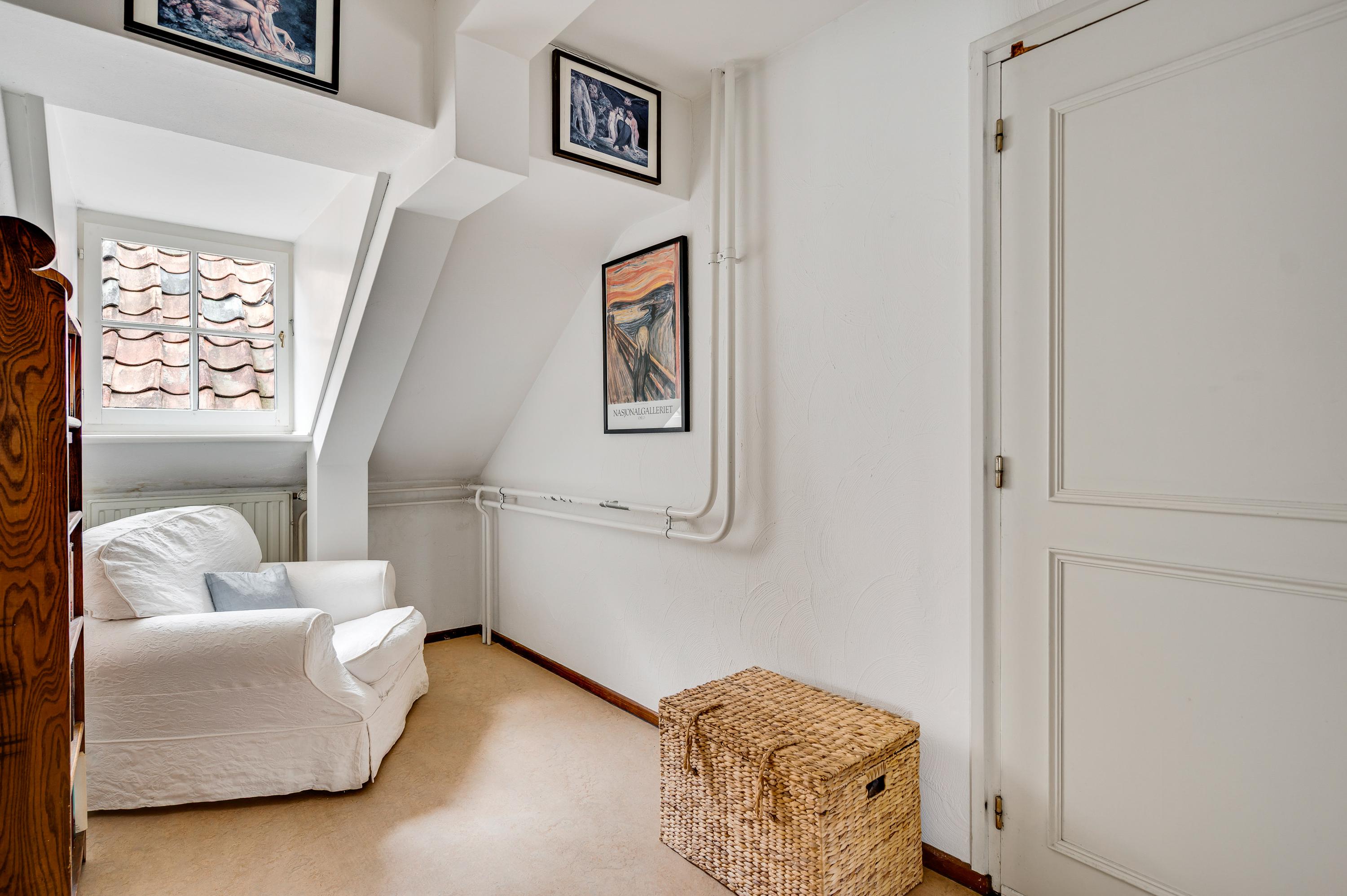 Bereikbaar via een vaste trap, momenteel in gebruik als bergzolder. Hier bevinden zich tevens de cv-ketel en de boiler.