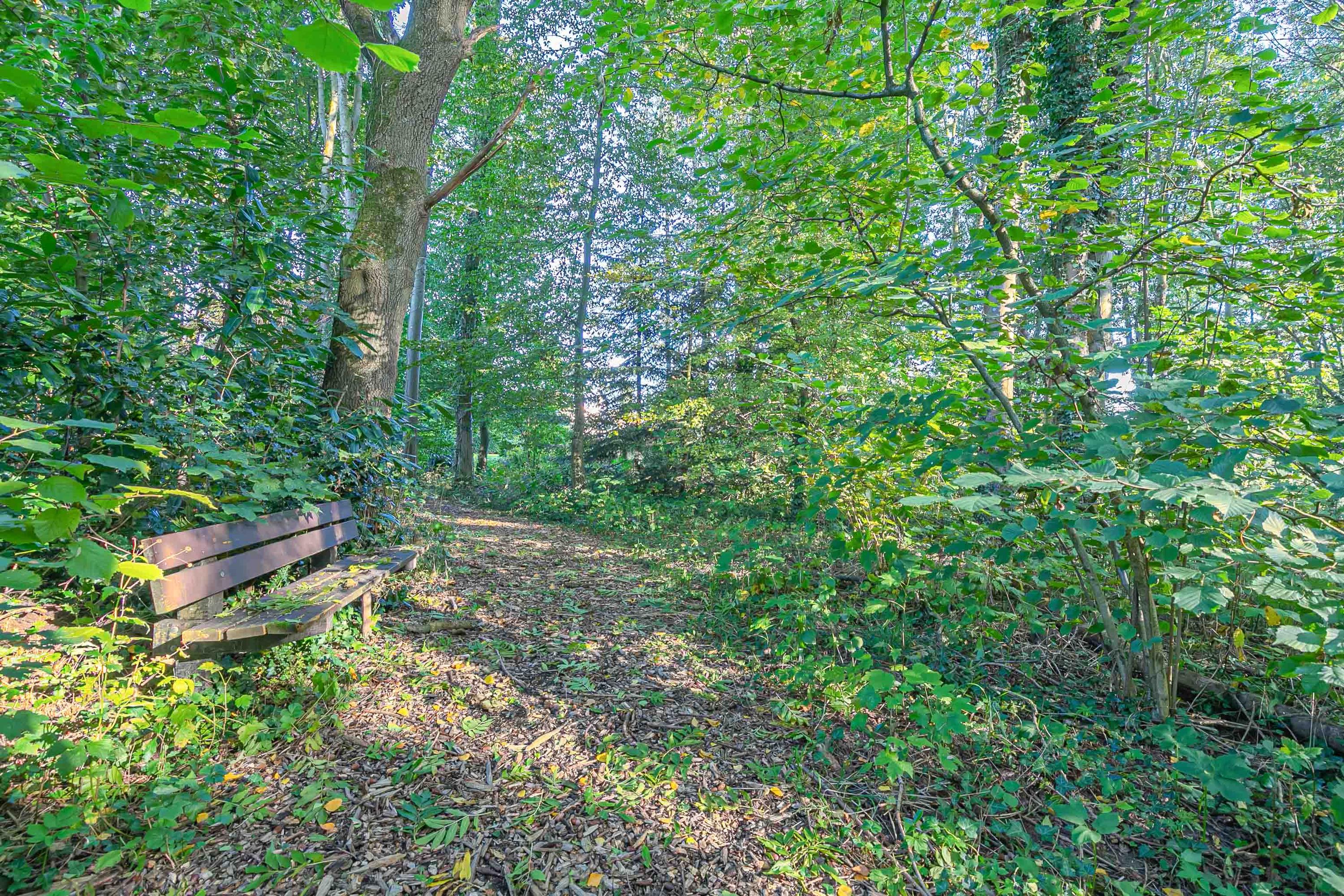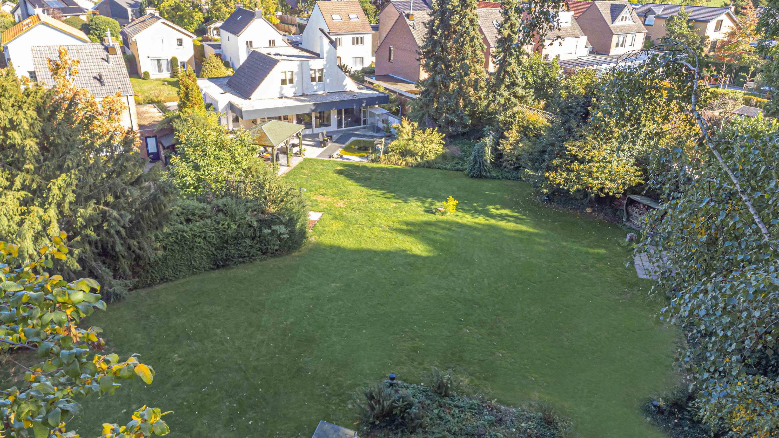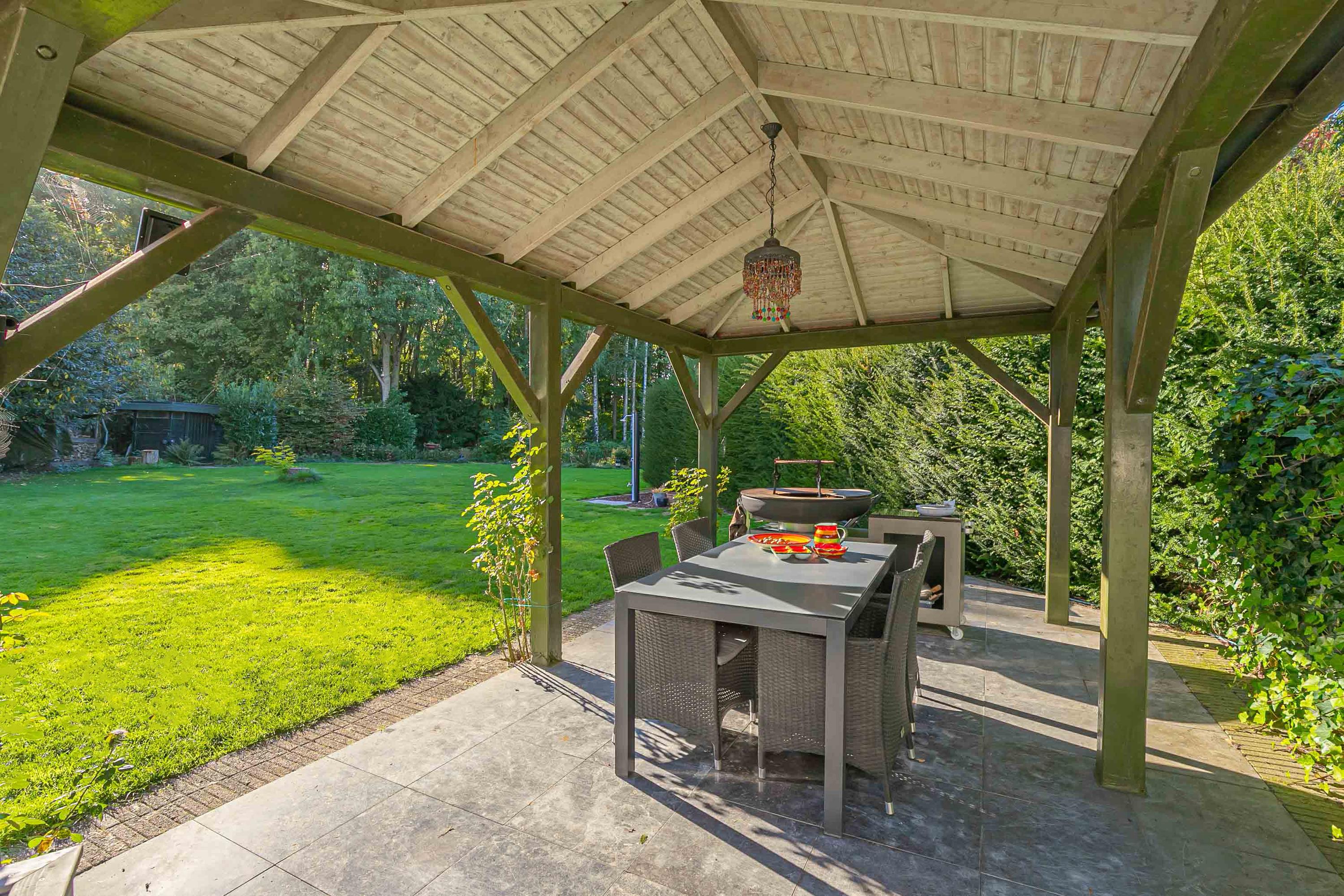 Riante, parkachtige tuin waar men in alle rust kan genieten van optimale privacy. Er zijn diverse zitgedeeltes gecreëerd, waarvan één met overkapping (ca. 14m²). Ook is er een vijver aangelegd in de tuin. Achter de tuin ligt een prachtig bos van ca. 9858m².