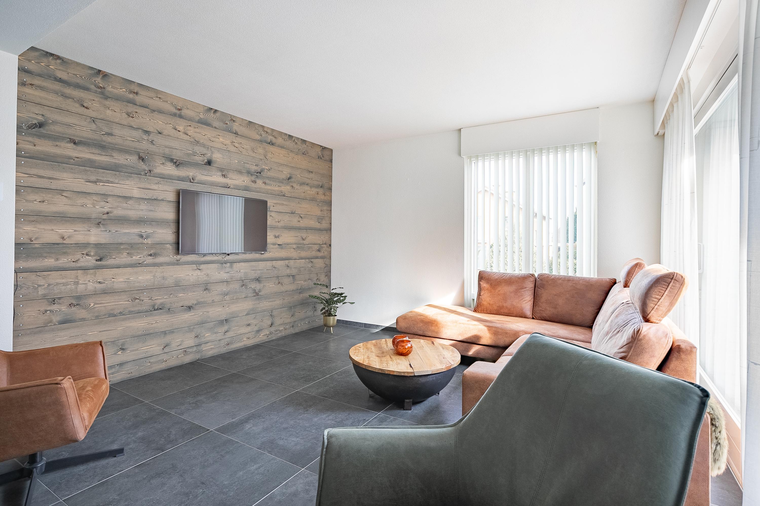 - Houtkachel (gekoppeld aan het Hygiënevat) in de woonkamer met Pizza-oven,