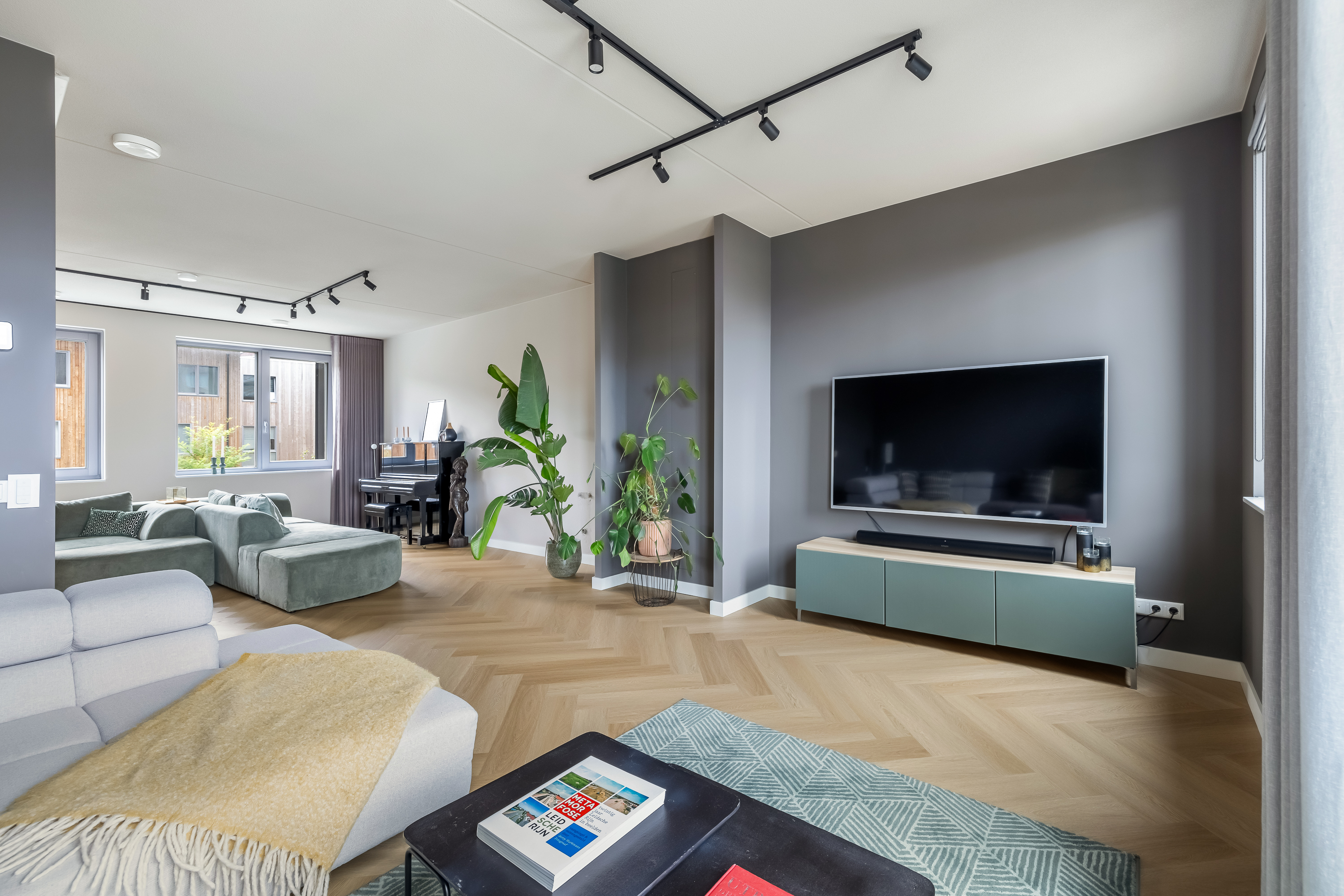 Alles in huis is met zorg ontworpen. De sfeer is warm, eigentijds en luxe. De maatwerkkeuken is een echte blikvanger, met kasten die tot aan het plafond lopen en apparatuur die je zelfs met wifi kunt bedienen. Je zet de oven alvast aan terwijl je onderweg bent, of laat je broodjes bakken nog voor je beneden bent en kook meteen je eitje. Wat een luxe hè? Elk detail klopt. Heb je de uitlijning van de oven gezien? Wij zijn fan!