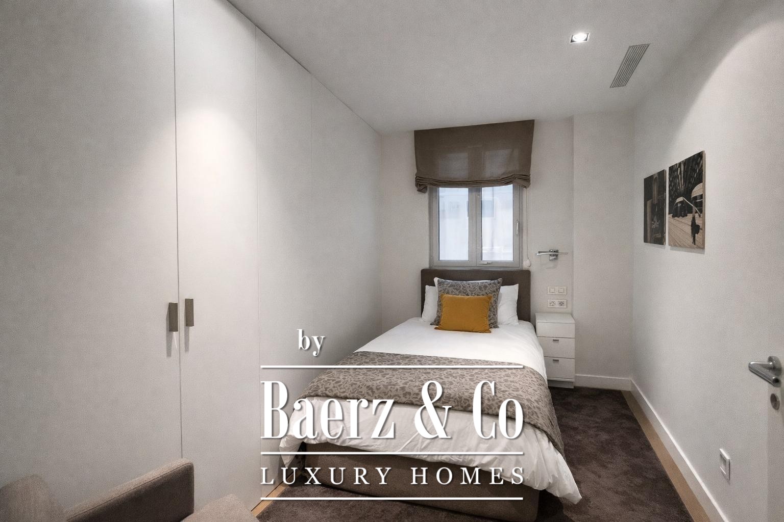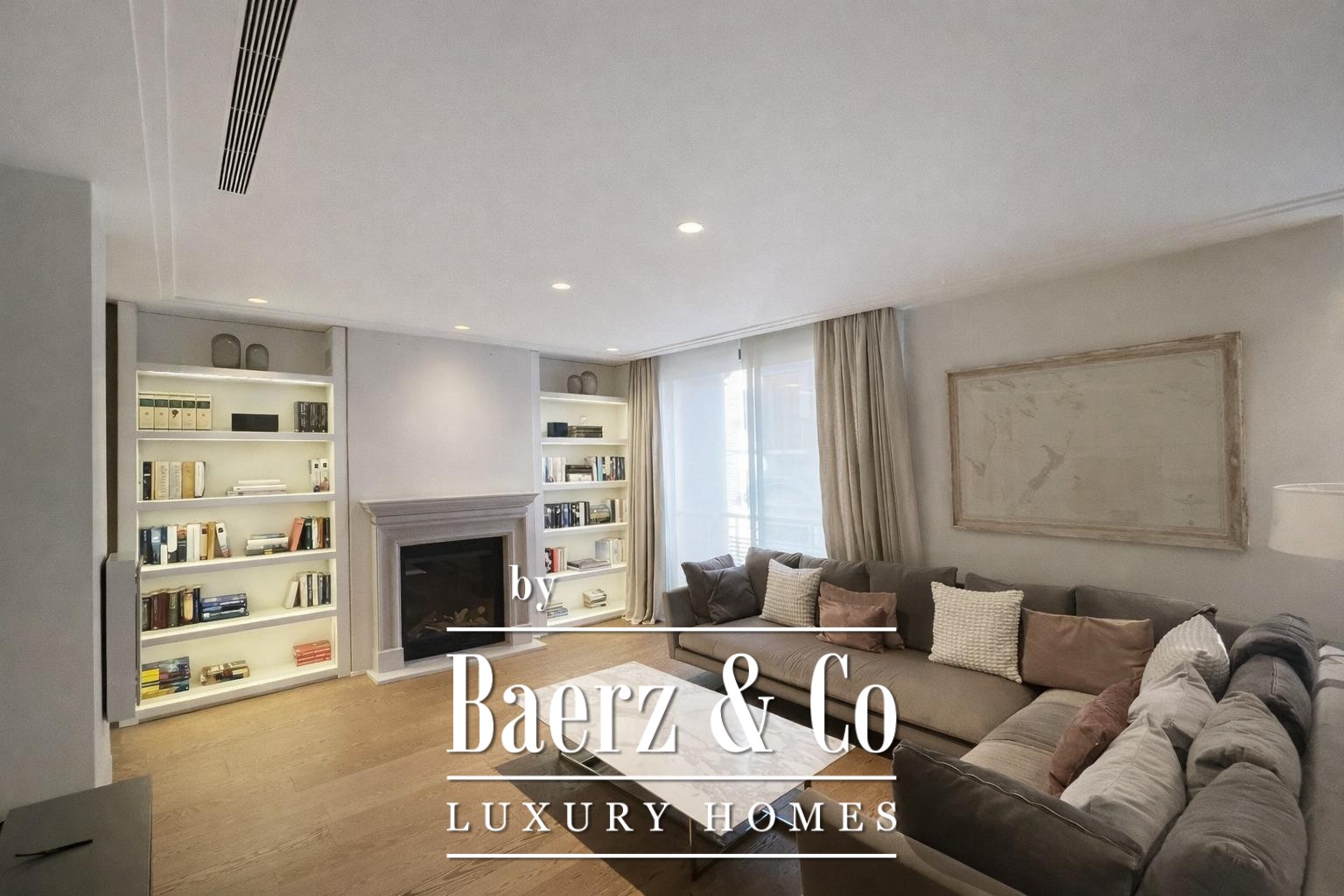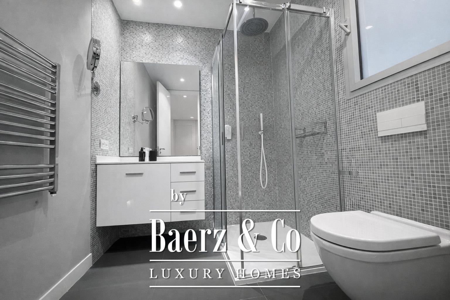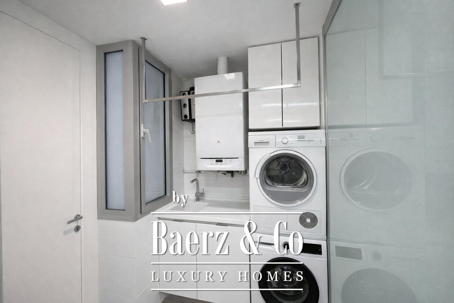 Overvloedig daglicht verfraait elke kamer en benadrukt de hoogwaardige materialen en elegante inrichting. Een aparte wasruimte en een balkon bieden zowel functionaliteit als een discrete buitenruimte. De woning beschikt over een ruime garageplaats, een zeldzaamheid in het stadscentrum, en een aandeel in de commerciële ruimten van het gebouw, wat bijdraagt aan de erfgoedwaarde van het pand.