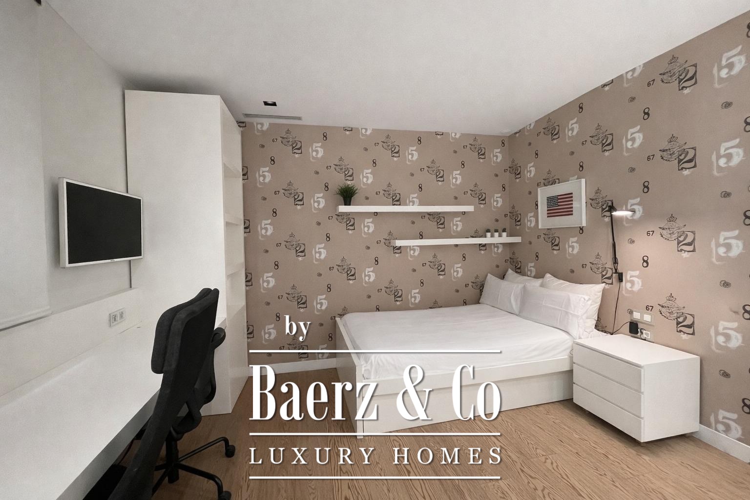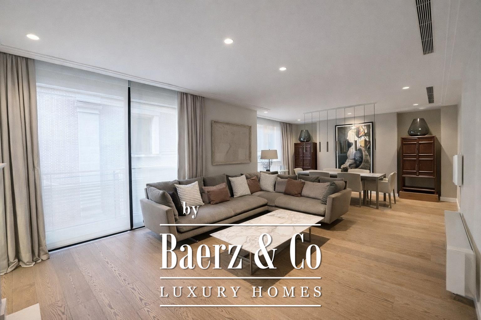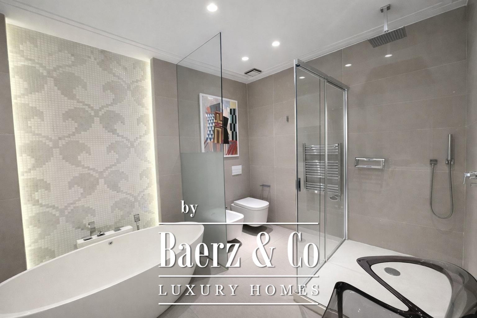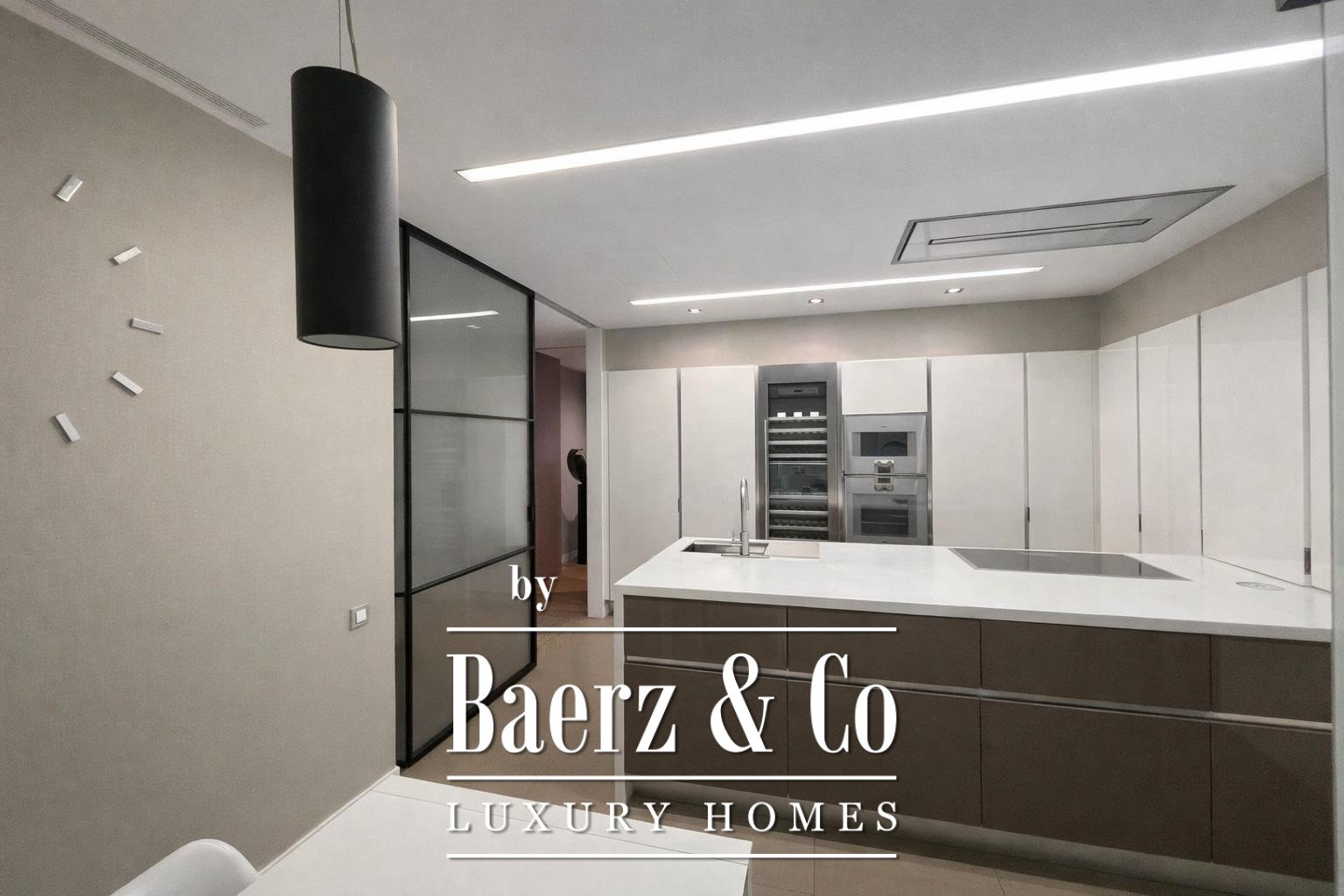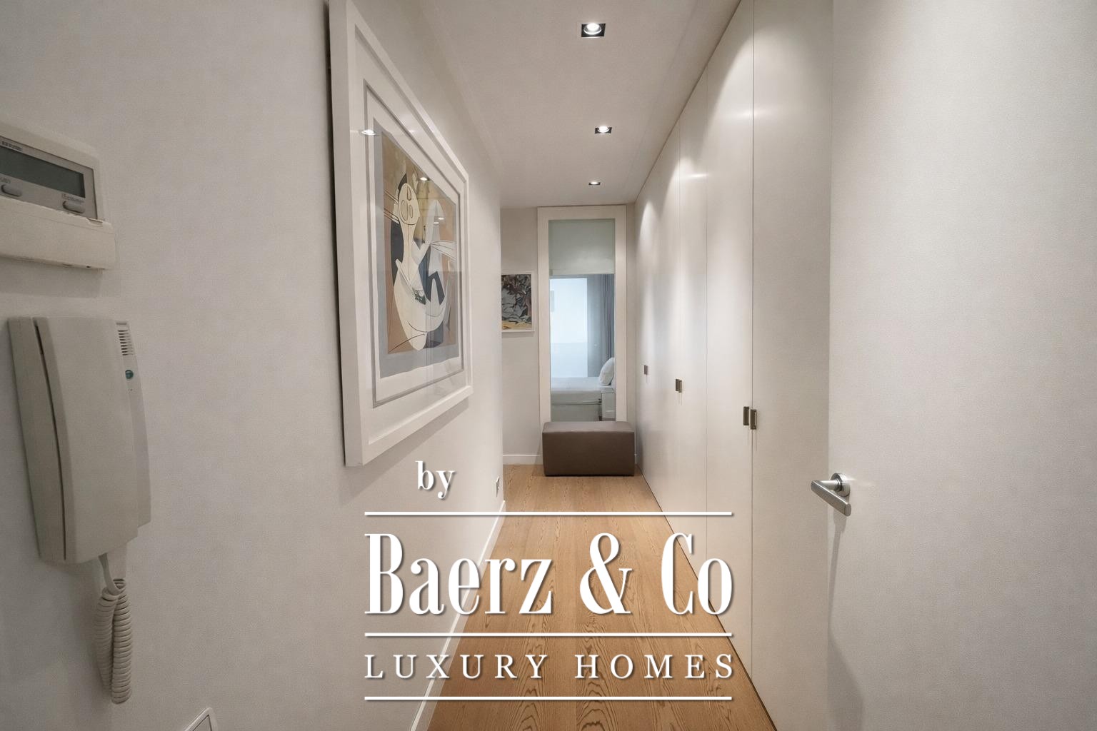 Overvloedig daglicht verfraait elke kamer en benadrukt de hoogwaardige materialen en elegante inrichting. Een aparte wasruimte en een balkon bieden zowel functionaliteit als een discrete buitenruimte. De woning beschikt over een ruime garageplaats, een zeldzaamheid in het stadscentrum, en een aandeel in de commerciële ruimten van het gebouw, wat bijdraagt aan de erfgoedwaarde van het pand.