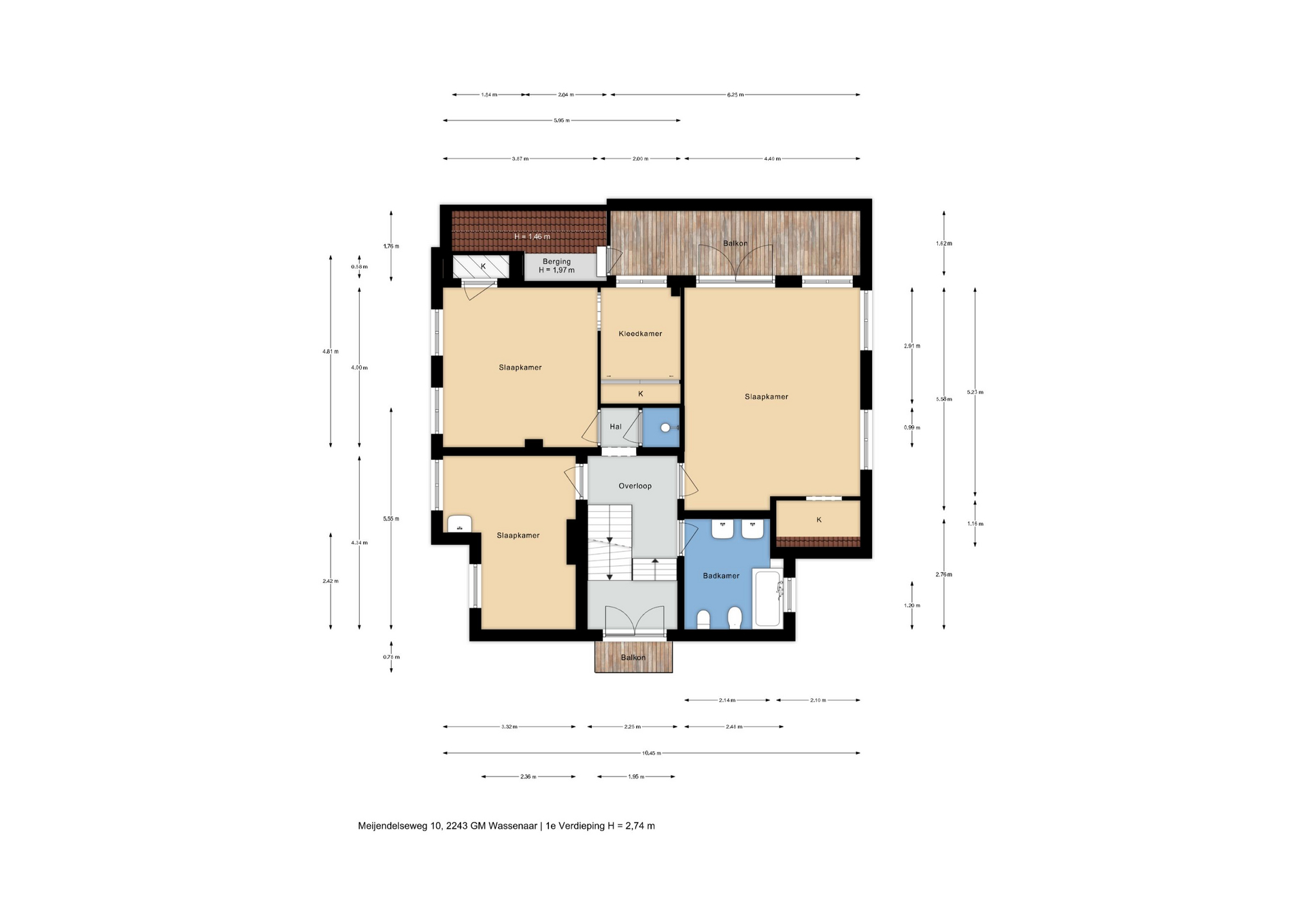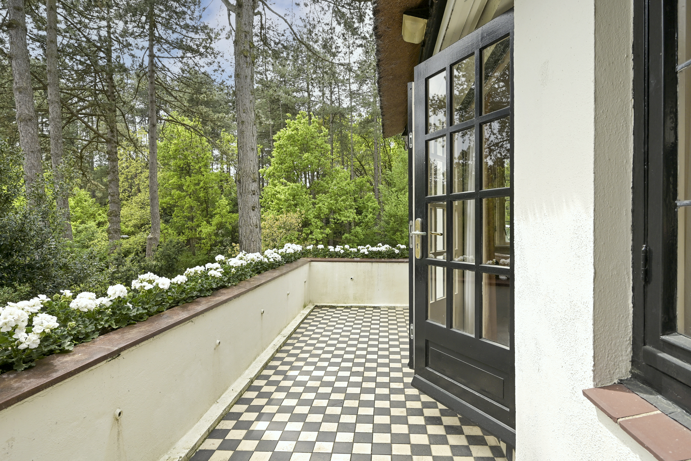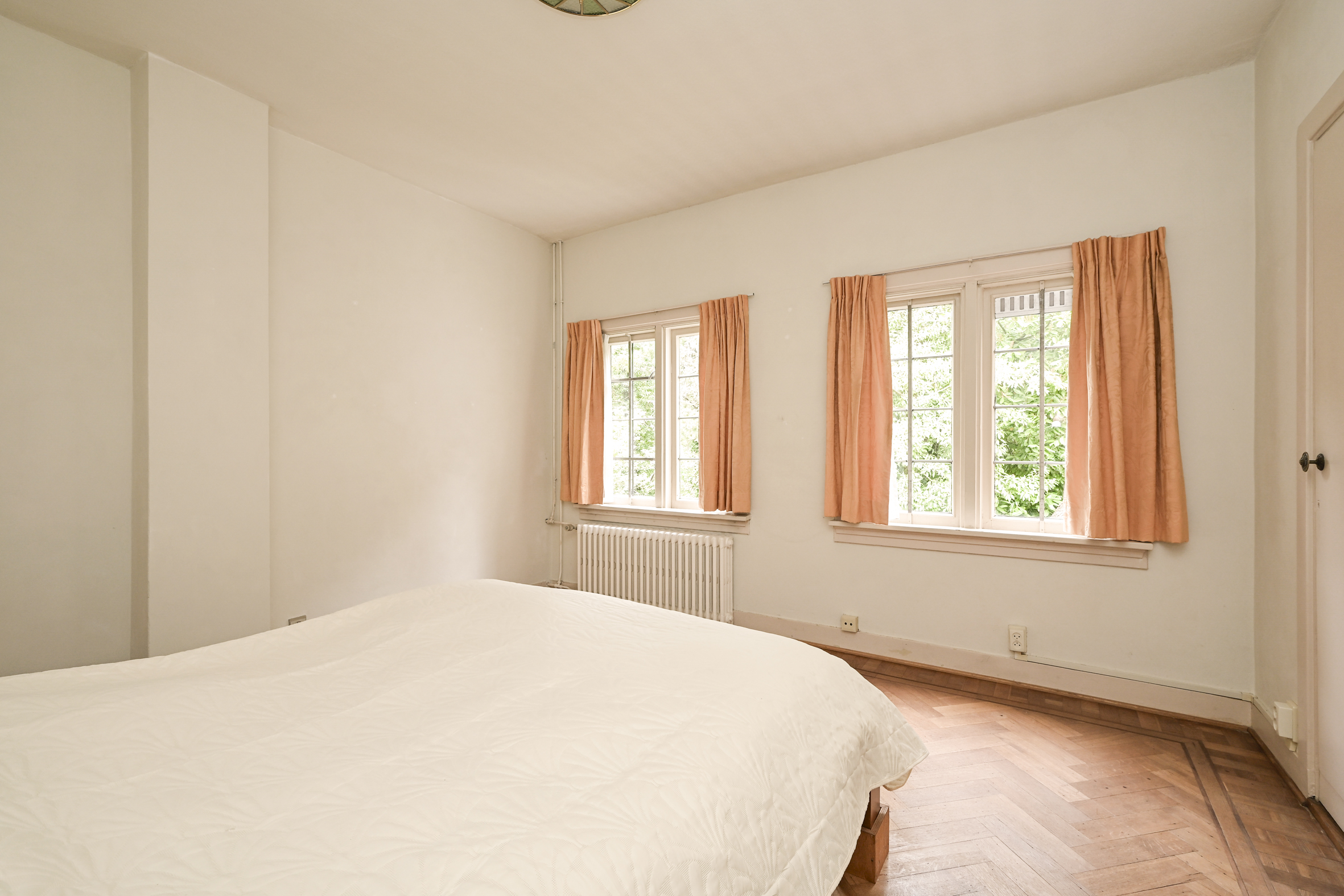 Het fraaie lichte bordestrappenhuis met halverwege toegang tot een balkon leidt naar de 1e verdieping waar we naast een eenvoudige badkamer en een aparte douche een fraaie studeerkamer met toegang tot ruim balkon vinden en twee ruime slaapkamers. Zoals benoemd zijn alle vertrekken voorzien van eiken parketvloeren.