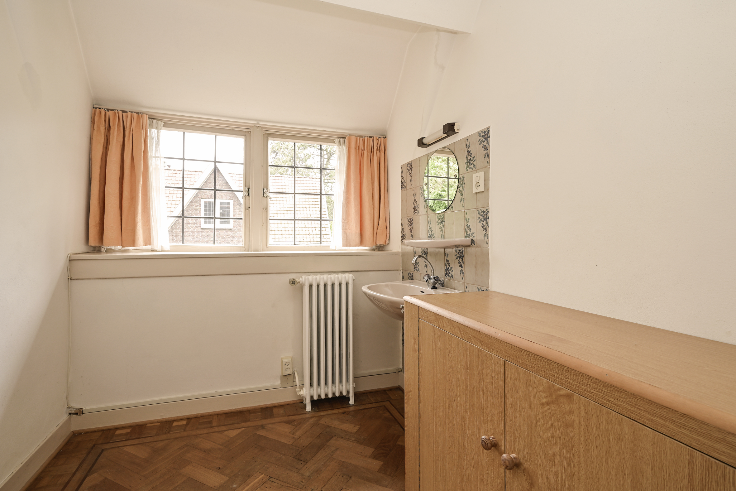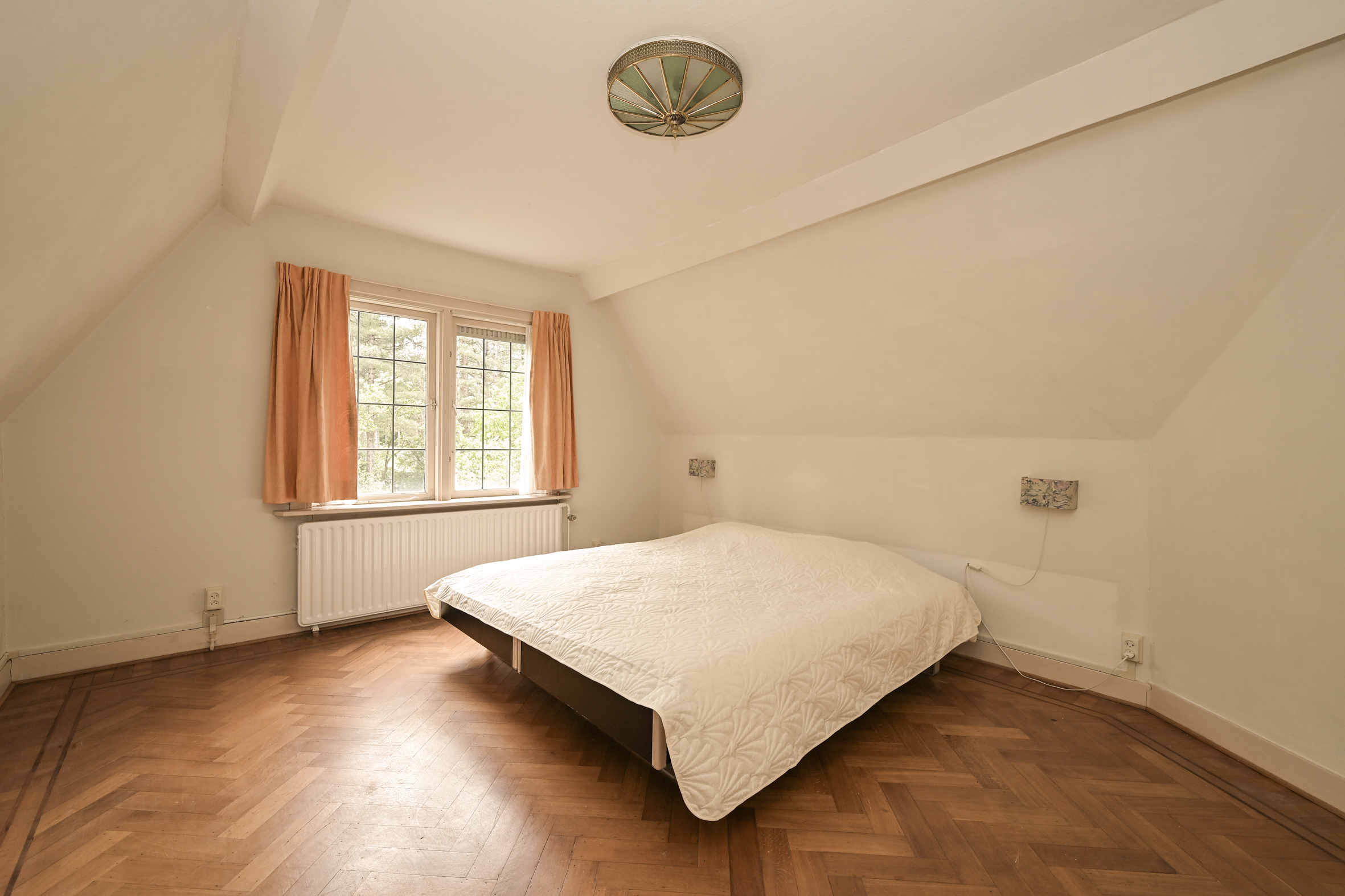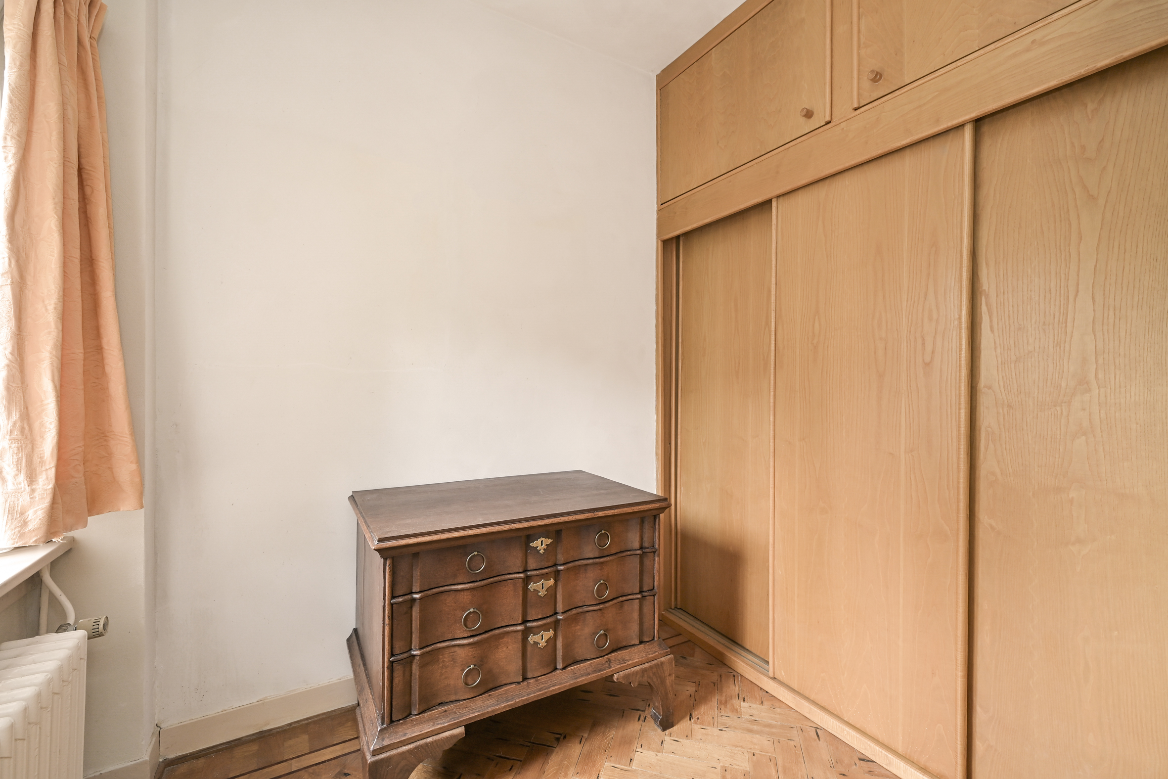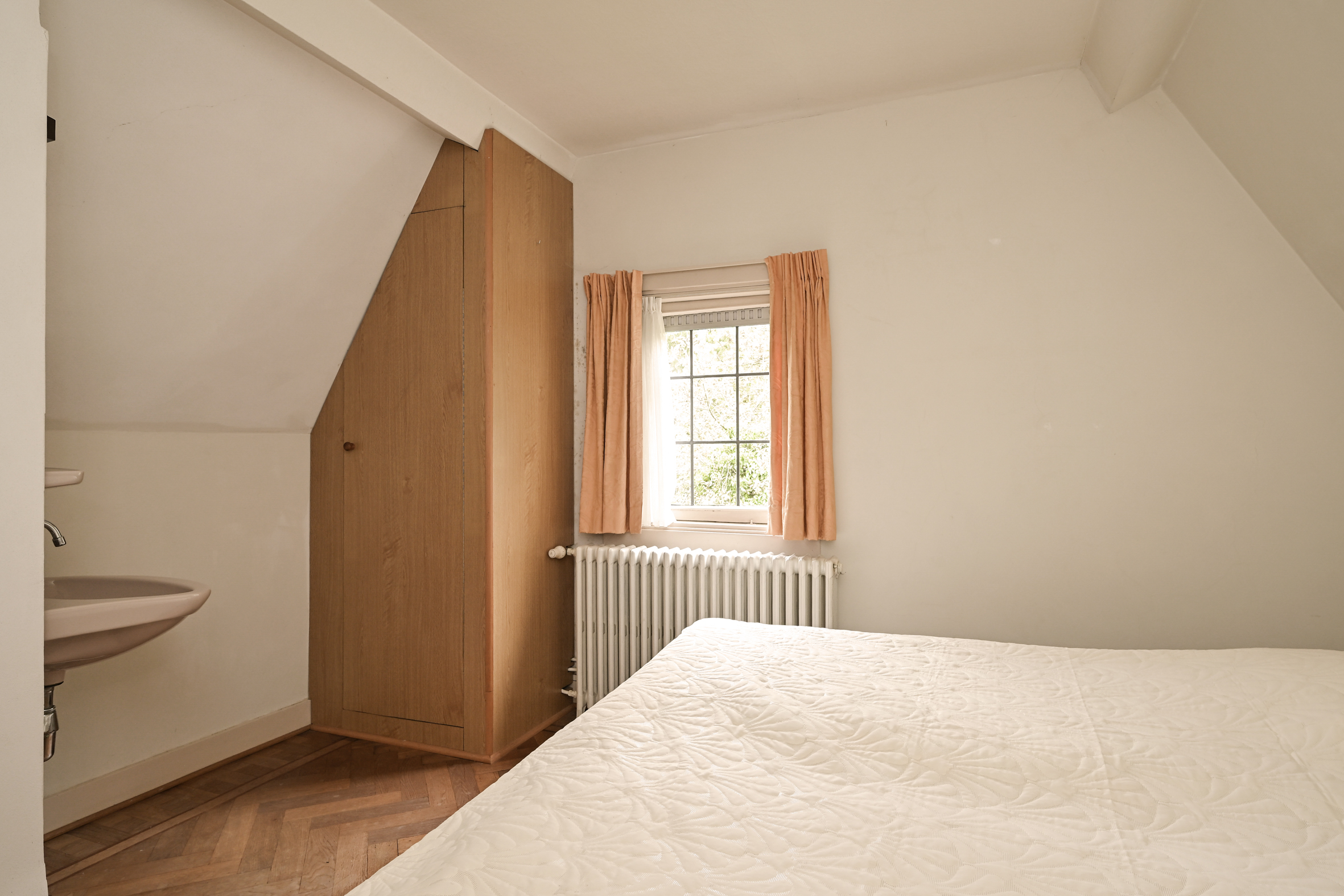 2e verdieping; lichte overloop, twee uitstekende slaapkamers en een derde wat kleinere slaapkamer waar desgewenst een goede badkamer kan worden gecreëerd. Veel kast ruimte en ook deze vertrekken zijn allen voorzien van eiken vloeren.