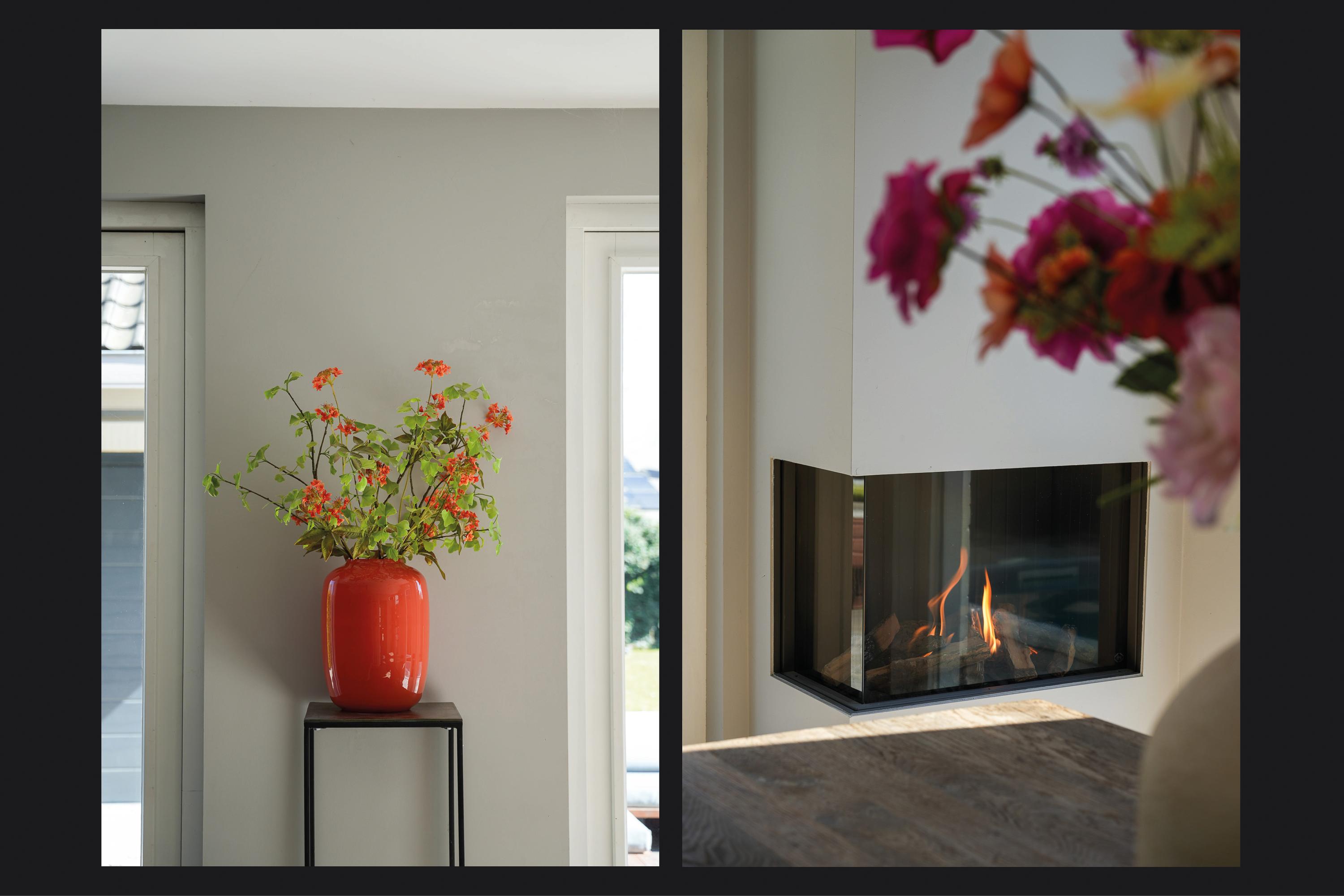 Aan de zijde van de eethoek is het eiland voorzien van een eetbar, nabij de coffee corner. Bij de gashaard is ruimte voor een grote eettafel. Twee paar openslaande deuren zorgen voor veel lichtinval en directe toegang tot het woningbrede terras en de tuin.