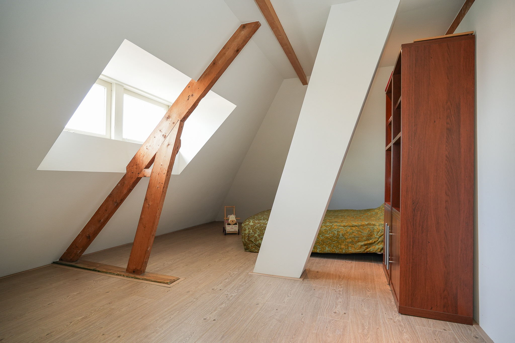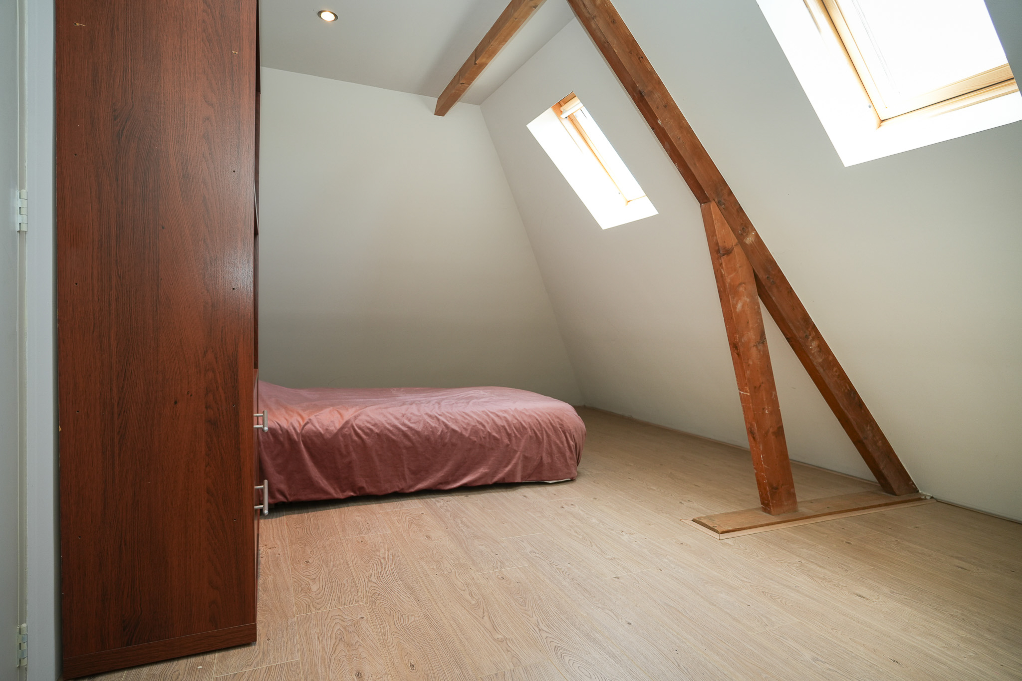 Twee slaapkamers onder de geïsoleerde kap op de tweede verdieping.