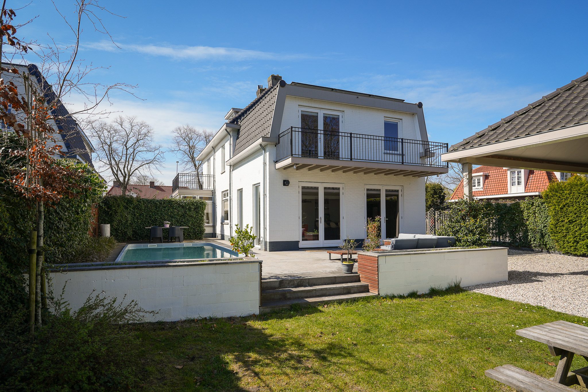 Dichtbij het oude centrum van Zaltbommel staat deze luxe, vooroorlogse vrijstaande villa met zes slaapkamers, twee badkamers en een multifunctioneel bijgebouw, omgeven door een zonovergoten tuin met zwembad.
