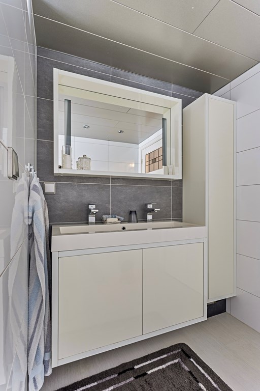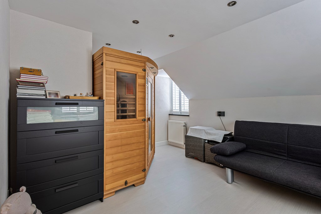Na piętrze znajdują się trzy wszechstronne sypialnie, każda o jasnym wnętrzu, z możliwością adaptacji zarówno na pracę, jak i wypoczynek. Starannie wyposażona łazienka obejmuje wannę z prysznicem oraz podwójną umywalkę. Dodatkowe pomieszczenia, w tym piwnica, poddasze oraz dwa schowki, zwiększają opcje organizacji przestrzeni – idealne na prywatne biuro lub pracownię.
