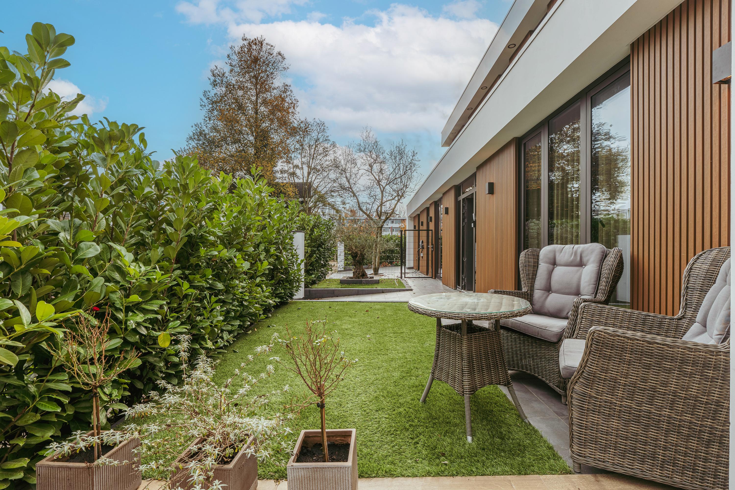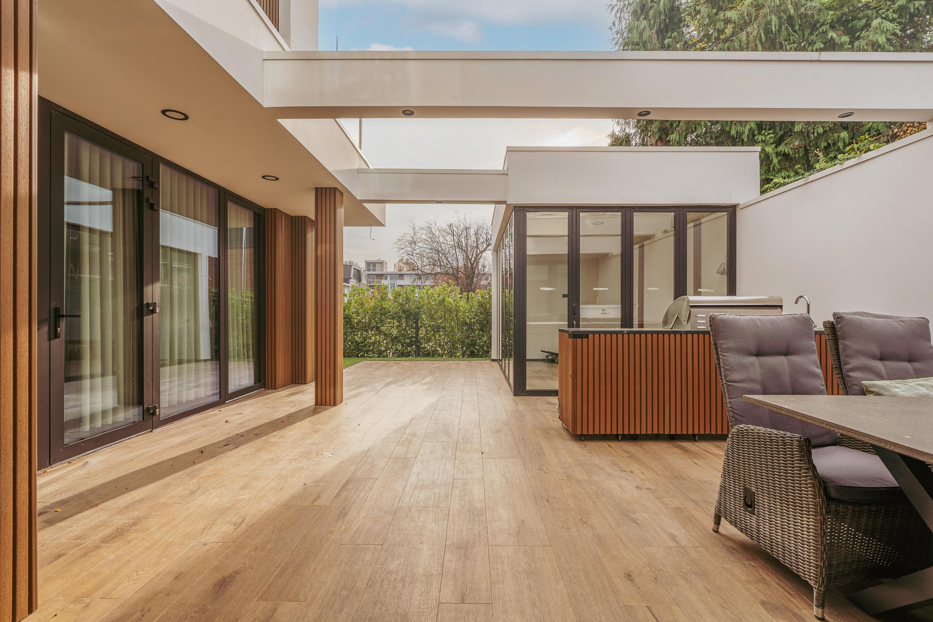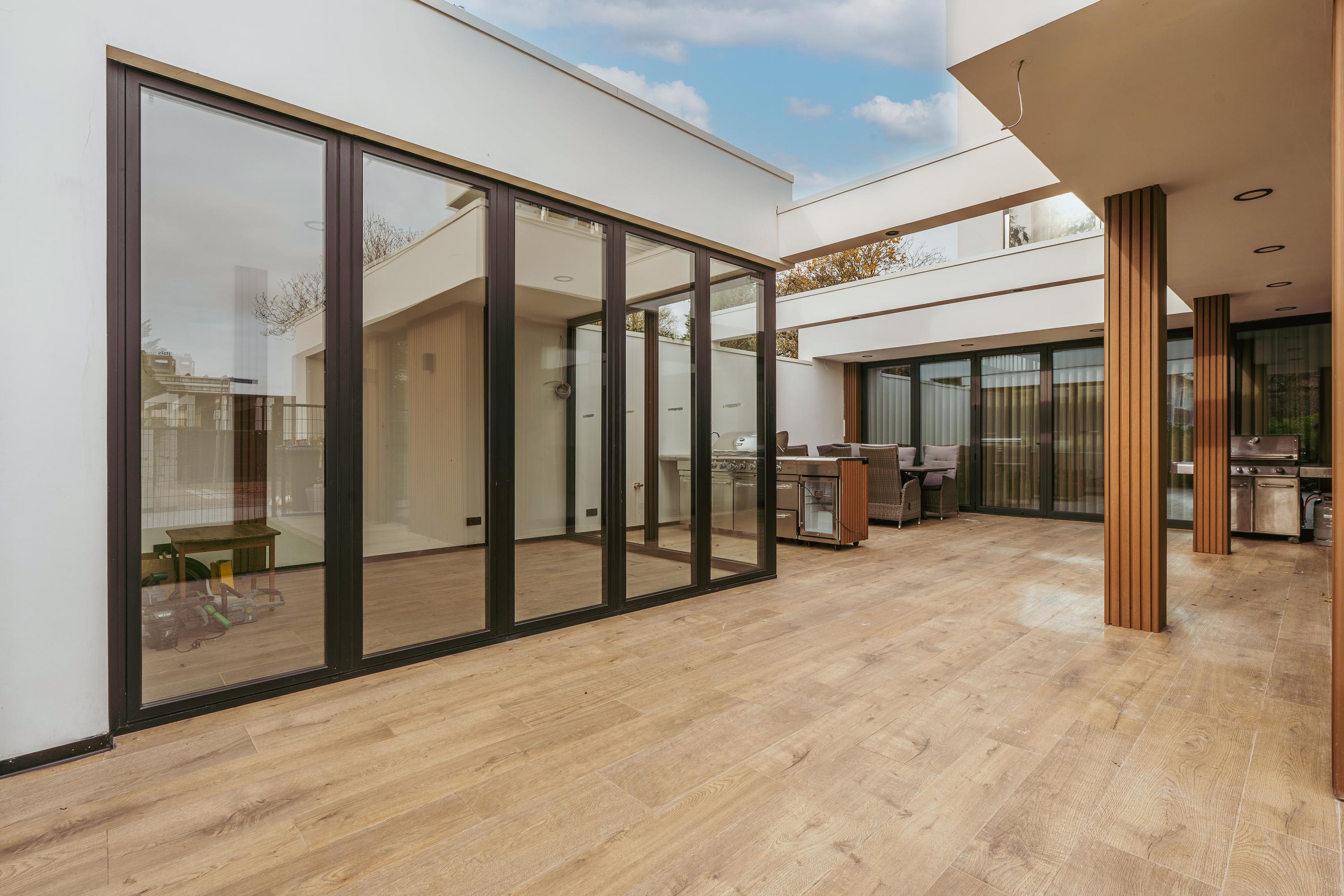 Na parterze znajduje się główna sypialnia z prywatną łazienką, wolnostojącą wanną i widokiem na ogród, do której dołączono apartament gościnny oraz przestronne strefy wypoczynkowe. Na piętrze mieszczą się trzy kolejne sypialnie, każda z wyjściem na balkon, kompletna łazienka oraz dedykowana pralnia. Klasa energetyczna A+, prywatny parking na posesji oraz panele słoneczne podkreślają dbałość o efektywność i wygodę. Bezpośrednia komunikacja z Amsterdamem, dzielnicą Zuidas i lotniskiem Schiphol, a lokalne udogodnienia oraz dostęp do lasu Amsterdamse Bos podnoszą komfort życia na przedmieściach. Dla osób poszukujących luksusowej willi na sprzedaż w Amstelveen, ten adres oferuje wszechstronność i poczucie prywatności.