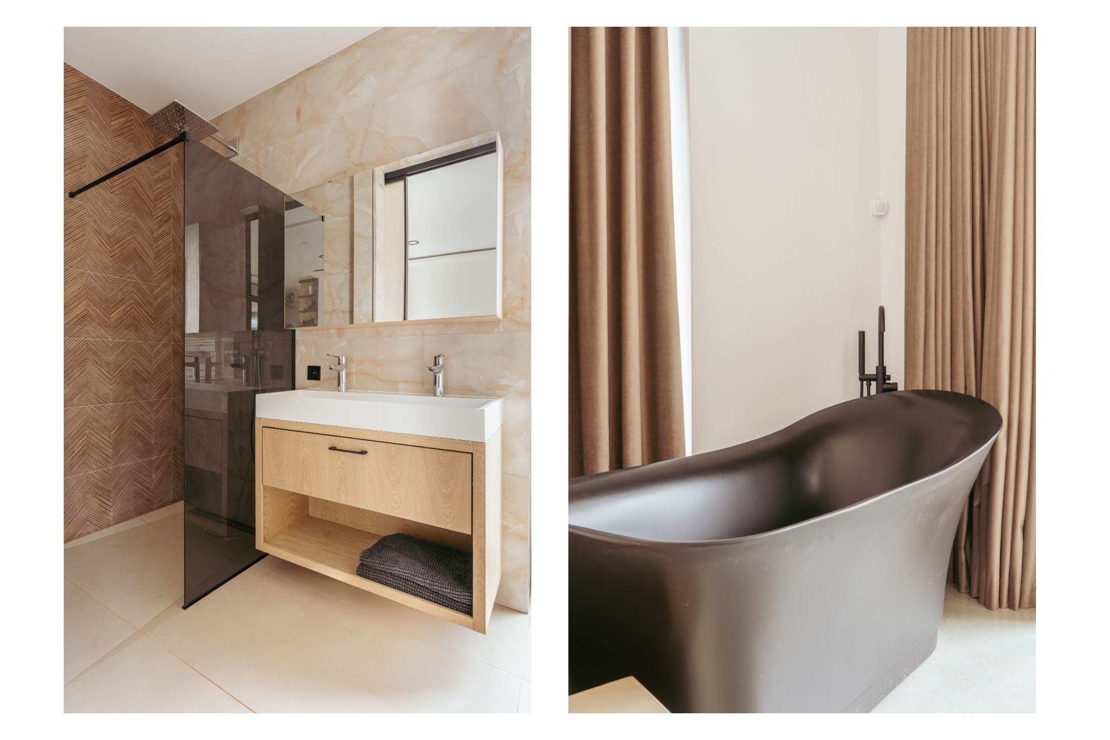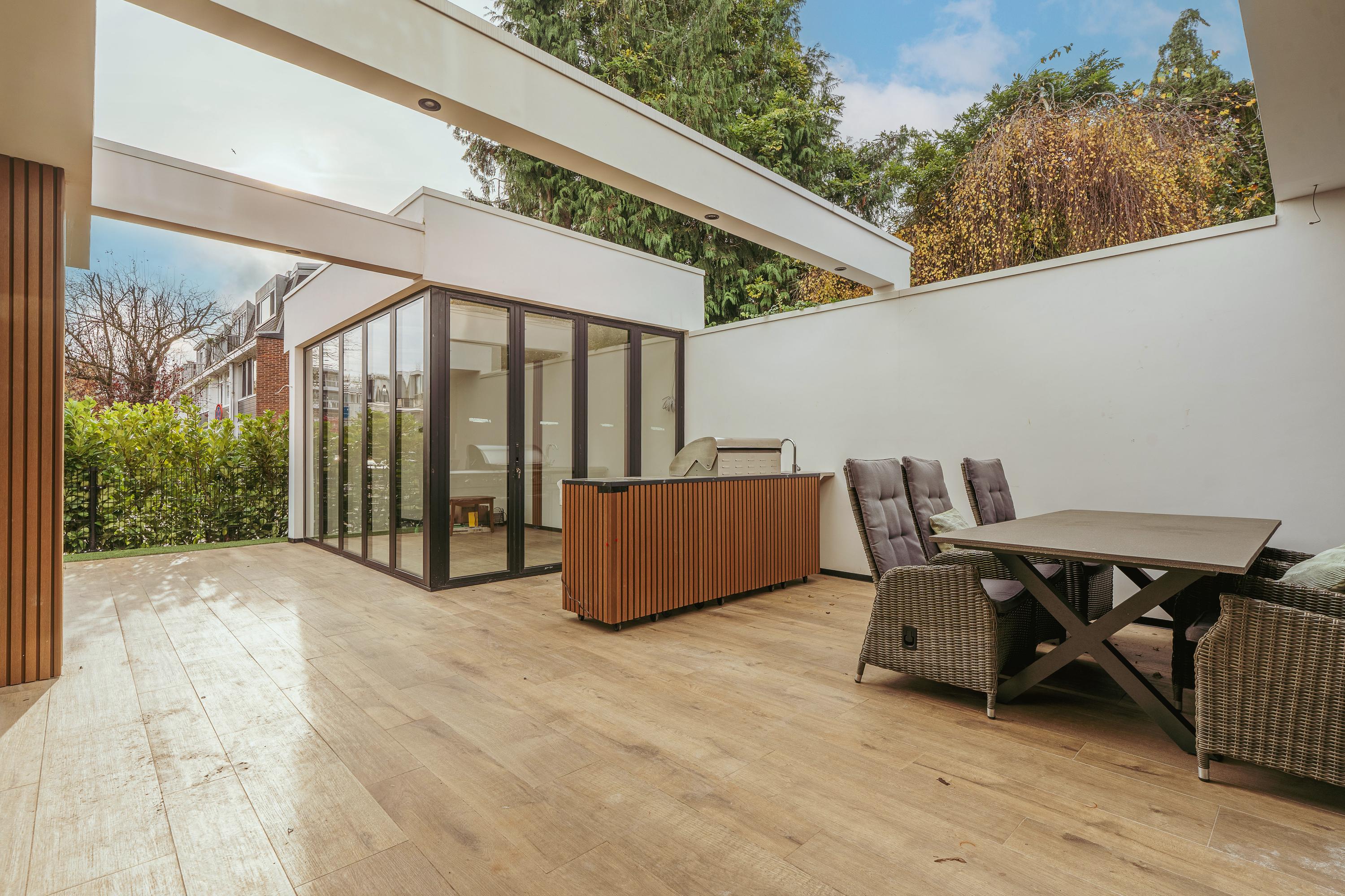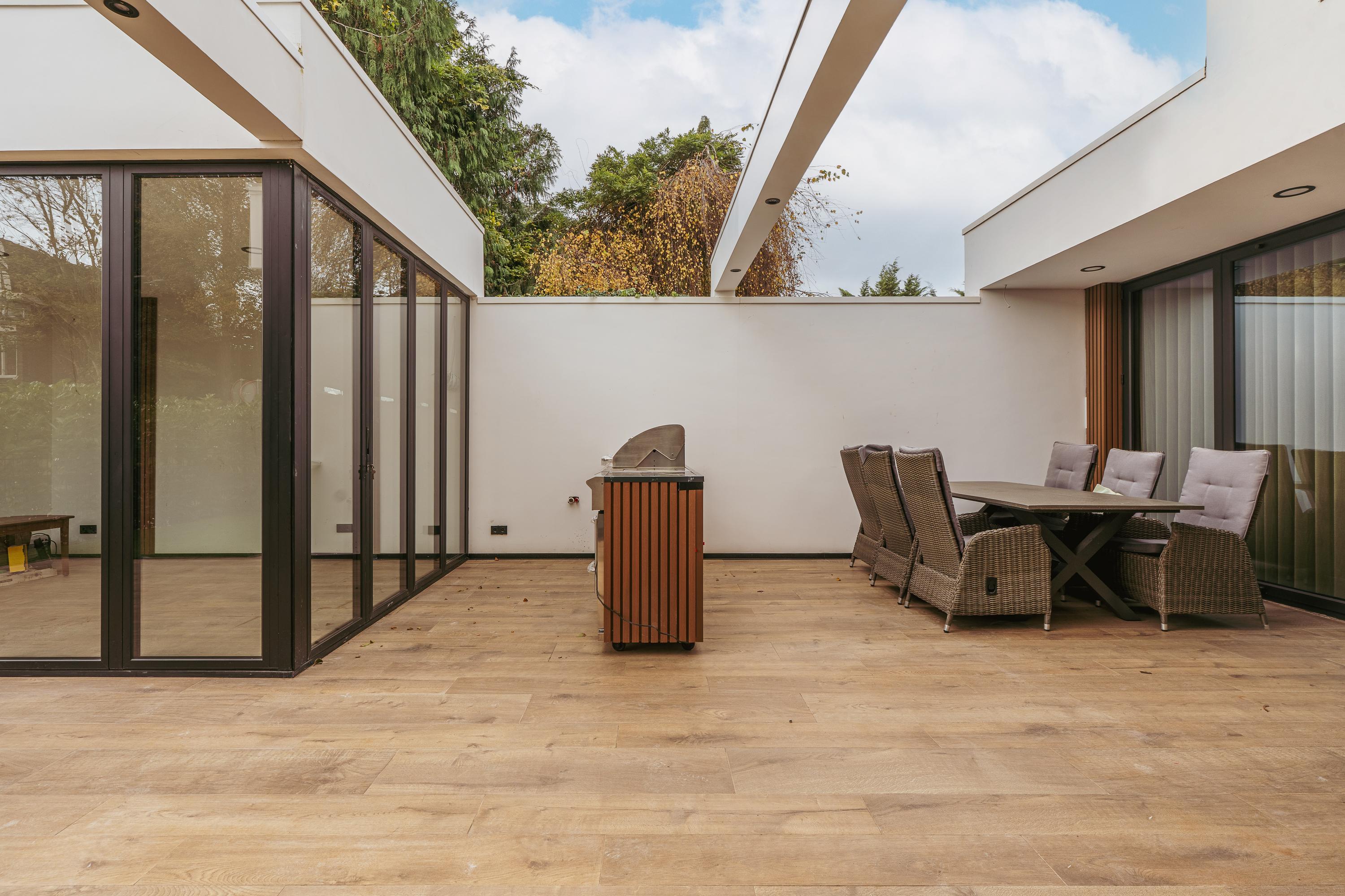 Na parterze znajduje się główna sypialnia z prywatną łazienką, wolnostojącą wanną i widokiem na ogród, do której dołączono apartament gościnny oraz przestronne strefy wypoczynkowe. Na piętrze mieszczą się trzy kolejne sypialnie, każda z wyjściem na balkon, kompletna łazienka oraz dedykowana pralnia. Klasa energetyczna A+, prywatny parking na posesji oraz panele słoneczne podkreślają dbałość o efektywność i wygodę. Bezpośrednia komunikacja z Amsterdamem, dzielnicą Zuidas i lotniskiem Schiphol, a lokalne udogodnienia oraz dostęp do lasu Amsterdamse Bos podnoszą komfort życia na przedmieściach. Dla osób poszukujących luksusowej willi na sprzedaż w Amstelveen, ten adres oferuje wszechstronność i poczucie prywatności.