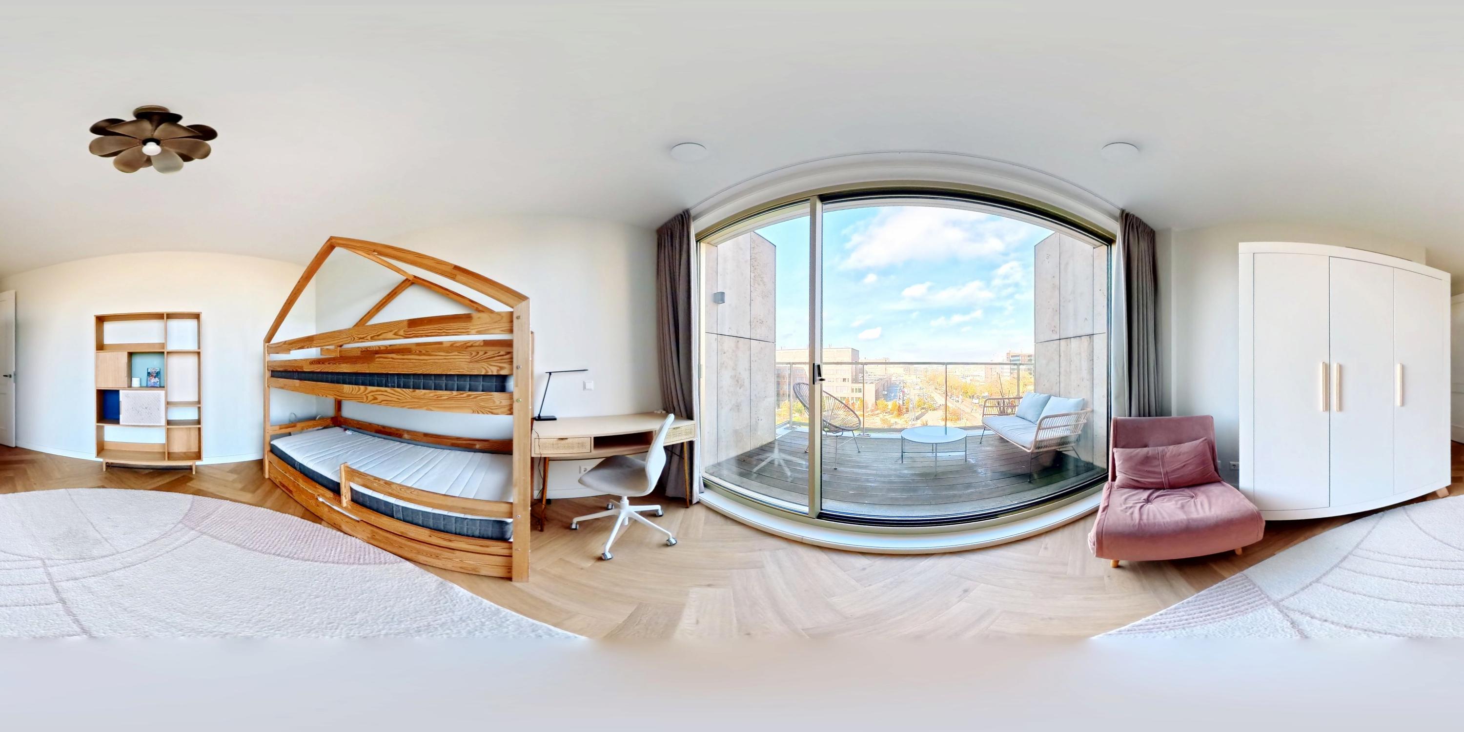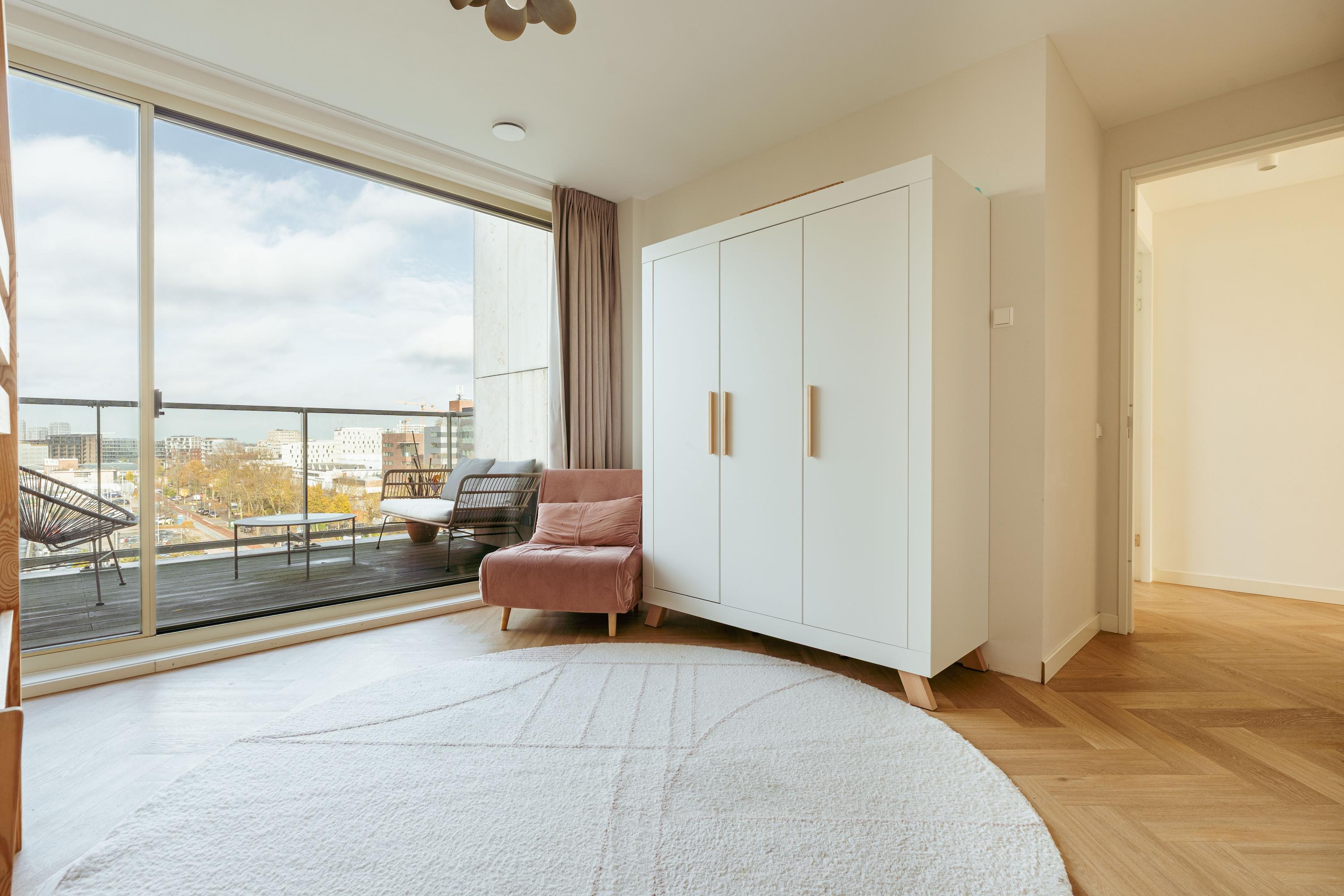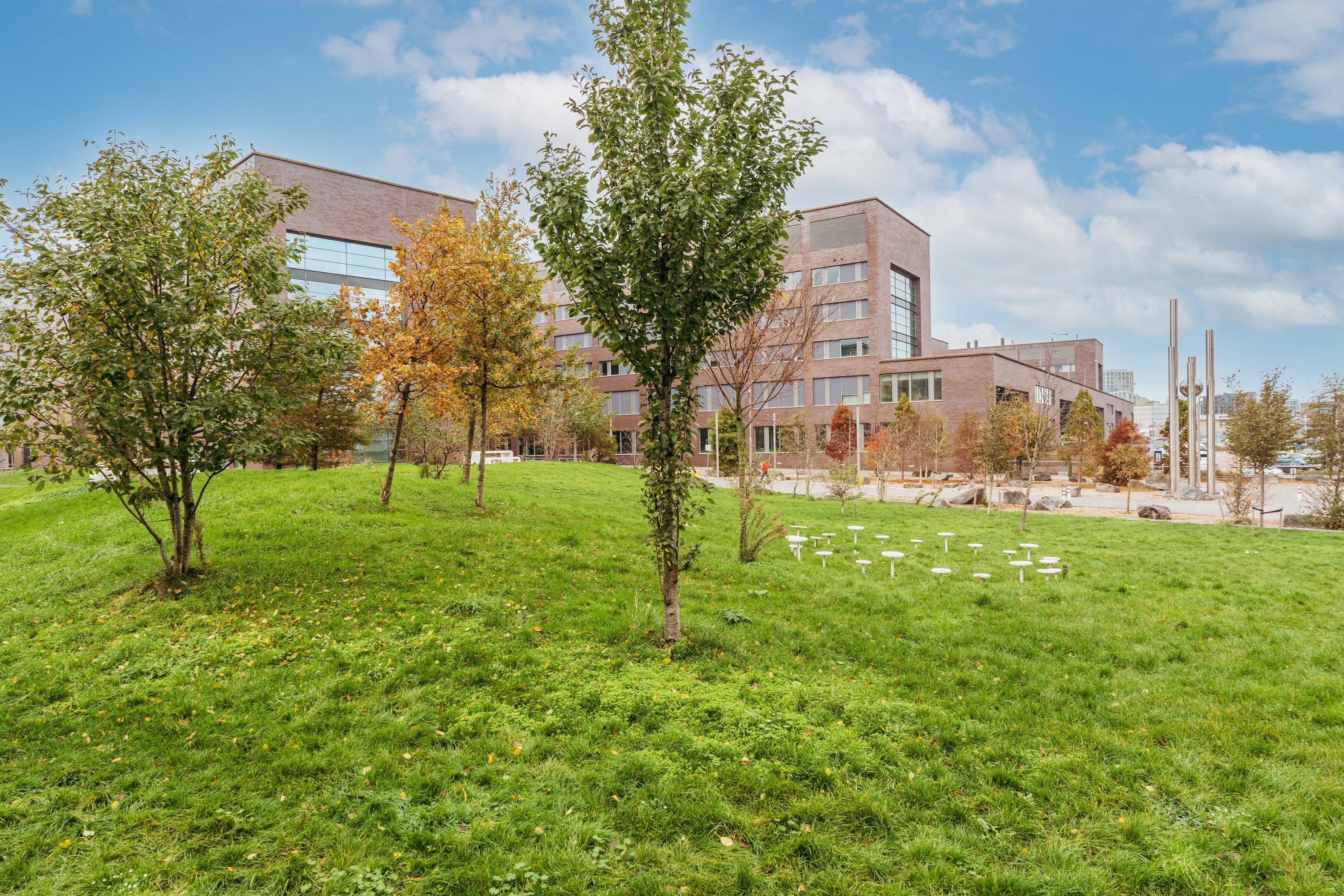 We współczesnej, stopniowanej elewacji The Grid — ukończonej w 2021 roku — znajdują się ciche przestrzenie wspólne, w tym lobby z wysokim sufitem, rowerownia i pomieszczenie na przesyłki. Mieszkańcy korzystają zarówno ze spokoju, jak i bezpośredniego dostępu do tętniącego życiem centrum Amsterdamu, z połączeniami promowymi i metrem dosłownie w zasięgu ręki. W okolicy są sklepy, targi oraz instytucje kultury, takie jak EYE Film Museum i Tolhuistuin, dzięki czemu dzielnica łączy energię miasta z atmosferą wytchnienia. Apartament posiada prywatne miejsce parkingowe oraz bezpieczną komórkę lokatorską o powierzchni 7 m² w piwnicy, przy czym miejsce parkingowe oferowane jest oddzielnie za 50 000 €.
