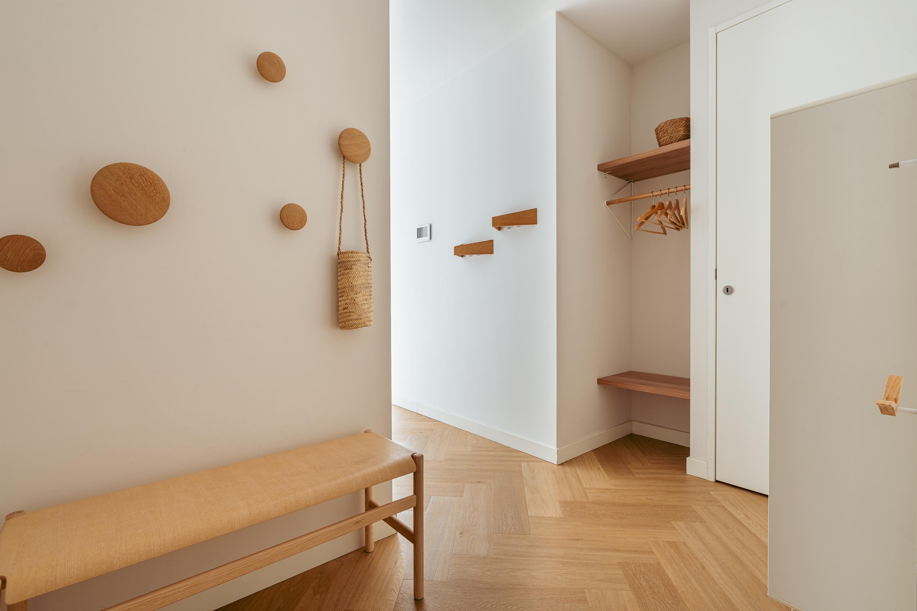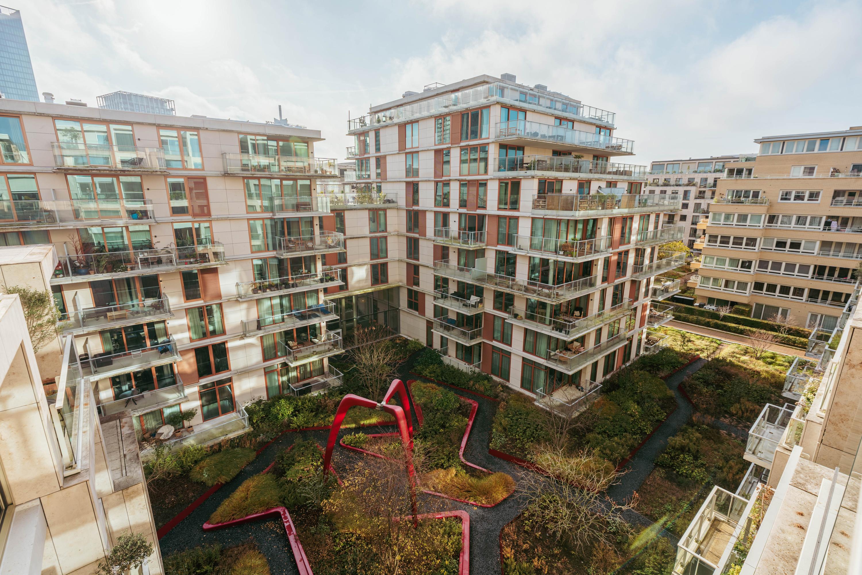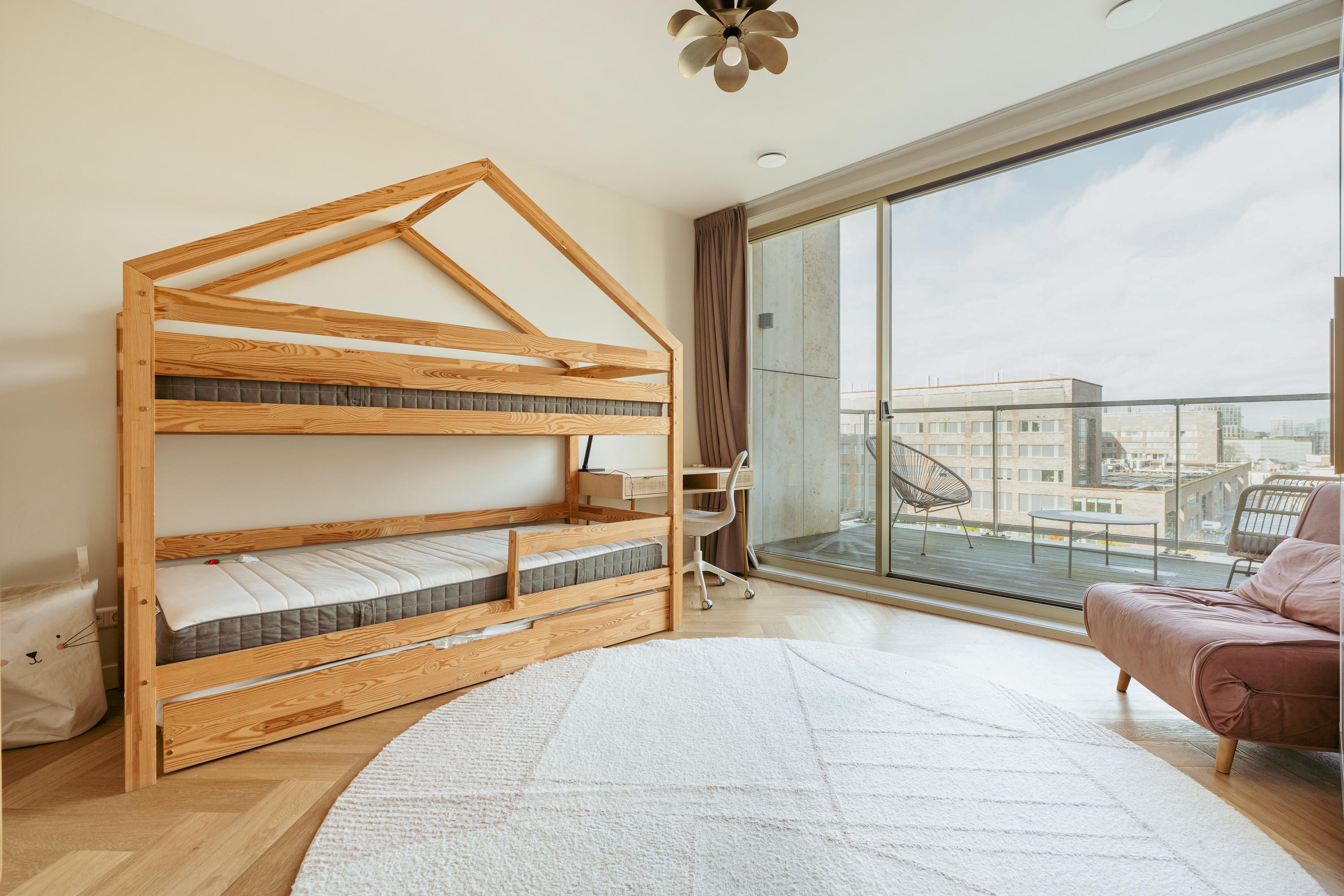 We współczesnej, stopniowanej elewacji The Grid — ukończonej w 2021 roku — znajdują się ciche przestrzenie wspólne, w tym lobby z wysokim sufitem, rowerownia i pomieszczenie na przesyłki. Mieszkańcy korzystają zarówno ze spokoju, jak i bezpośredniego dostępu do tętniącego życiem centrum Amsterdamu, z połączeniami promowymi i metrem dosłownie w zasięgu ręki. W okolicy są sklepy, targi oraz instytucje kultury, takie jak EYE Film Museum i Tolhuistuin, dzięki czemu dzielnica łączy energię miasta z atmosferą wytchnienia. Apartament posiada prywatne miejsce parkingowe oraz bezpieczną komórkę lokatorską o powierzchni 7 m² w piwnicy, przy czym miejsce parkingowe oferowane jest oddzielnie za 50 000 €.