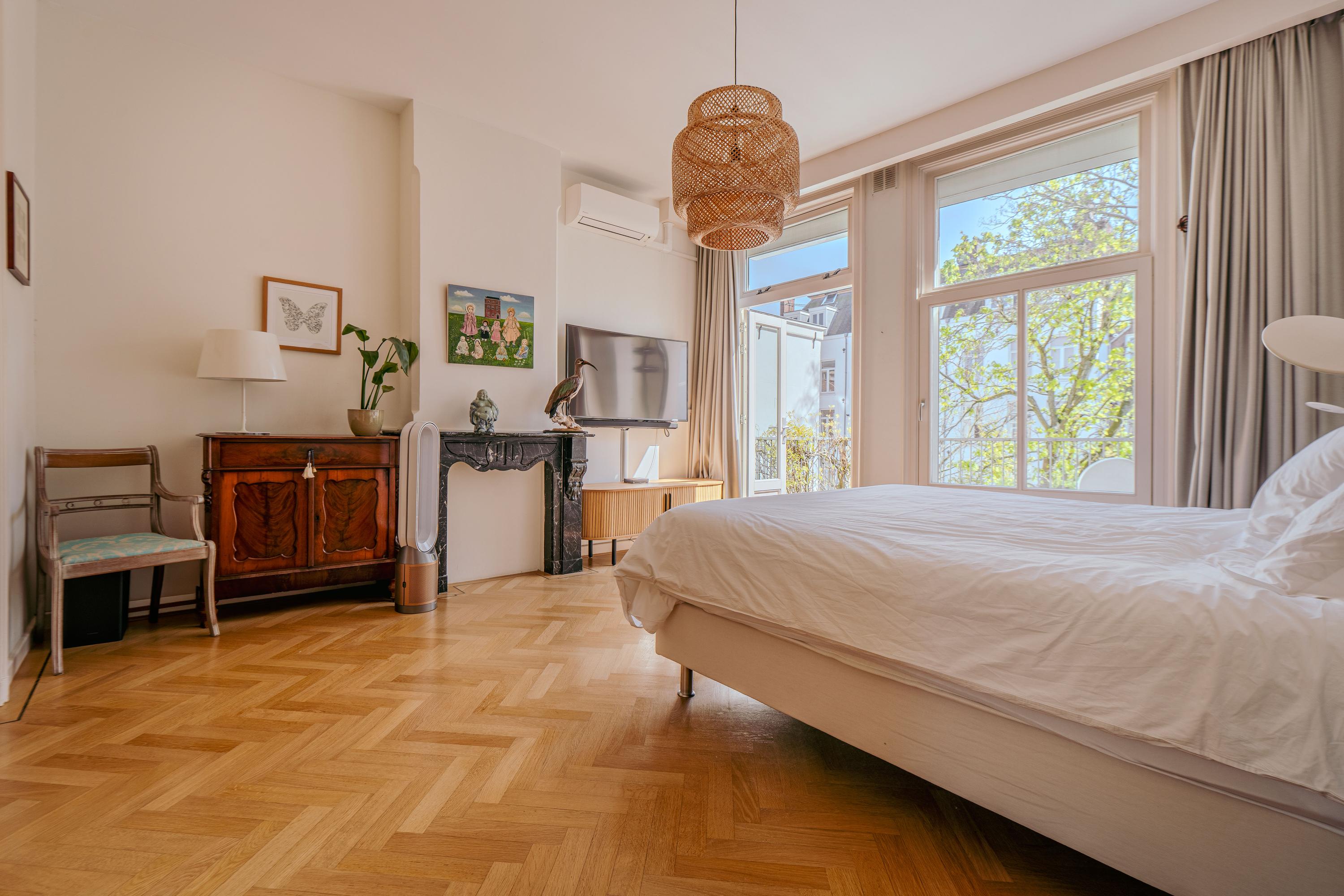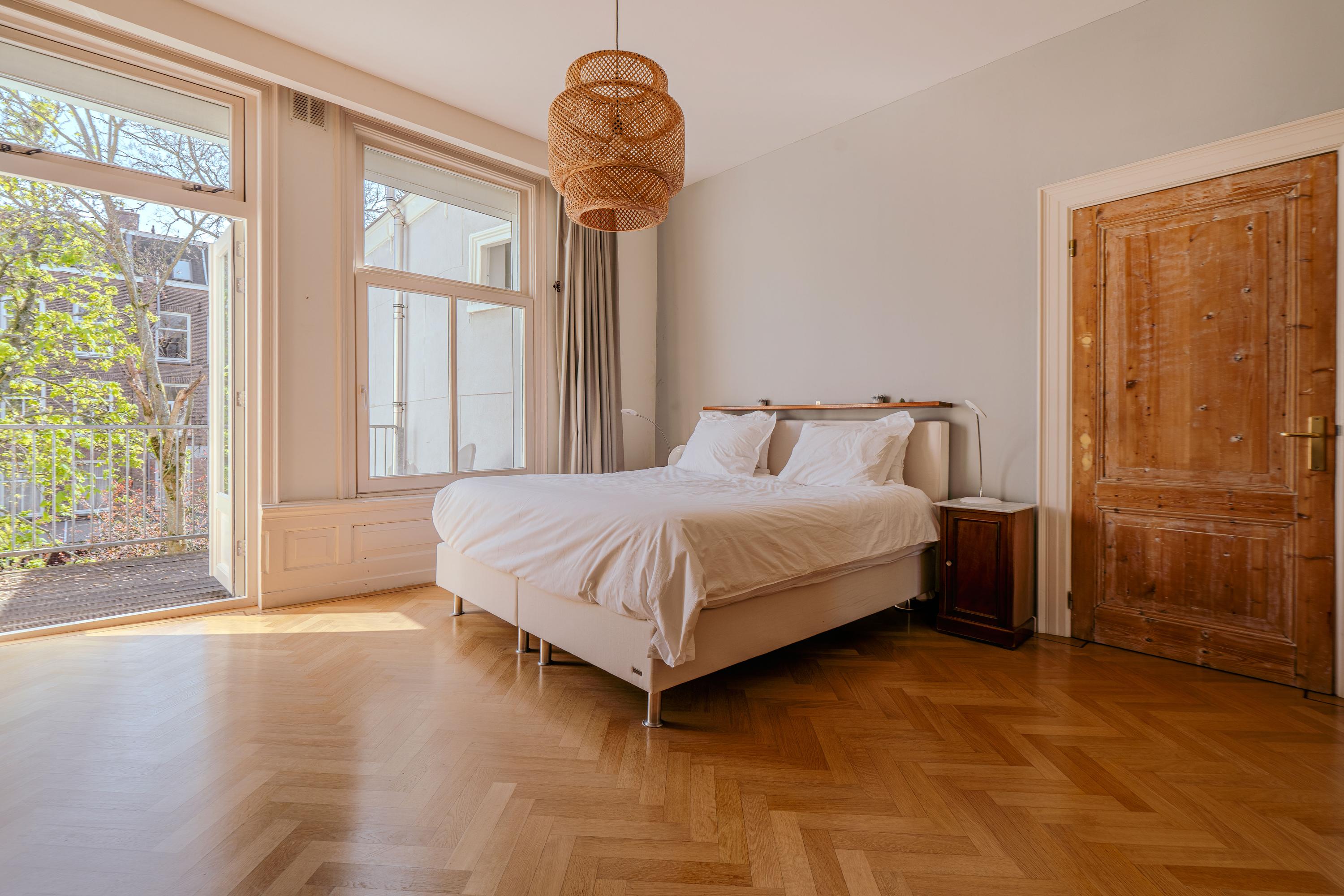Apartment Amsterdam usytuowany jest przy Tweede Jan van der Heijdenstraat, na prestiżowym adresie w dzielnicy De Pijp, gdzie 223 m² powierzchni mieszkalnej rozpościera się na trzech starannie zaplanowanych kondygnacjach. Ta nieruchomość własnościowa łączy klasyczną przestronność z nowoczesną elegancją, oferując cztery sypialnie, domowe biuro oraz dedykowaną garderobę typu walk-in. Wysokości sufitów i duże okna zapewniają poczucie przestrzeni i światła, a wybrane balkony i przestronny 23-metrowy taras na dachu otwierają widok na miasto i rzekę Amstel, pozwalając cieszyć się słońcem aż do wieczora.