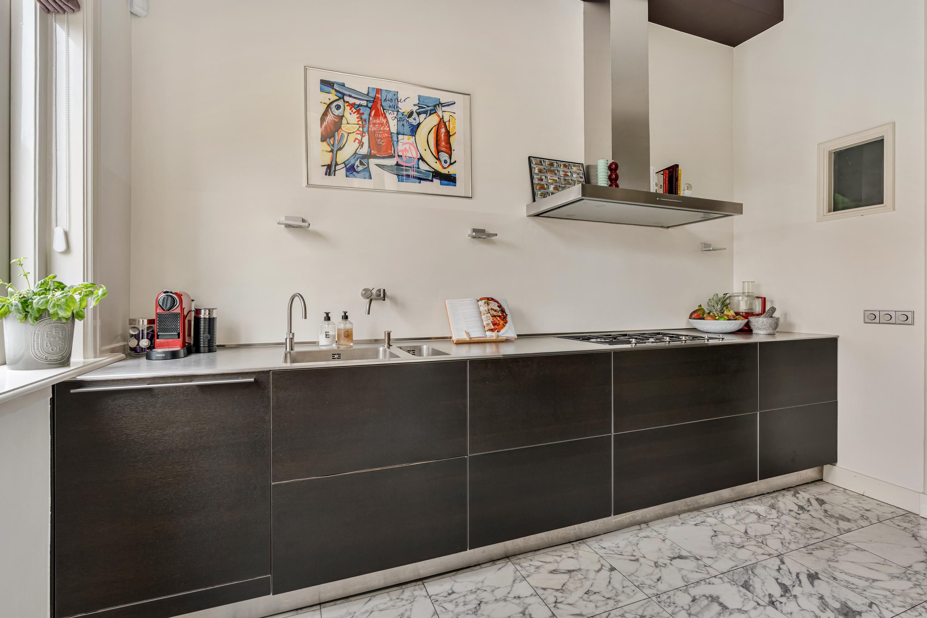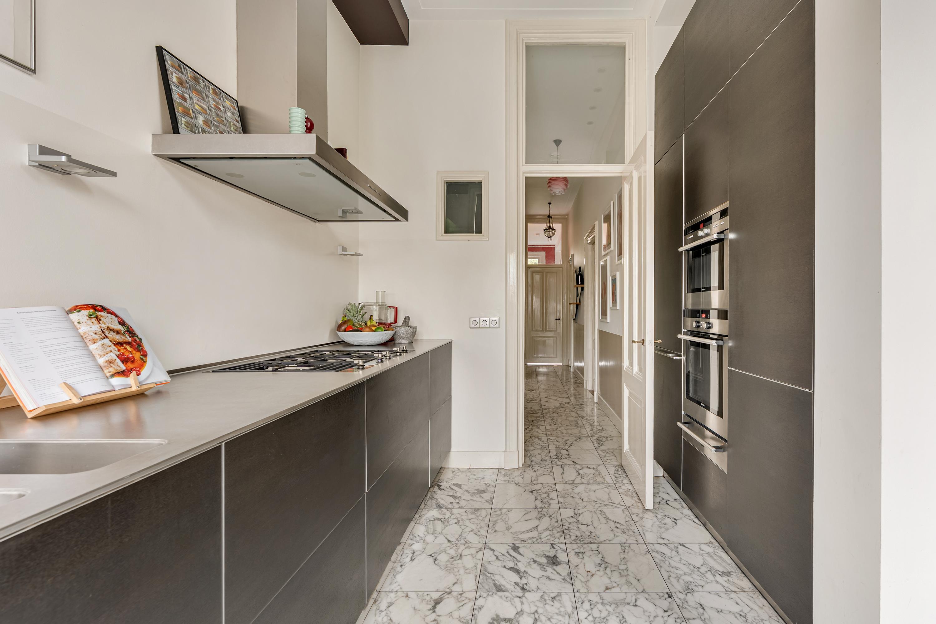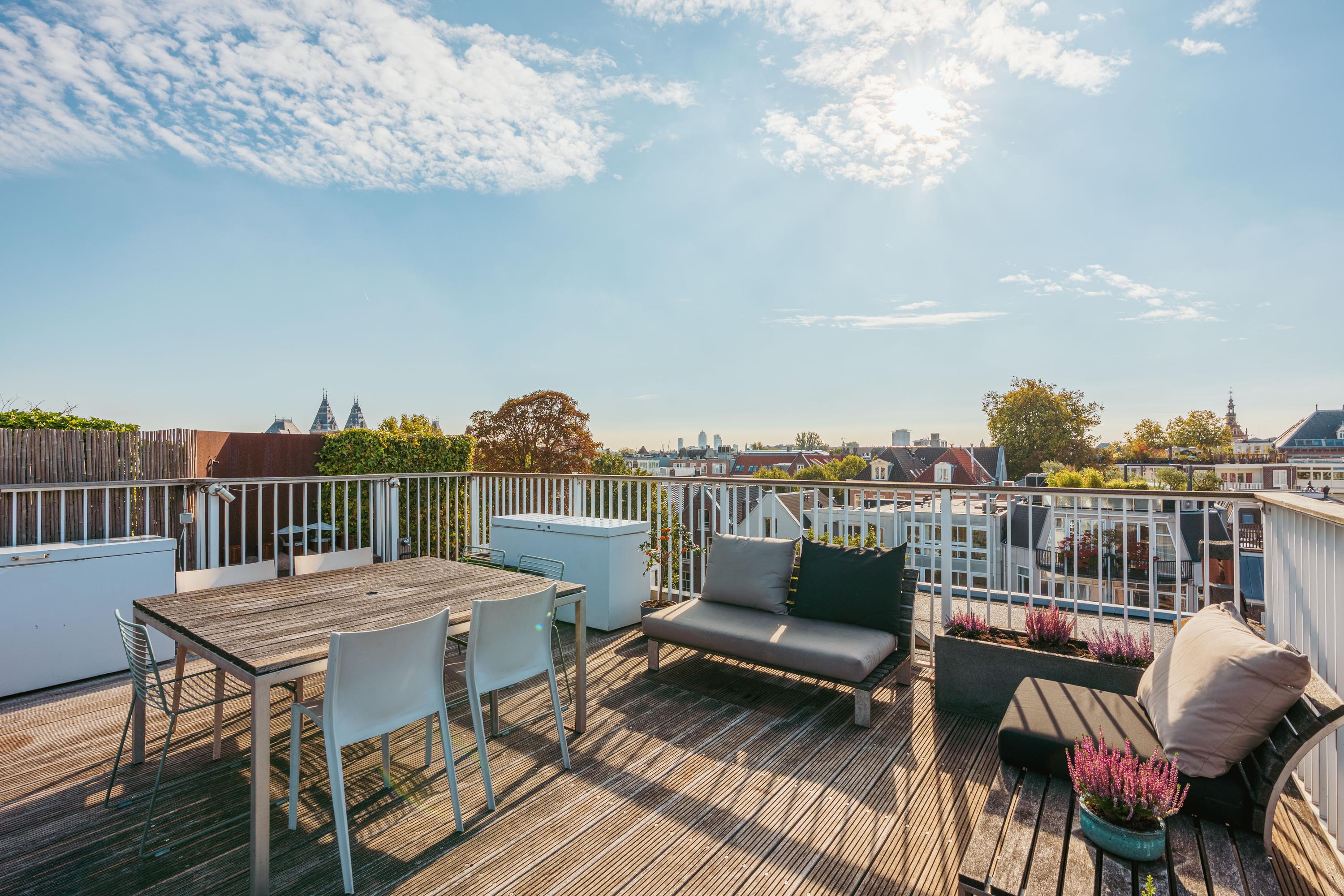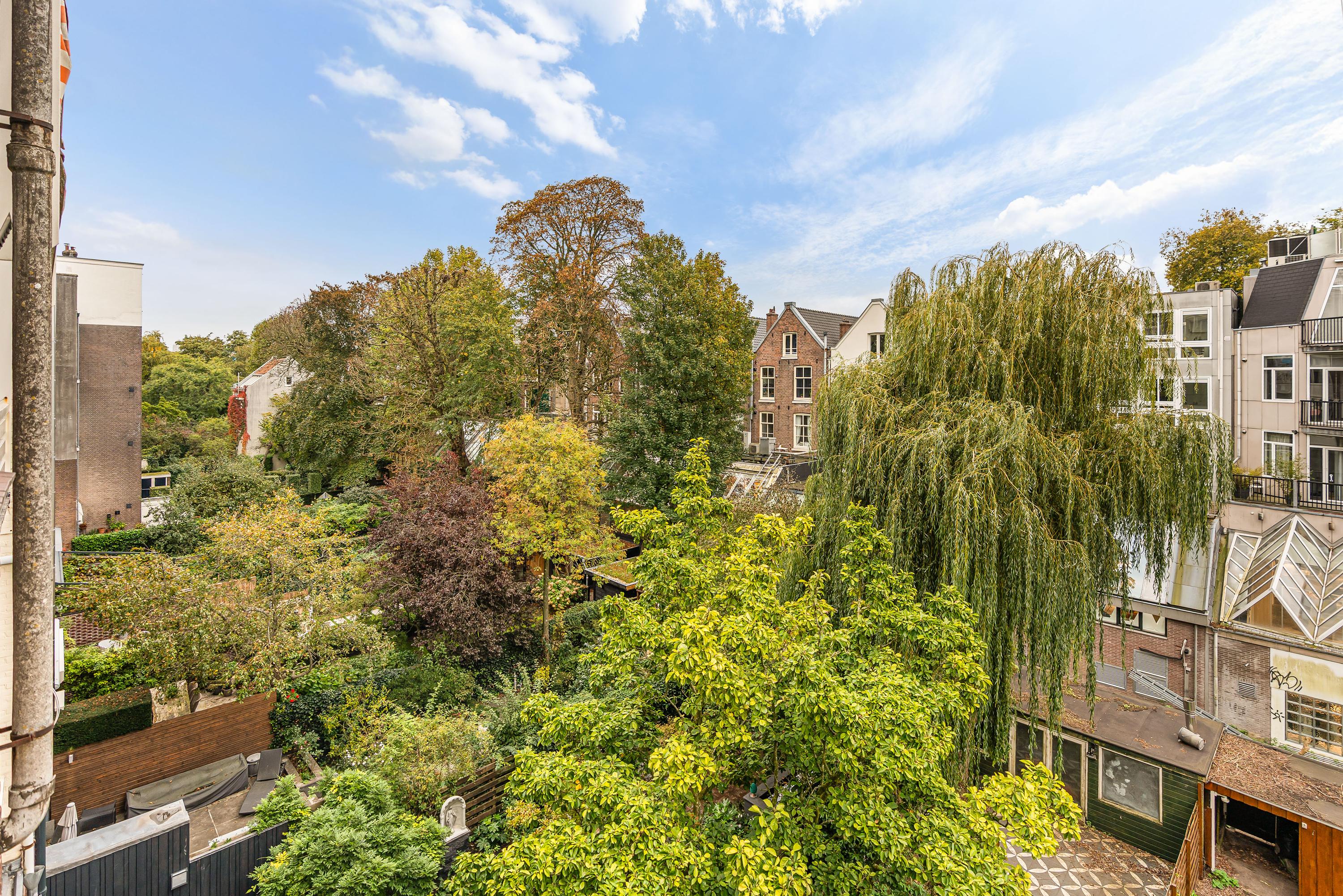 Nieruchomość jest wyposażona w podwójnie przeszklone okna, szkło HR, centralne ogrzewanie, kominki gazowe, panele słoneczne o powierzchni 8,4 m² oraz podgrzewacz wody na energię słoneczną, co przekłada się na klasę energetyczną C. Zarządzanie jest profesjonalne, z wieloletnim planowaniem oraz miesięczną opłatą w wysokości 443,61 €. Lokal własnościowy, bez prawa użytkowania wieczystego. Położony w Oud-Zuid, tuż przy głównych muzeach, obiektach kulturalnych i butikowych sklepach; łatwy dostęp do A10 i komunikacji miejskiej prowadzi bezpośrednio do Dworca Centralnego i lotniska Schiphol. Parking możliwy jest na podstawie zezwolenia w strefach Zuid 8.1, Zuid 1 i Zuid 2.