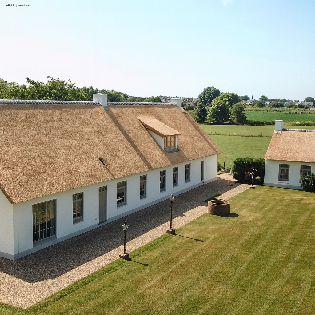 Rozkład parteru koncentruje się wokół przestronnego 32,5 m² holu, który prowadzi do salonu o powierzchni 46 m², wypełnionego światłem dzięki dużym oknom; komfort zapewniają ogrzewanie podłogowe oraz zamknięty kominek opalany drewnem. Kuchnia (15,5 m²) posiada równoległe blaty robocze oraz wbudowane urządzenia AGD. Sześć przestronnych sypialni i kilka łazienek zapewniają elastyczność i prywatność na obu kondygnacjach, a pojemny strych zwiększa funkcjonalność.