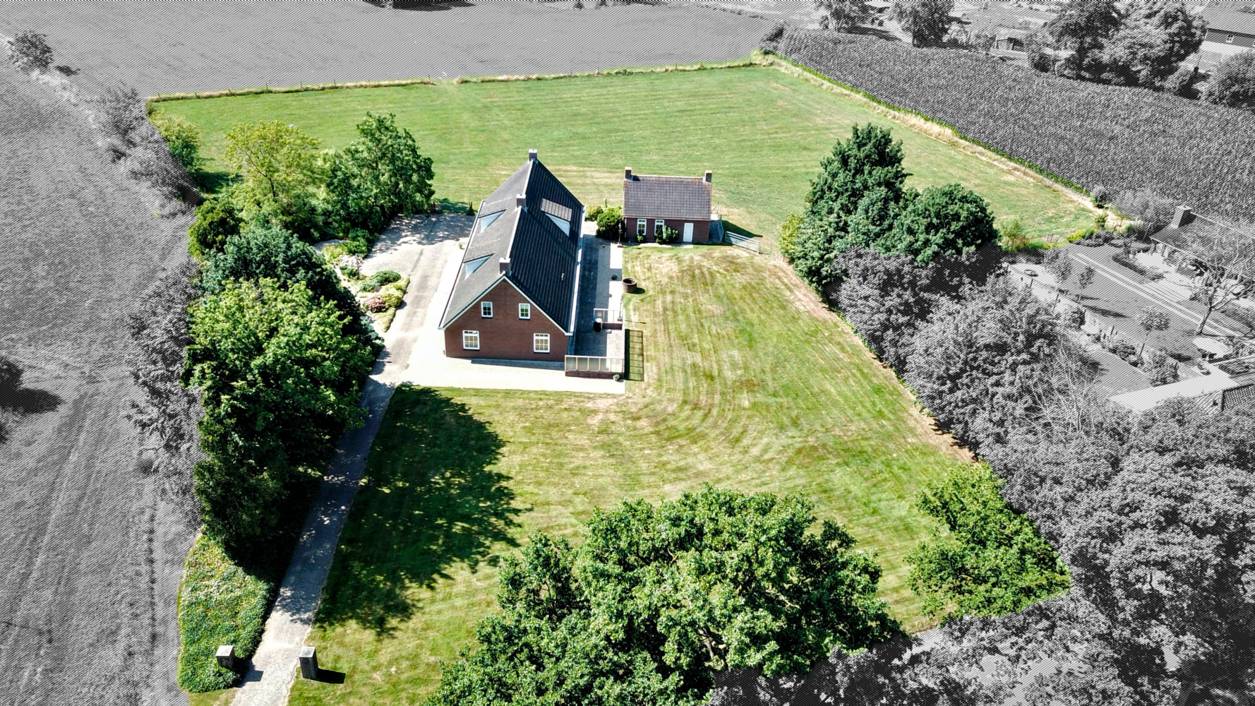 Posiadłość Berkel-Enschot zajmuje zaciszną działkę o powierzchni 10 000 m² przy ul. Heuvelstraat 8, oferując rzadko spotykaną prywatność i spokój, zaledwie kilka kroków od centrum miejscowości. Nieruchomość wybudowana w 1992 roku obejmuje około 325 m² przestrzeni mieszkalnej, uzupełnionej o w pełni ocieplony budynek gospodarczy o powierzchni około 50 m². Wyjątkowy charakter tej wolnostojącej posesji, z betonową konstrukcją i pełną izolacją, tworzy ciche tło do życia rodzinnego lub indywidualnego wypoczynku.