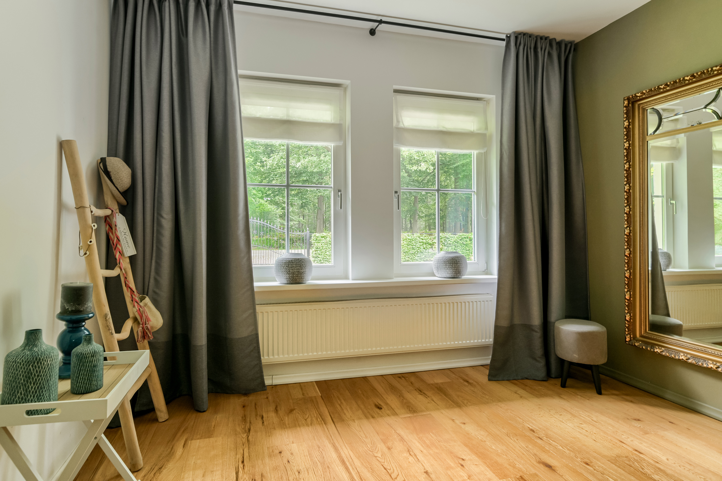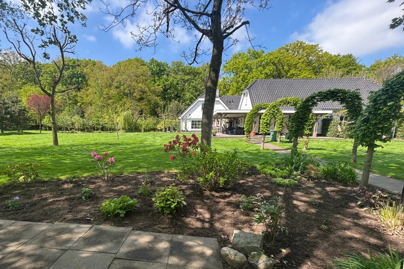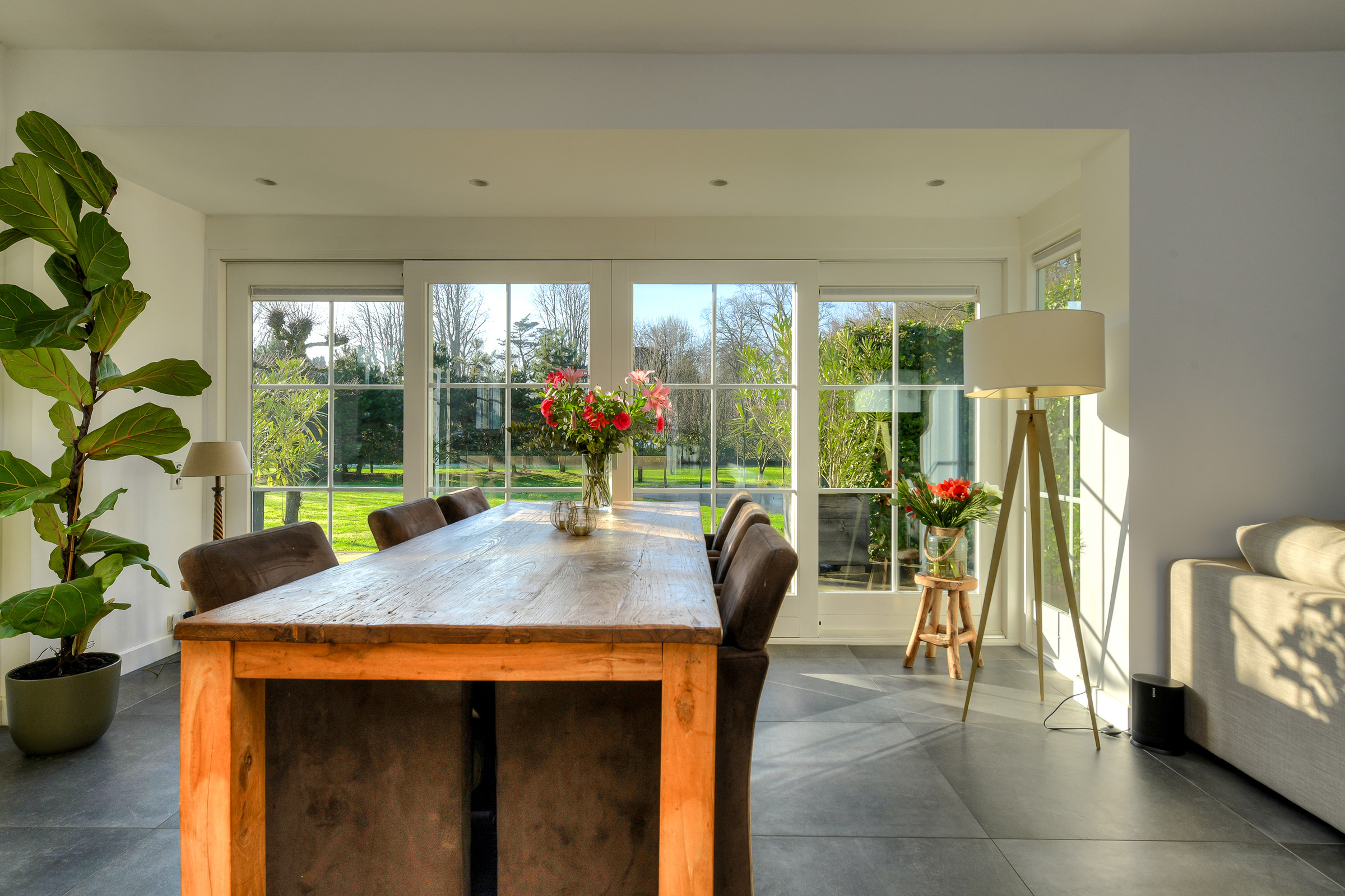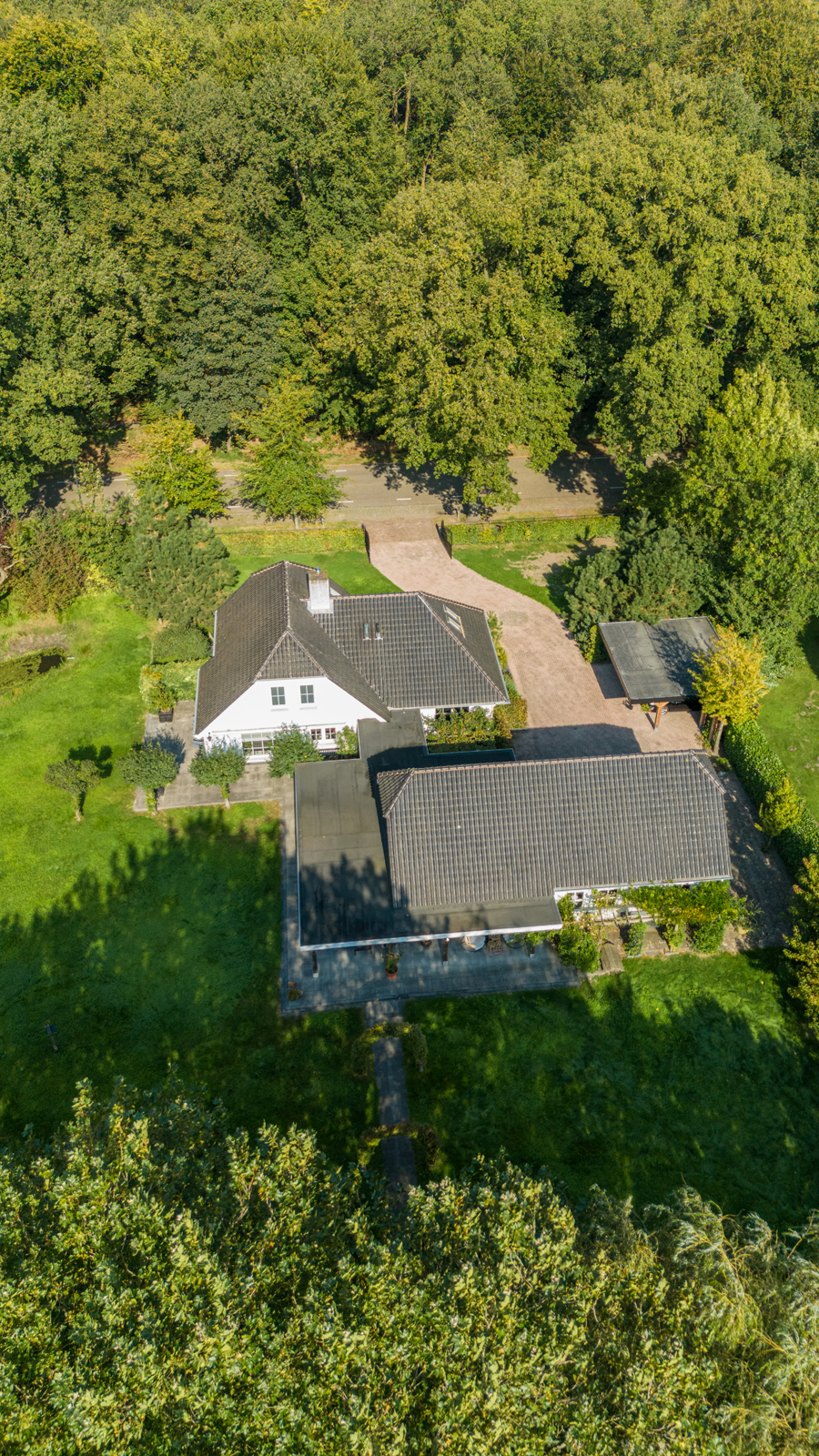 Villa Breda położona jest bezpośrednio przy lesie Liesbos, na działce o powierzchni 9 523 m², zapewniając pełną prywatność oraz płynne połączenie z naturalnym otoczeniem. Ta willa, starannie utrzymana i w pełni zaizolowana, oferuje 182 m² powierzchni mieszkalnej zaprojektowanej z myślą zarówno o komforcie, jak i eleganckiej funkcjonalności. Parter umożliwia życie na jednym poziomie dzięki apartamentowi z sypialnią i łazienką, a także ogrzewanym podłogowo płytkom antracytowym i gładkim tynkom, podkreślającym stonowaną wygodę. Duże okna oraz liczne drzwi przesuwne pozwalają delektować się widokiem na okoliczne ogrody i las, a podłogi z jasnego dębu i paneli na piętrze dodają przestrzeni lekkości.