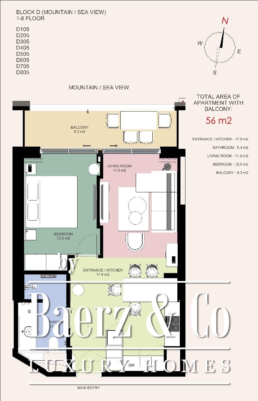 Apartment Budva to harmonijne połączenie komfortu, wygody i dyskretnego stylu. Nieruchomość zajmuje 48 m² i oferuje przemyślany układ obejmujący przedpokój, otwartą strefę dzienną z kuchnią i jadalnią, jedną sypialnię, łazienkę oraz prywatny taras powiększający przestrzeń mieszkalną o część zewnętrzną. Mieszkanie zostanie przekazane w pełni umeblowane, gotowe do natychmiastowego zamieszkania lub bezproblemowego wynajmu.