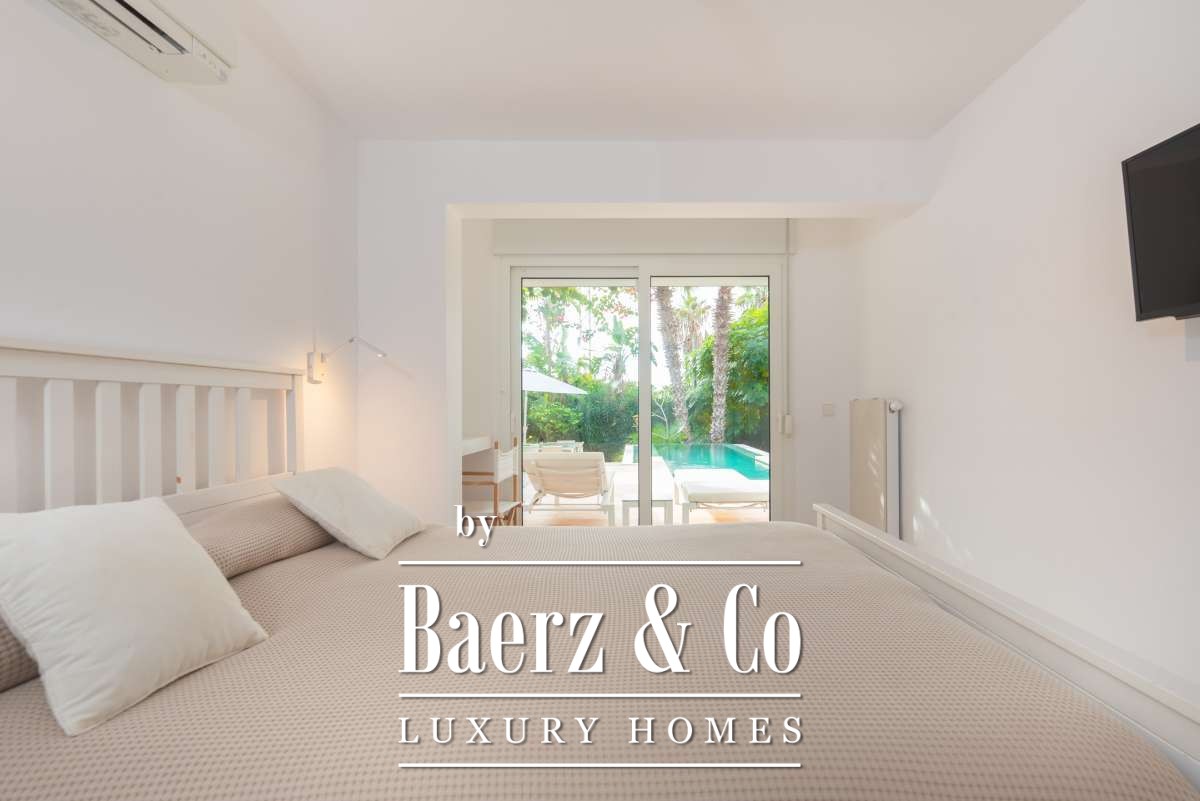 Liczne tarasy, zewnętrzna kuchnia oraz zagospodarowany ogród otaczają prywatny, południowy basen z panoramicznym widokiem na morze i miasto, zachęcając do relaksu przez cały dzień. Wspólny parking, system alarmowy, klimatyzacja i rolety antywłamaniowe zapewniają poczucie komfortu oraz bezpieczeństwa. Ta luksusowa willa na sprzedaż na Ibizie jest kwintesencją śródziemnomorskiego stylu życia, oferując spokój, światło i dostęp do wszystkiego, co stanowi o wyjątkowym uroku Ibizy.