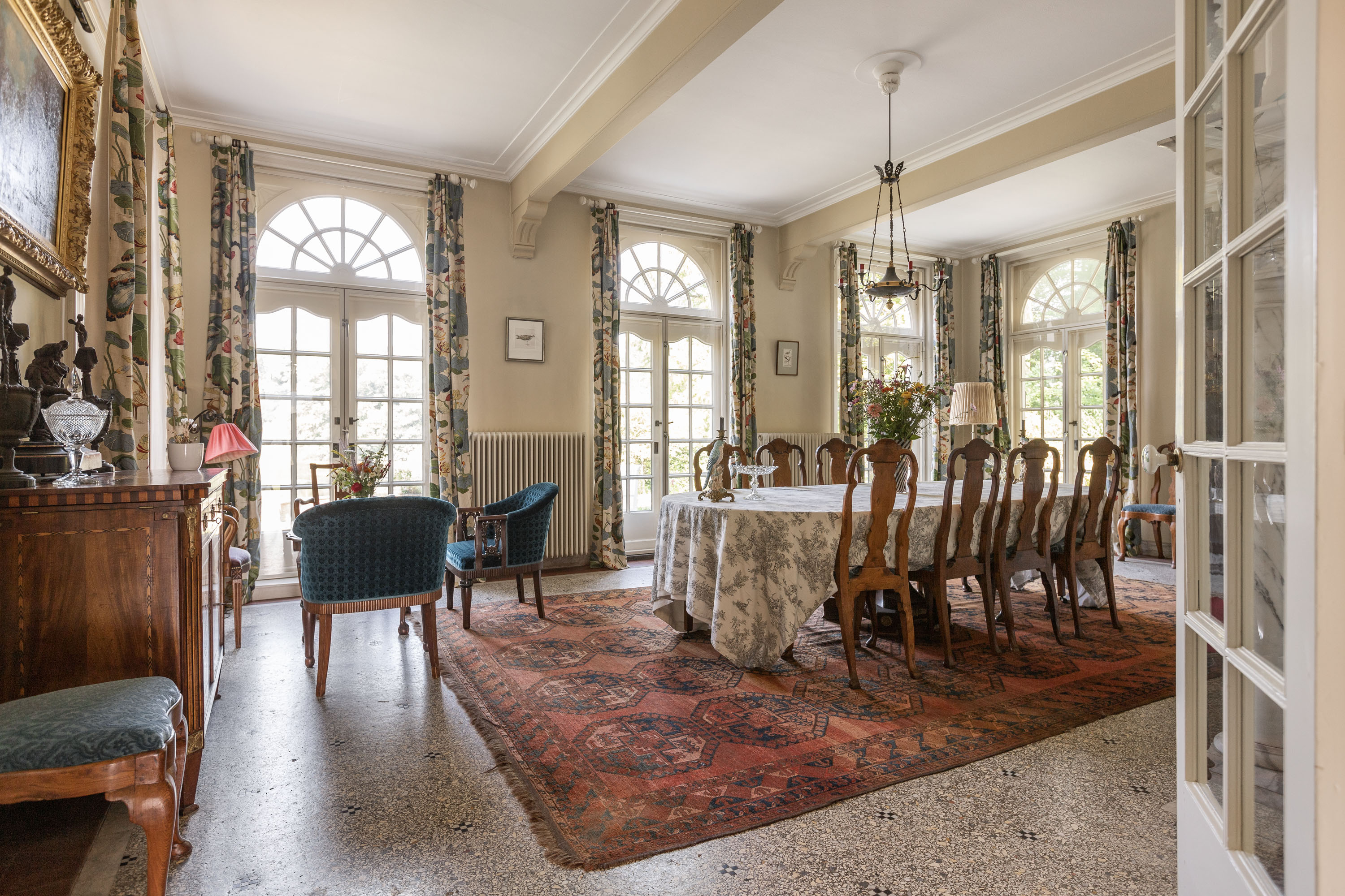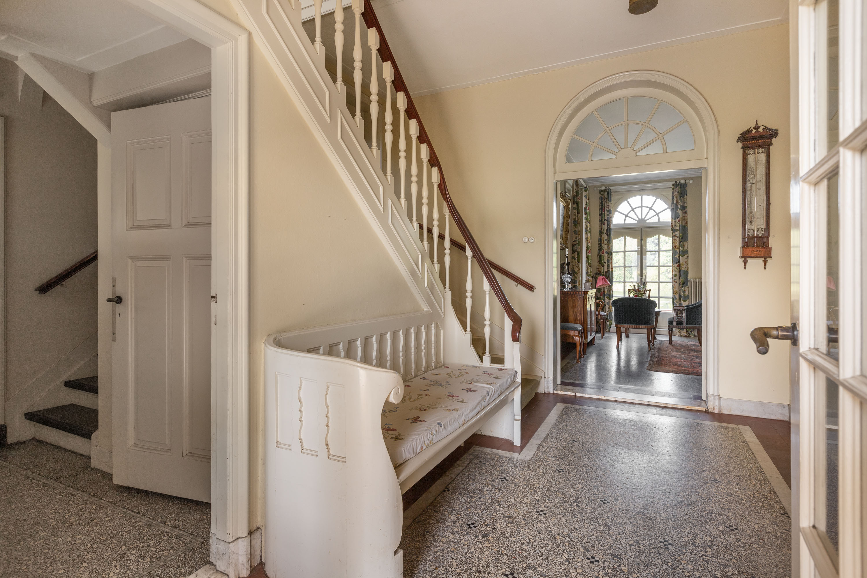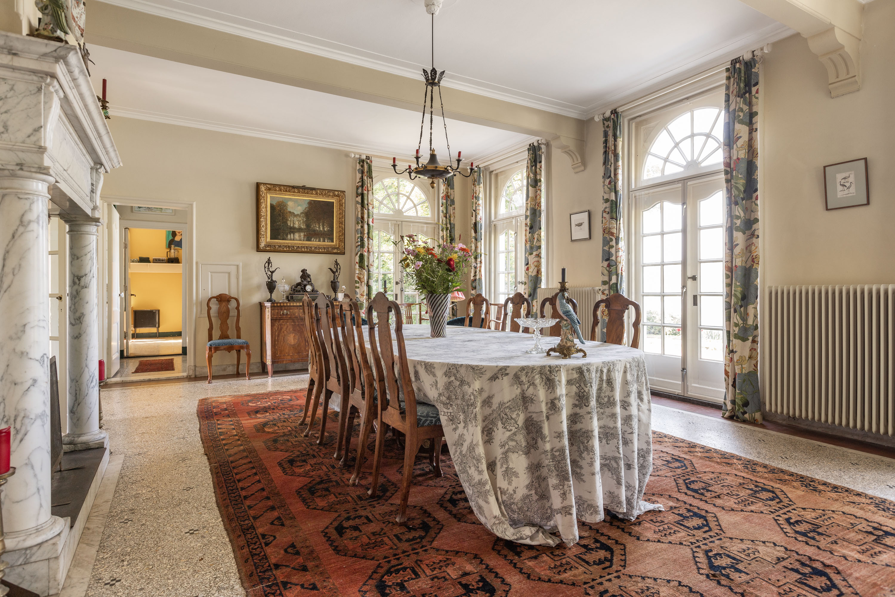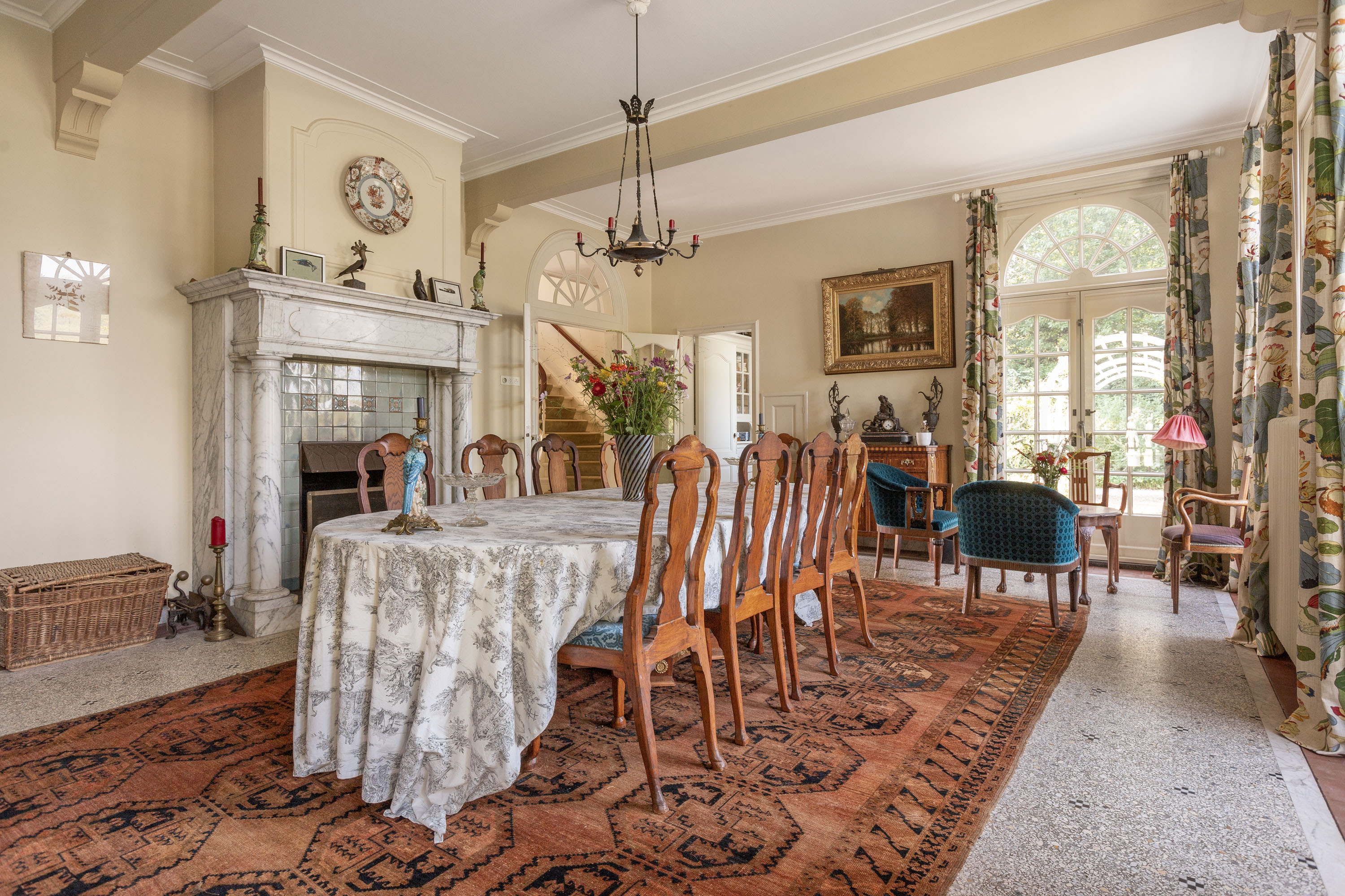Architektura willi podkreśla jej historię, zachowując oryginalne podłogi terazzo, parkiet, zabudowy stolarskie oraz liczne witraże. Siedem sypialni i dwie łazienki rozmieszczono tak, by zapewnić równowagę między życiem rodzinnym a prywatnością. Starannie odrestaurowane detale uzupełniają dyskretne udoskonalenia, takie jak nowoczesny piec na pellet i pompa ciepła, dodatkowa stolarka okienna, ściany warstwowe oraz całkowicie zaizolowany dach.