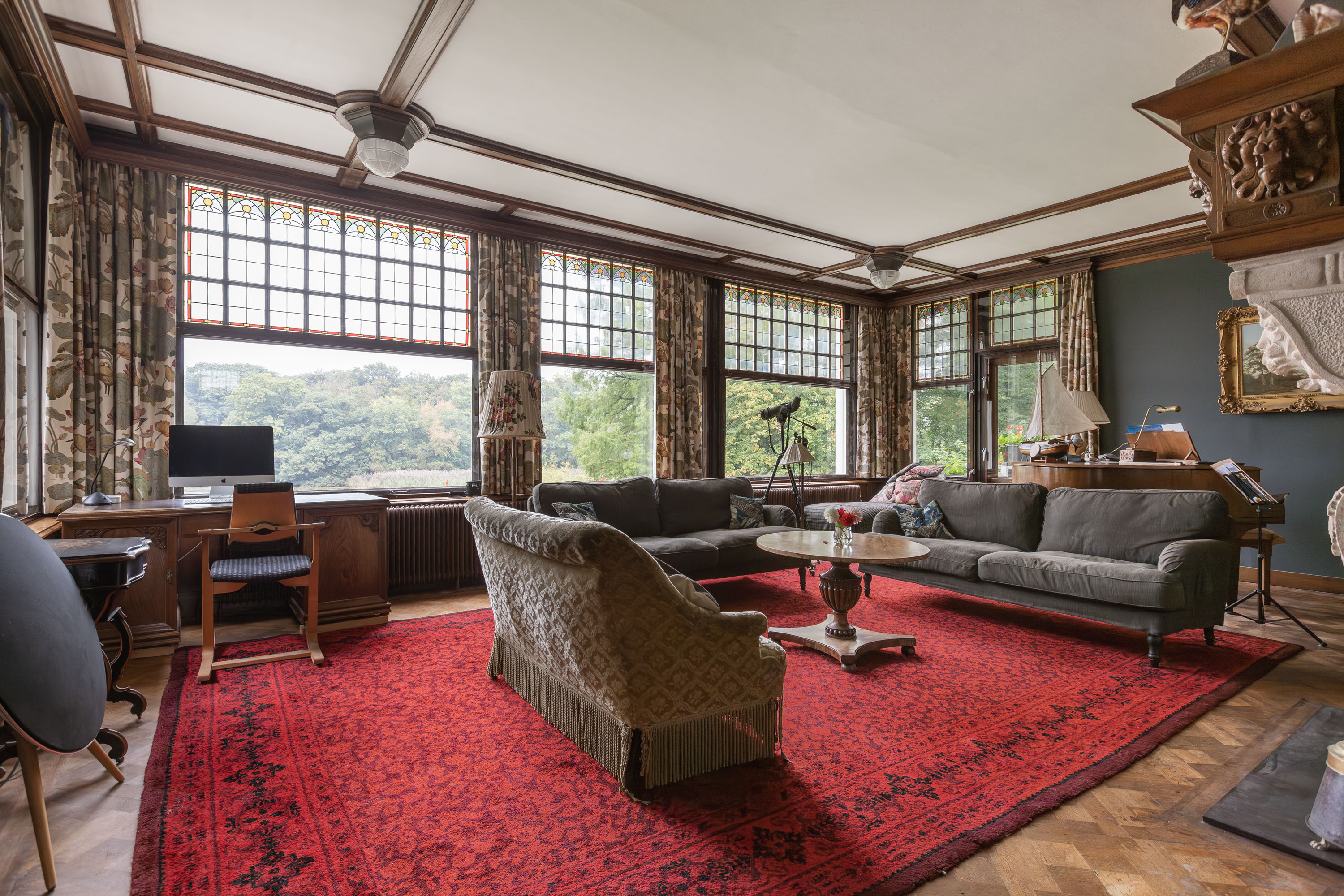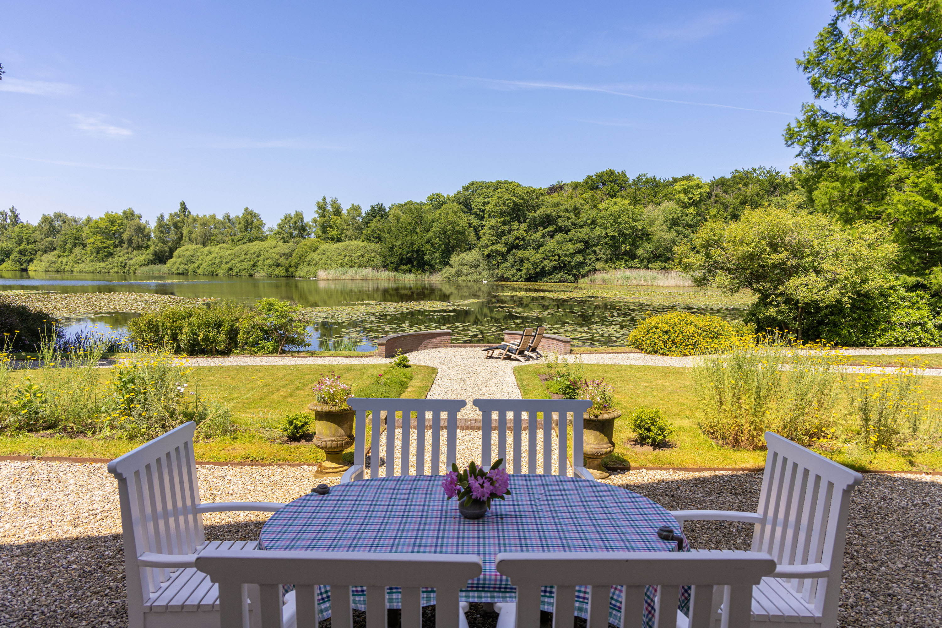 Natura otacza posiadłość: panoramiczne widoki na wodę i bezpośredni dostęp do ścieżek wijących się przez chronione lasy. Odrestaurowane ogrody zgodne z projektem L.A. Springera eksponują widoki na oba jeziora, dają dojrzałe sady i starannie zaprojektowane rabaty. Różnorodność ptaków, dzikie kwiaty oraz ponadstuletni park kształtują wyjątkowy rytm życia. Udogodnienia, teatry, transport i sklepy są w zasięgu kilku minut, a atmosfera miejsca pozostaje wyrafinowana i spokojna.