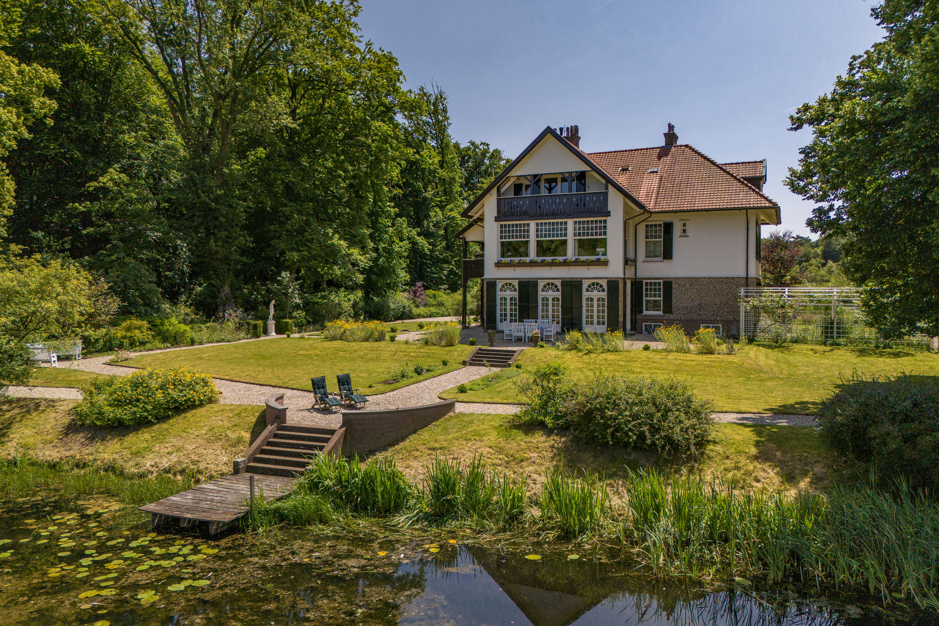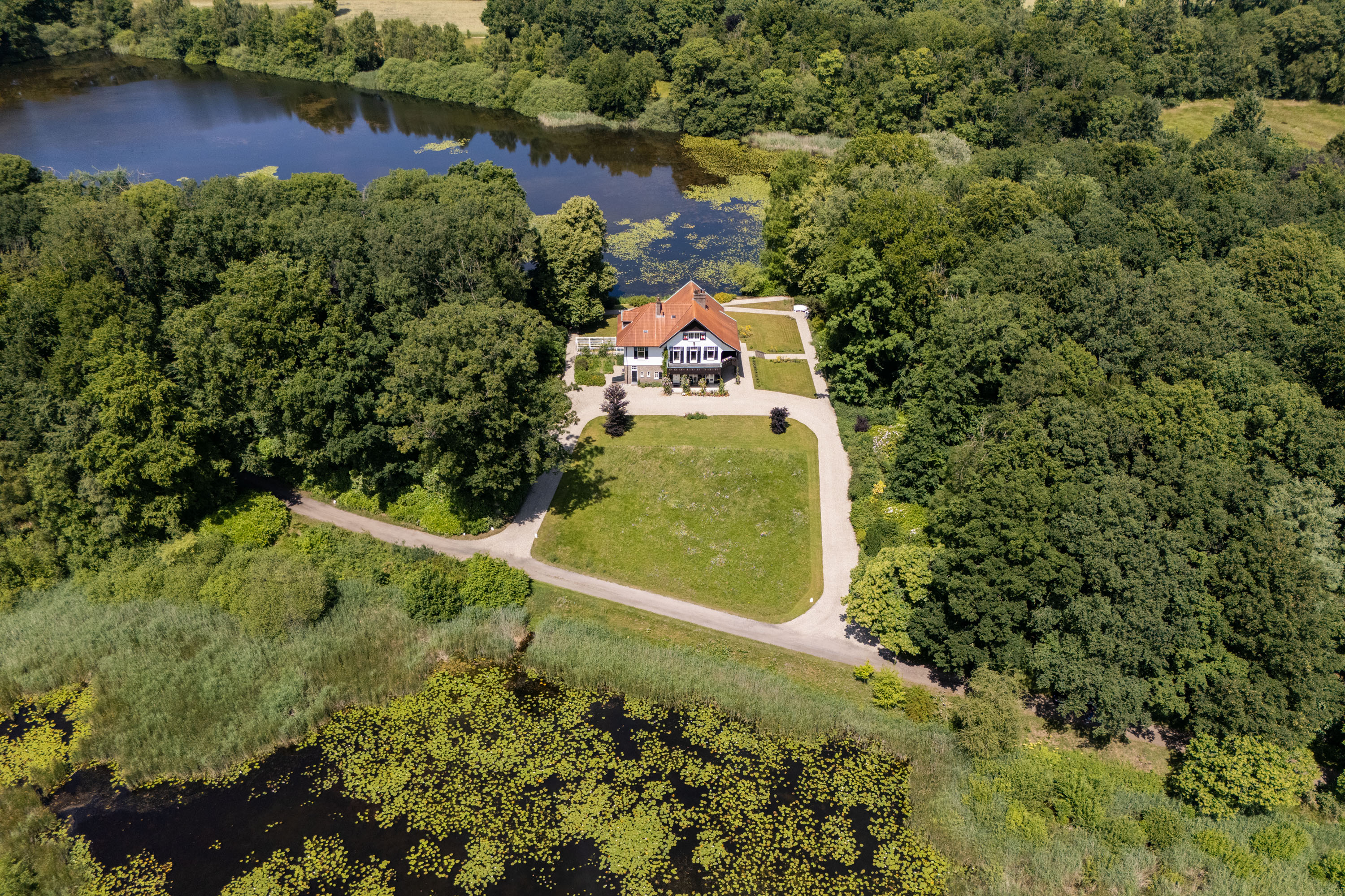 Villa Deurningen to historyczna posiadłość wpisana na listę zabytków, położona na 2,38 ha angielskich ogrodów krajobrazowych, oferująca wyrafinowany styl życia pomiędzy dwoma jeziorami w jednym z najbardziej chronionych rezerwatów przyrody Twente. Powierzchnia mieszkalna wynosi 370 m²; willa została zaprojektowana w 1901 roku przez architekta Karela J. Mullera, uznanego za twórcę dziedzictwa architektonicznego regionu. Spokojne otoczenie z dostępem przez 500-metrowy prywatny podjazd zapewnia kameralność oraz centralne położenie w pobliżu Hengelo, Enschede i kluczowych tras komunikacyjnych.