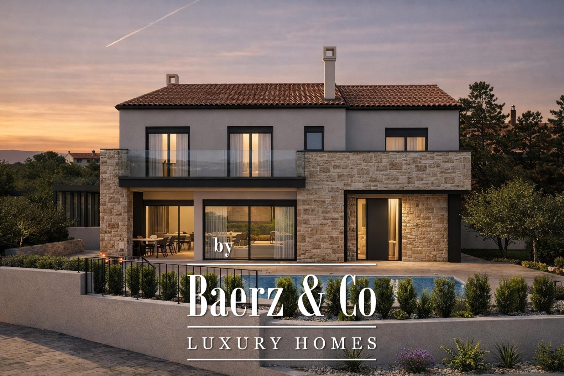 Luksusowa willa na wyspie Krk, w pierwszej linii brzegowej, położona w dyskretnej, spokojnej części Šilo w Dobrinj, Chorwacja, zaledwie 150 metrów od linii brzegowej. Ta nowoczesna willa, zaprojektowana według pięciogwiazdkowych standardów, oferuje 232 m² powierzchni mieszkalnej na działce o powierzchni 819 m², zapewniając otwarty widok na morze z uprzywilejowanej lokalizacji.