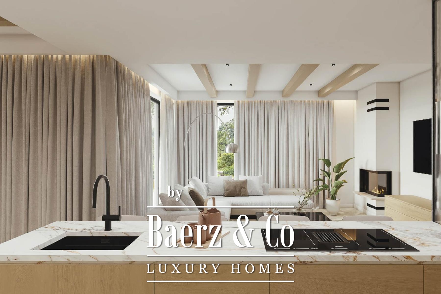 Architekturę wyróżniają wysokiej jakości materiały: aluminiowa stolarka Wicona, potrójne hartowane szyby, systemy PVC Rehau, włoska ceramika Mariner oraz armatura łazienkowa Hansgrohe. Ogrzewanie podłogowe, system klimatyzacji multi-split Mitsubishi Electric oraz antypoślizgowe płytki zewnętrzne gwarantują długotrwały komfort. Planowane zakończenie inwestycji: czerwiec 2026.