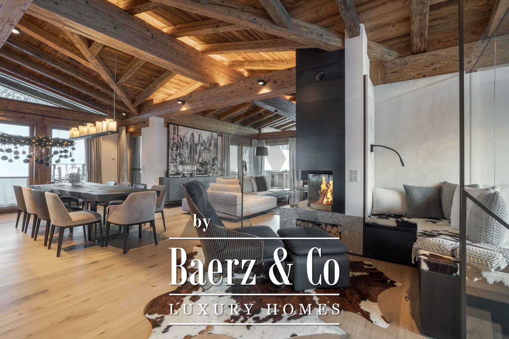 Chalet Kirchberg in Tirol to wyjątkowe połączenie architektonicznie dopracowanego stylu alpejskiego z nowoczesnym designem. Nieruchomość, wybudowana w 2018 roku, zajmuje powierzchnię 312 m² i znajduje się na łagodnym zboczu na obrzeżach kultowej wioski, bezpośrednio przy stokach narciarskich i spokojnej dolinie Spertental. W tym domu przestronne wnętrza zapraszają zarówno do ciszy i prywatności, jak i do spotkań towarzyskich, skupiając się wokół obszernych części dziennych, jadalni i kuchni, które zdobią widoczne belki z odzyskanego drewna i otwarty kamienny kominek. Kuchnia dla wymagających wyposażona jest m.in. w system BORA, grill teppanyaki, urządzenia Miele, frytkownicę oraz szafki na wino Liebherr, gwarantując przestrzeń zarówno do kulinarnych wyzwań, jak i codziennego komfortu. Otaczające, częściowo zadaszone balkony otwierają wnętrza na południowe i północne panoramy gór, zapewniając znakomity dostęp do światła dziennego przez cały rok.