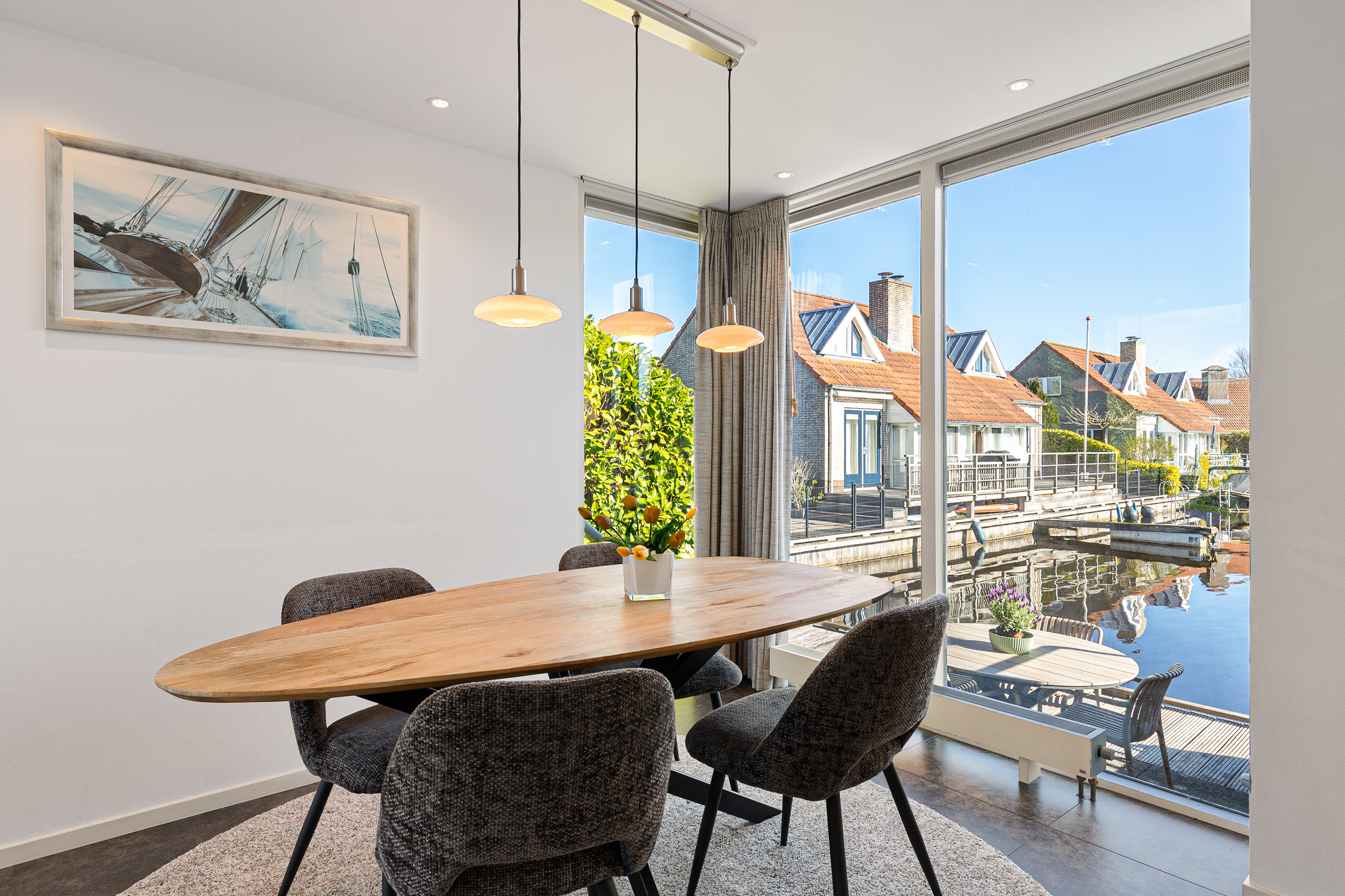 Panoramiczne, otwarte widoki definiują przestrzeń salonu i tarasu, a prywatna przystań o długości około 11 metrów biegnie wzdłuż szerokiego kanału wodnego. W 2010 roku nieruchomość została przemyślanie rozbudowana, a obszerna strefa dzienna i kuchnia płynnie przechodzą na zewnątrz przez podwójne drzwi ogrodowe na taras z drewna szlachetnego, do którego słońce dociera od wczesnego ranka do późnego wieczora. Wnętrze oferuje ogrzewanie podłogowe, otwartą kuchnię z urządzeniami w zabudowie oraz przemyślane schowki na całej powierzchni.
