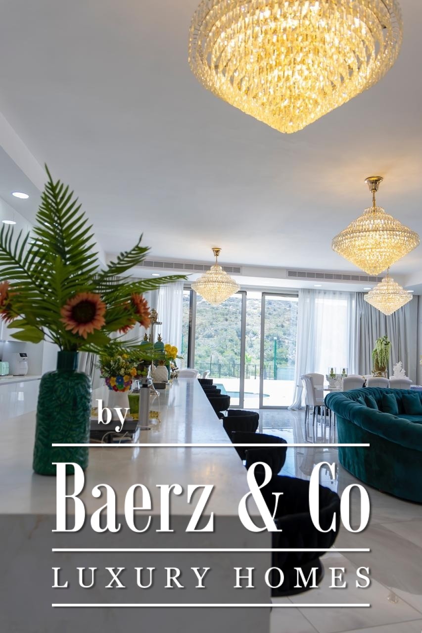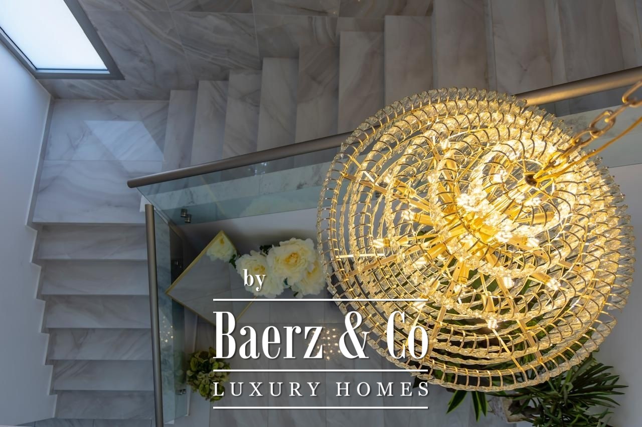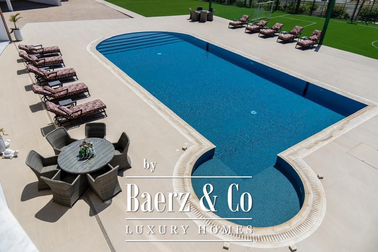 Zaprojektowana z wysokimi sufitami i płynnymi przejściami pomiędzy przestrzeniami, willa rozpościera się na dwóch głównych kondygnacjach oraz pełnym podpiwniczeniu. Siedem sypialni rozmieszczono z myślą o intymności i komforcie: pięć apartamentów głównych z prywatnymi łazienkami, pokój gościnny oraz osobną kwaterę dla personelu. Przestrzenie mieszkalne są pełne światła dziennego i starannie dobranych mebli, podkreślane przez wysokiej klasy wykończenia oraz przemyślany układ pomieszczeń. Zintegrowana automatyka „smart home”, ogrzewanie podłogowe i system klimatyzacji VRV zapewniają nowoczesny komfort z wyjątkową precyzją. Prywatna sala kinowa oraz kompletny system monitoringu CCTV dopełniają poczucie ekskluzywnego i dyskretnego stylu życia.