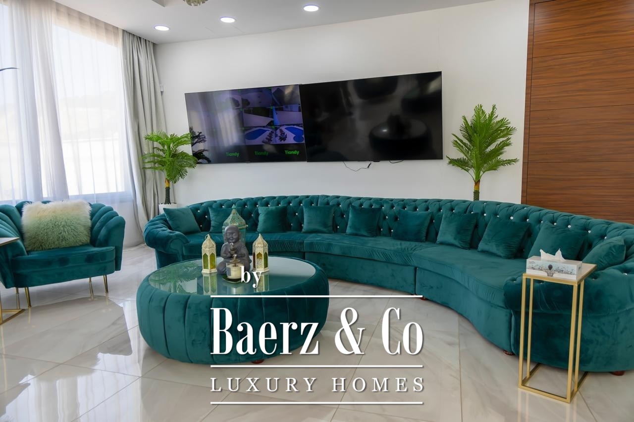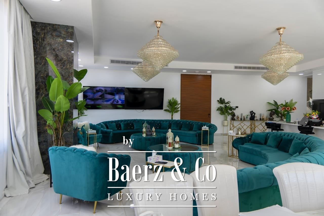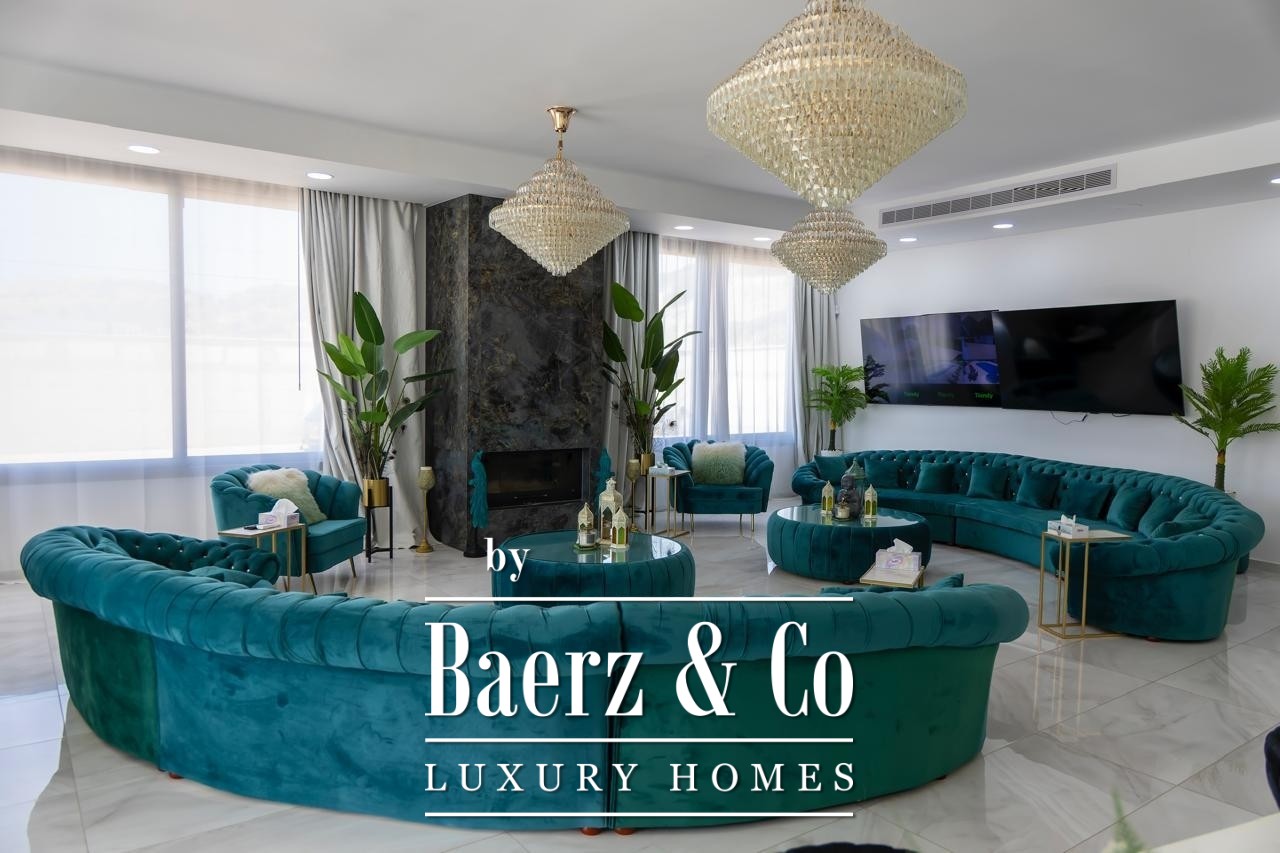 Zaprojektowana z wysokimi sufitami i płynnymi przejściami pomiędzy przestrzeniami, willa rozpościera się na dwóch głównych kondygnacjach oraz pełnym podpiwniczeniu. Siedem sypialni rozmieszczono z myślą o intymności i komforcie: pięć apartamentów głównych z prywatnymi łazienkami, pokój gościnny oraz osobną kwaterę dla personelu. Przestrzenie mieszkalne są pełne światła dziennego i starannie dobranych mebli, podkreślane przez wysokiej klasy wykończenia oraz przemyślany układ pomieszczeń. Zintegrowana automatyka „smart home”, ogrzewanie podłogowe i system klimatyzacji VRV zapewniają nowoczesny komfort z wyjątkową precyzją. Prywatna sala kinowa oraz kompletny system monitoringu CCTV dopełniają poczucie ekskluzywnego i dyskretnego stylu życia.